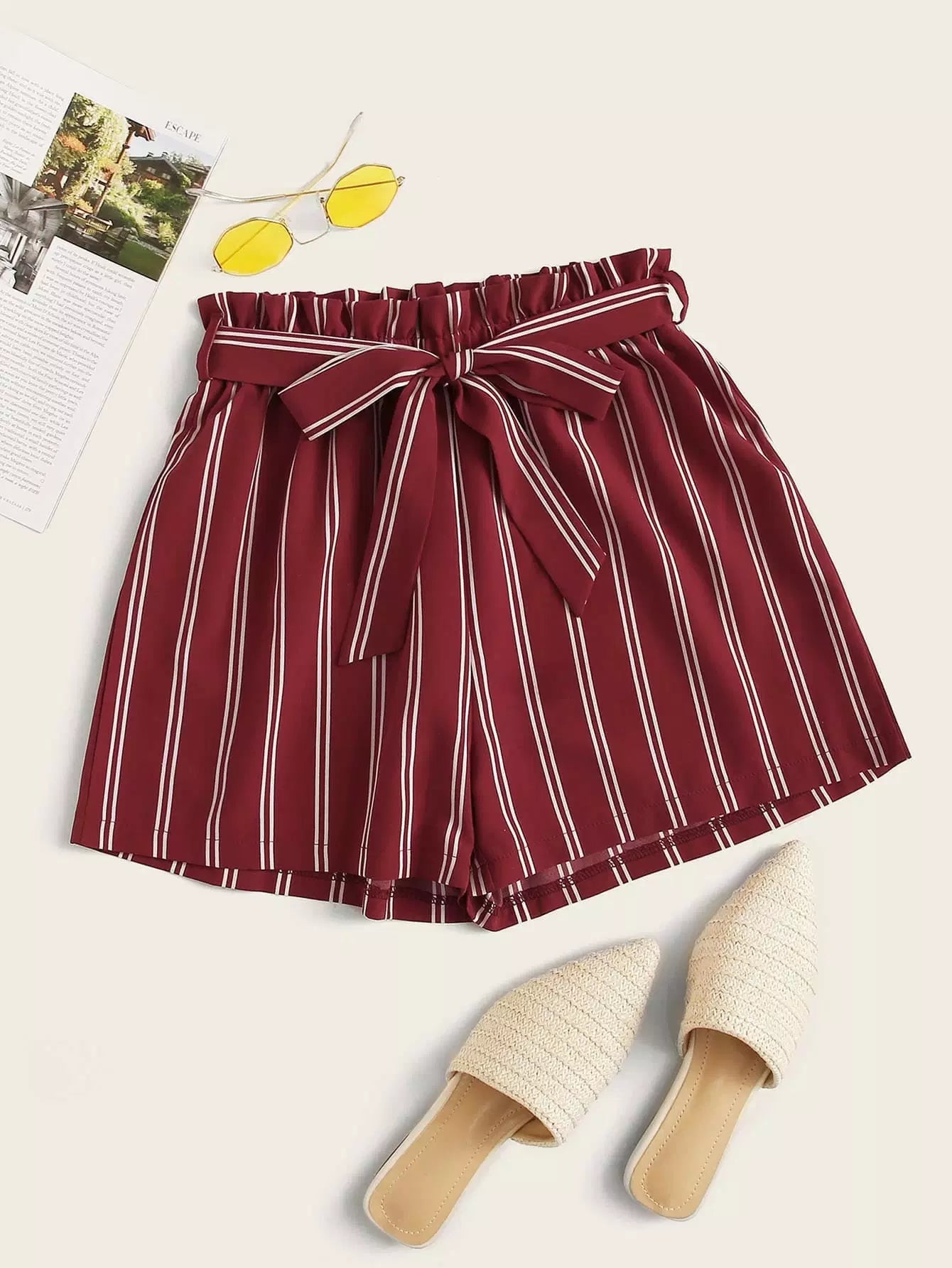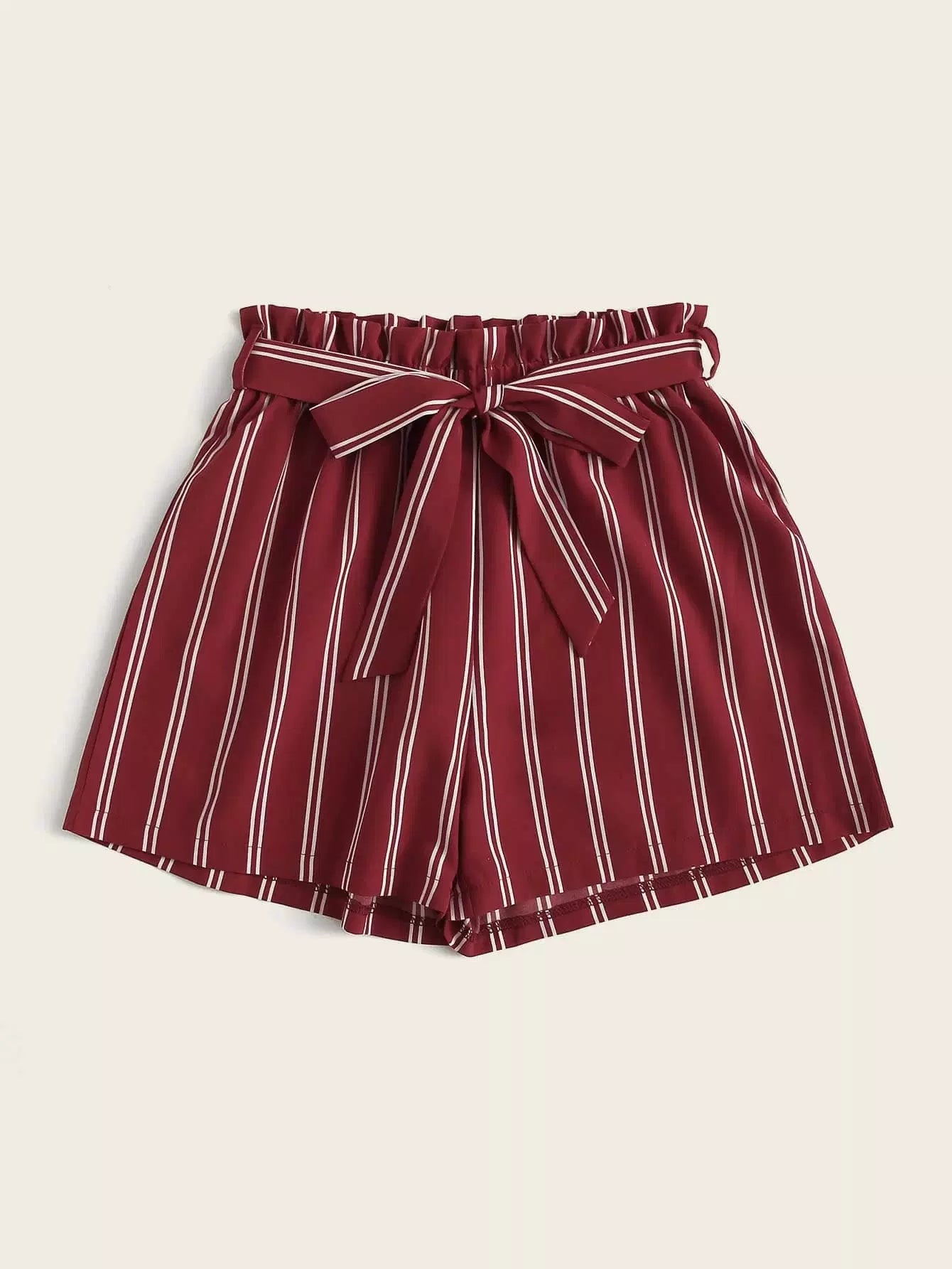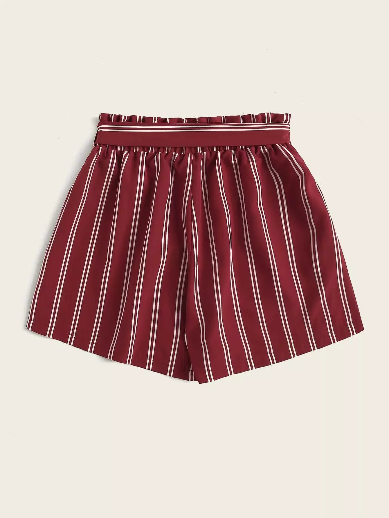 Striped Paper-bag Waist Shorts Without Belt