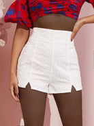 Women - Zipper Side M-slit Hem Schiffy Shorts