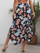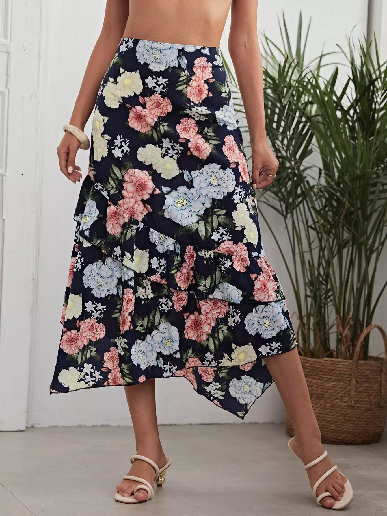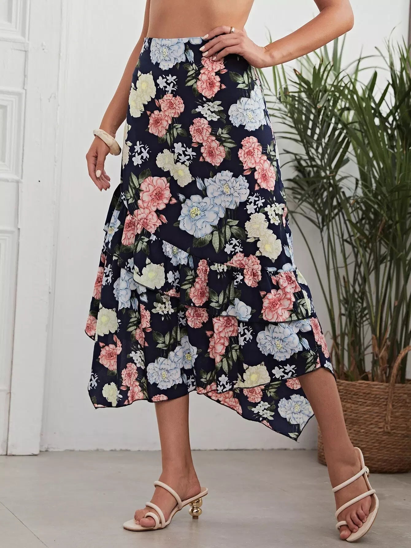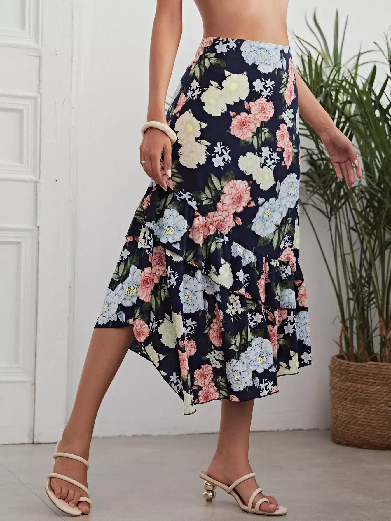 Asymmetrical Ruffle Hem Floral Print Skirt