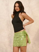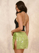 BAE Women's Summer Clothing Green Glitter Sequin Mini Skirt/Skirts For Women/Summer Skirt/Elegant Skirt