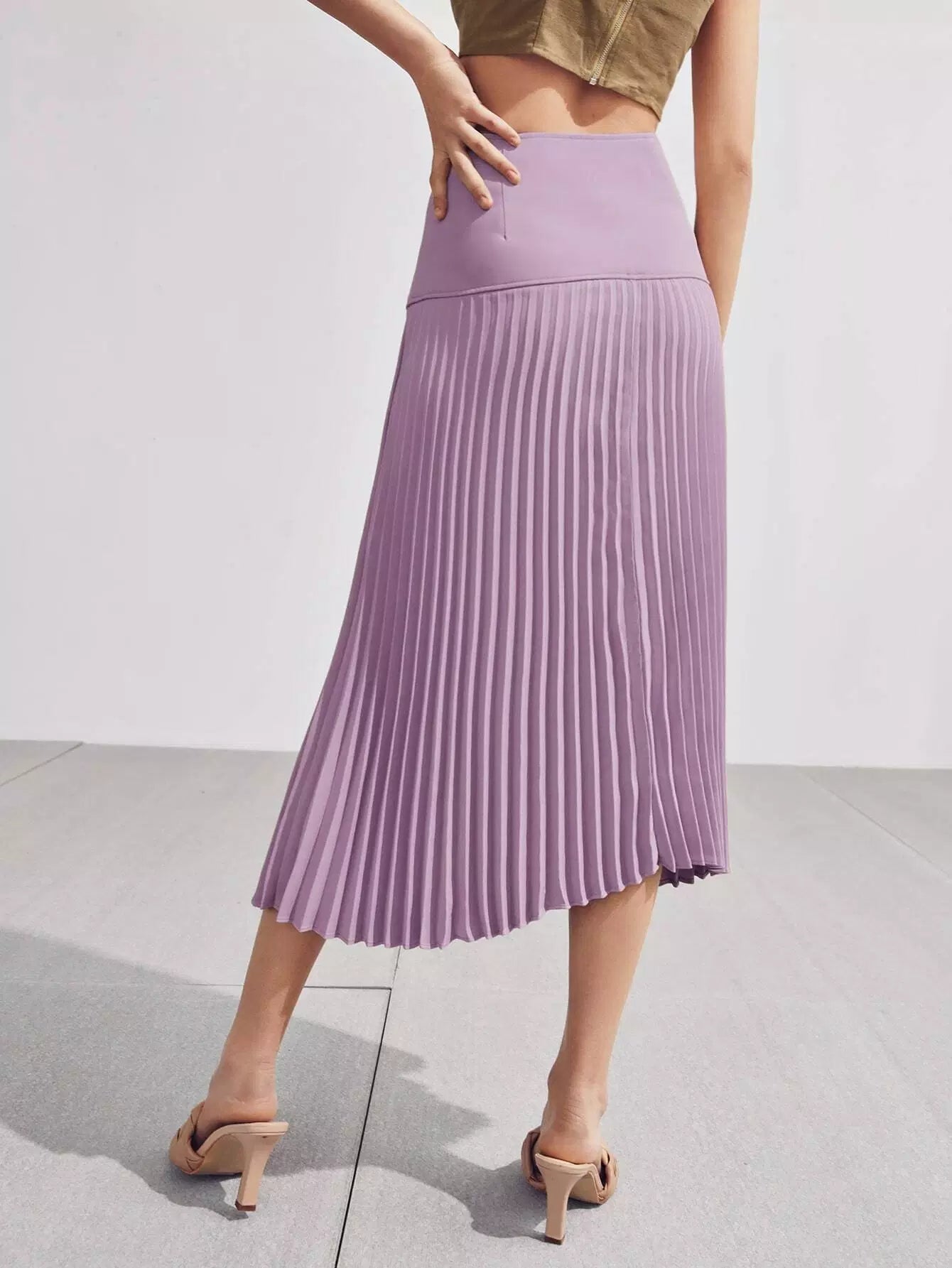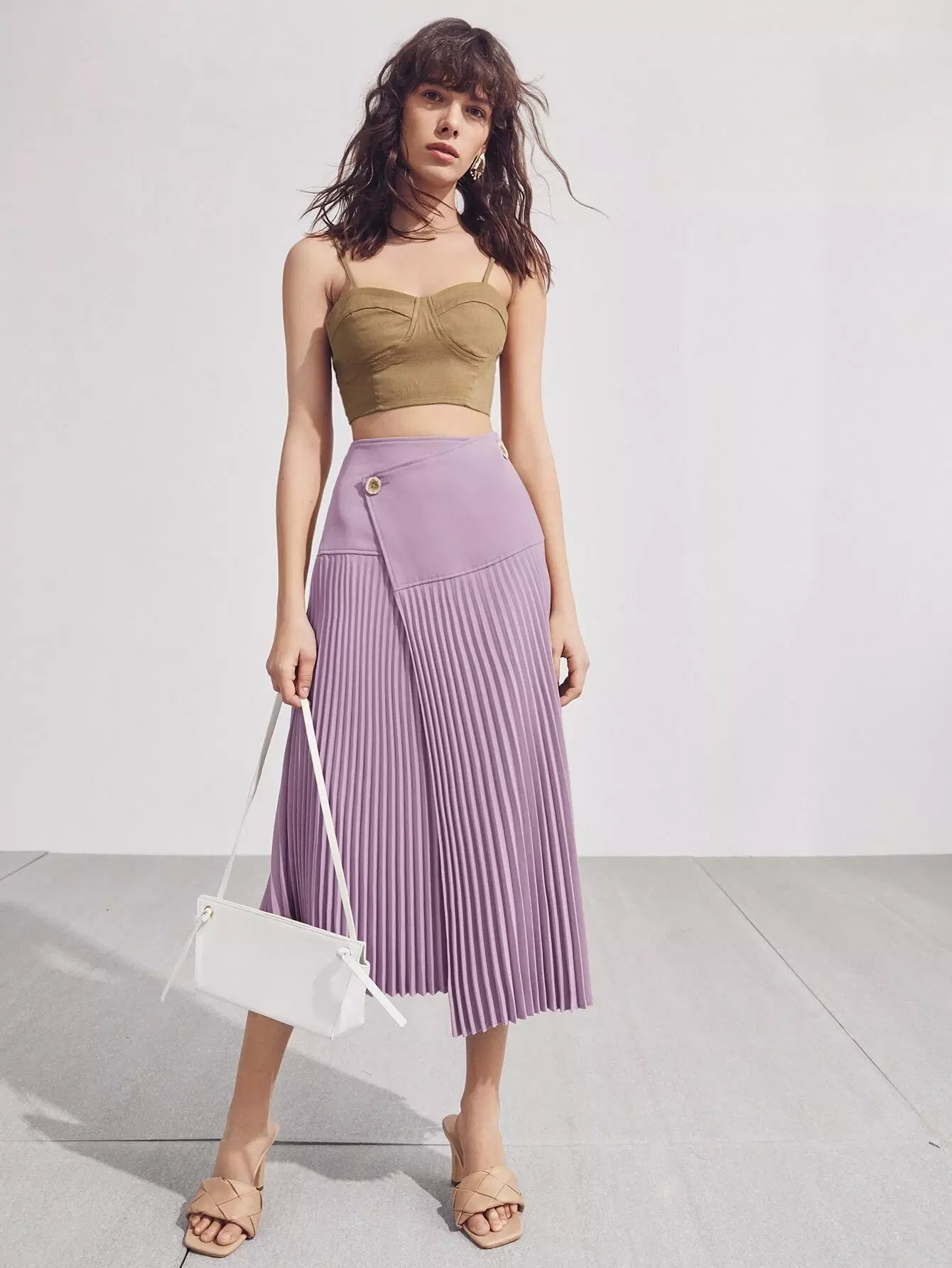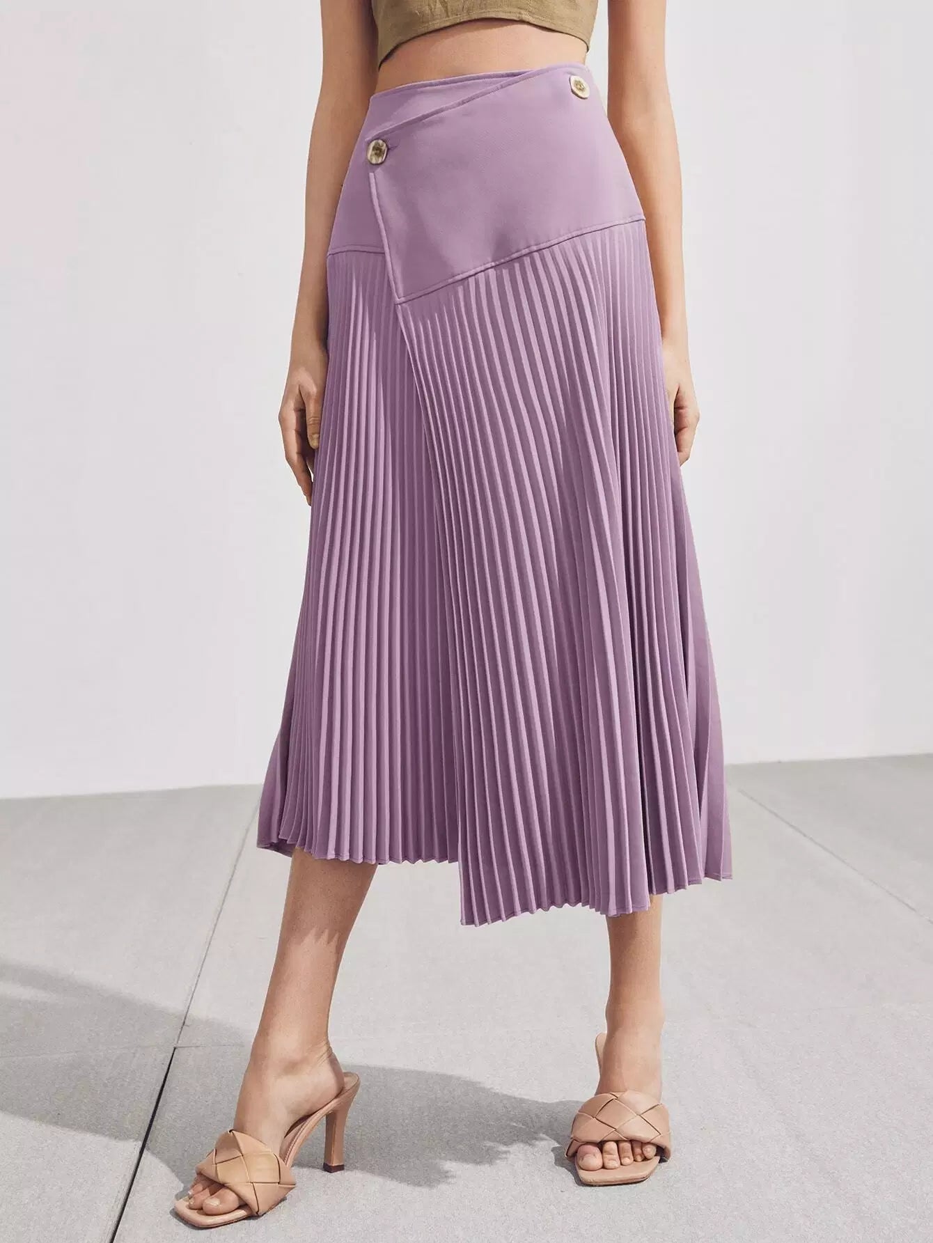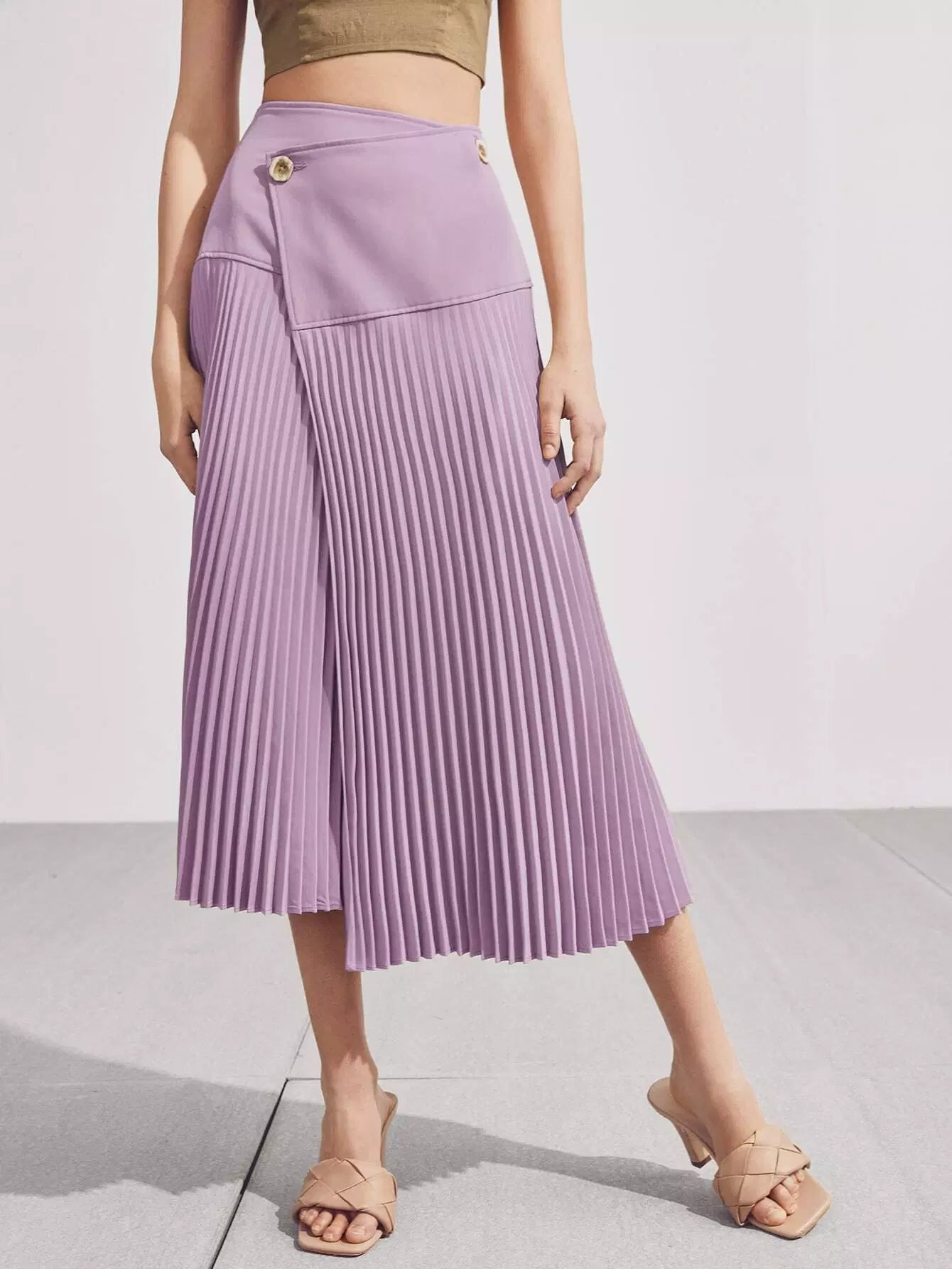 Button Front Wrap Cross Pleated Skirt