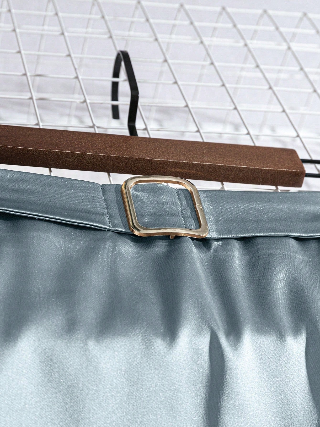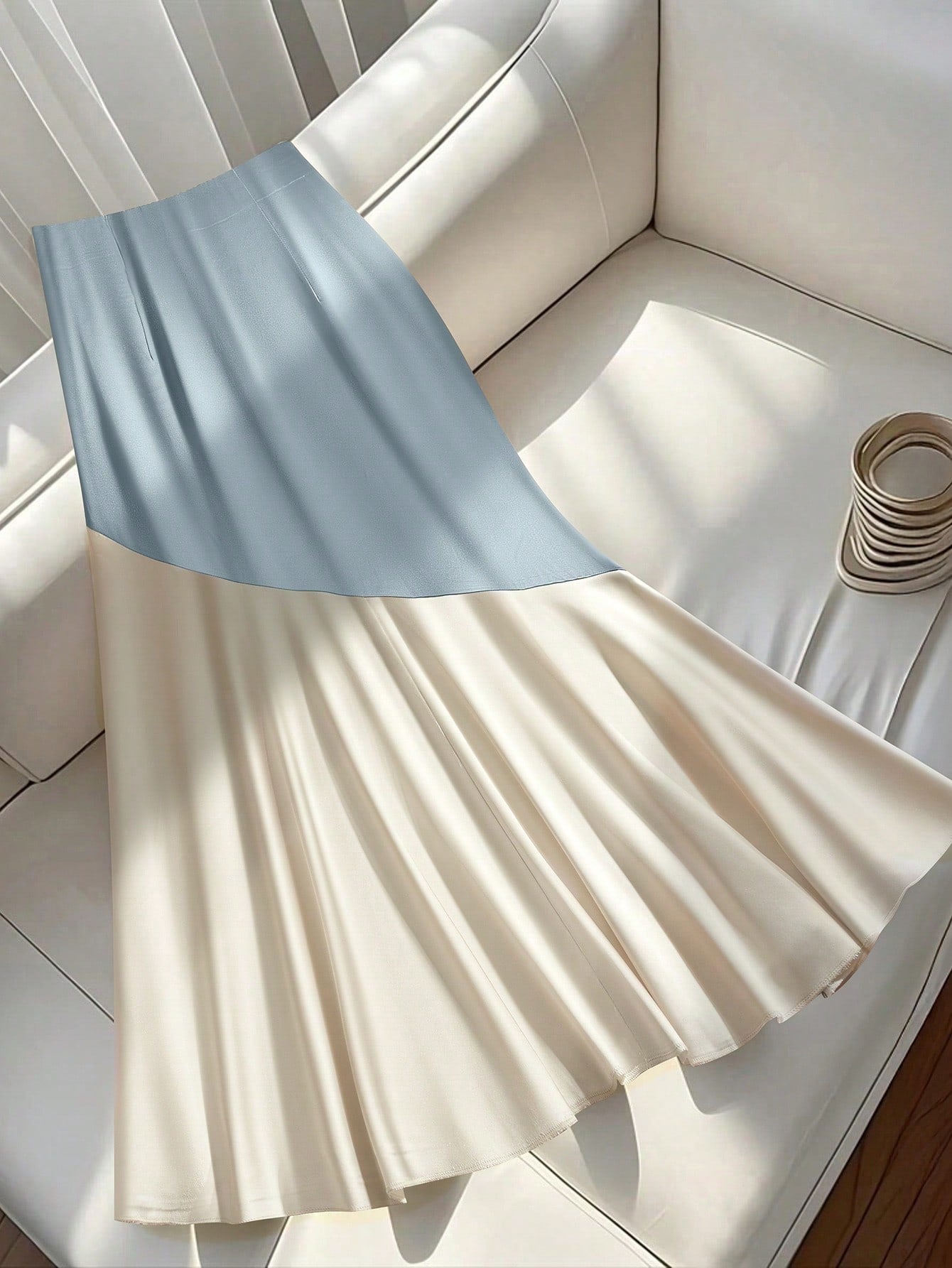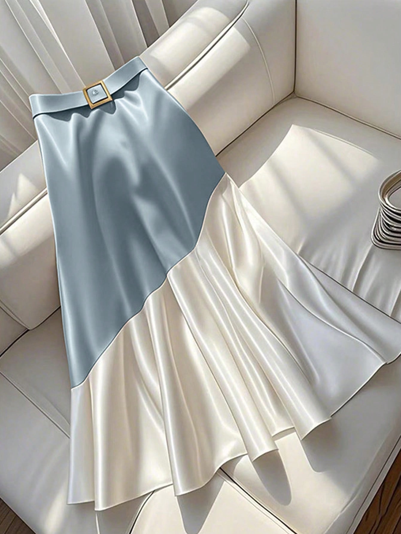 Clasi Acetate Satin A-Line Patchwork Midi Skirt Fall Cloth For Women