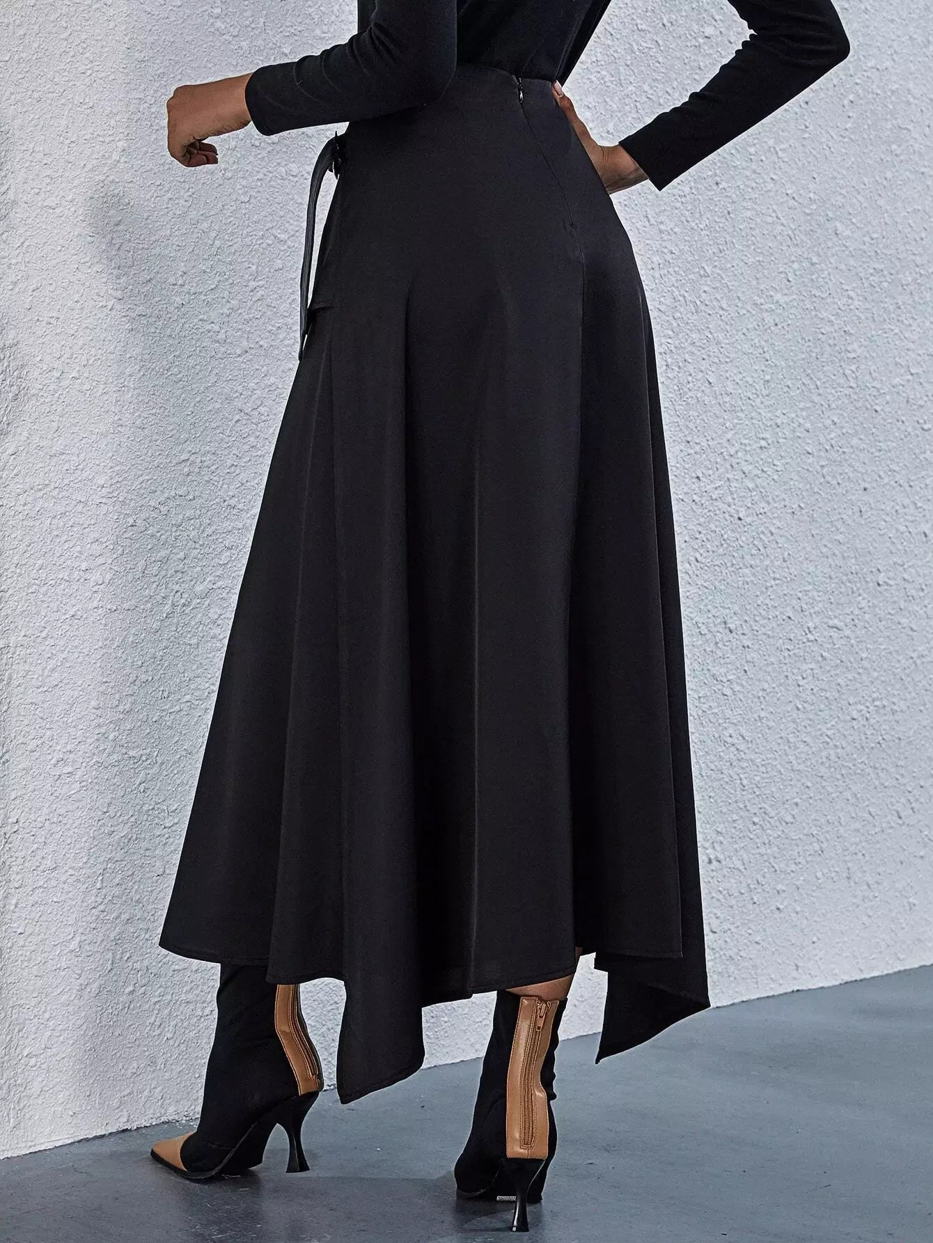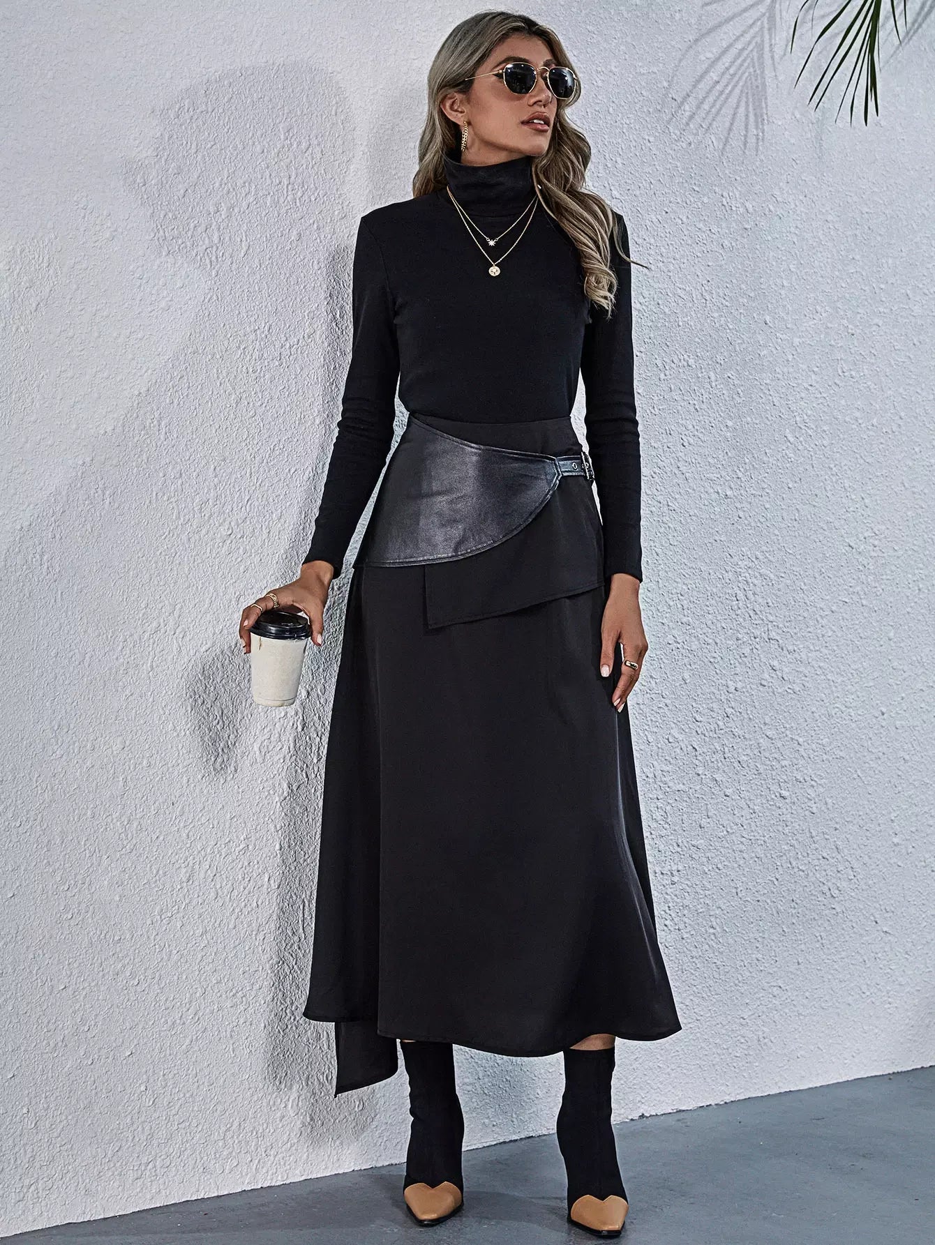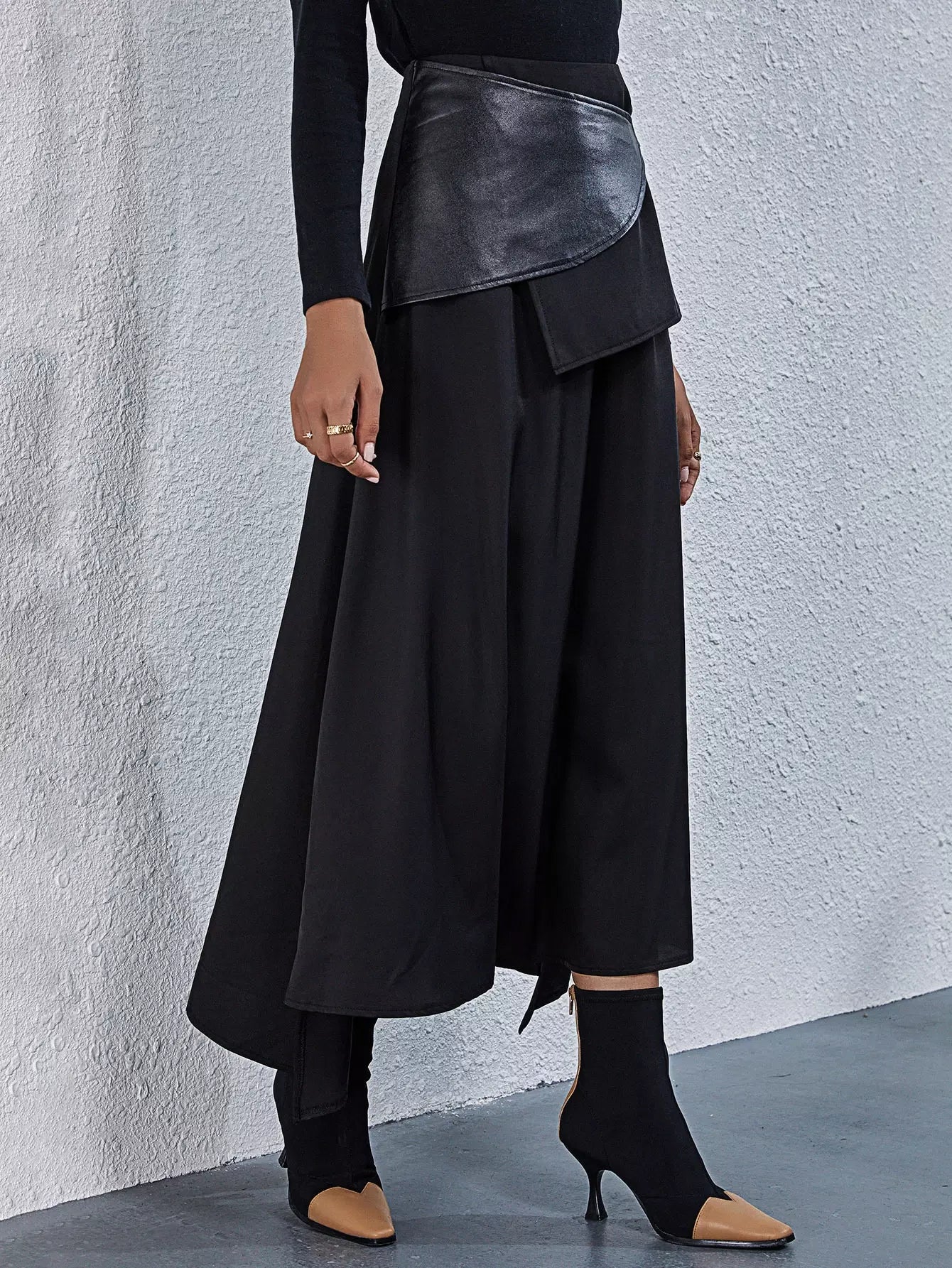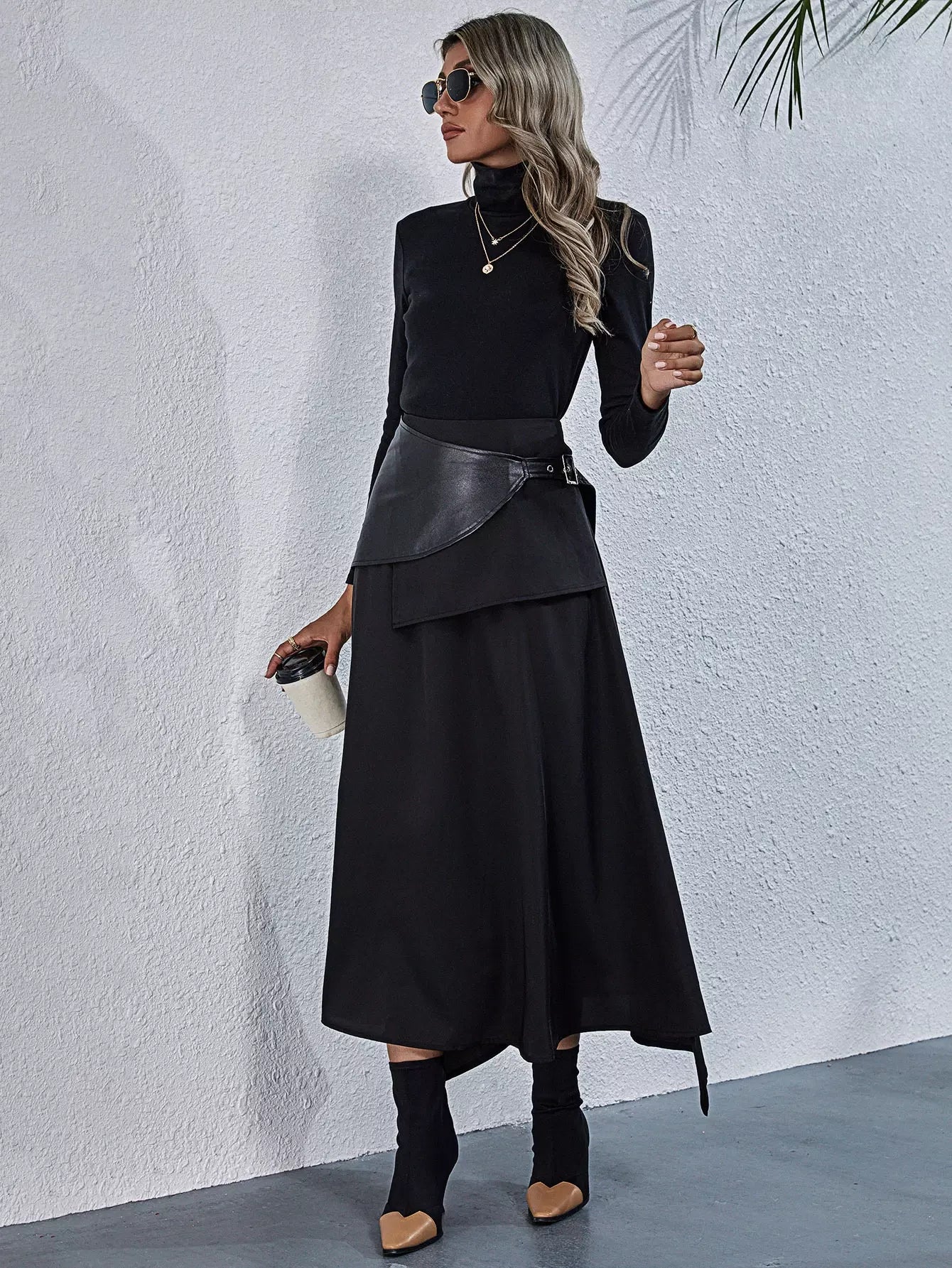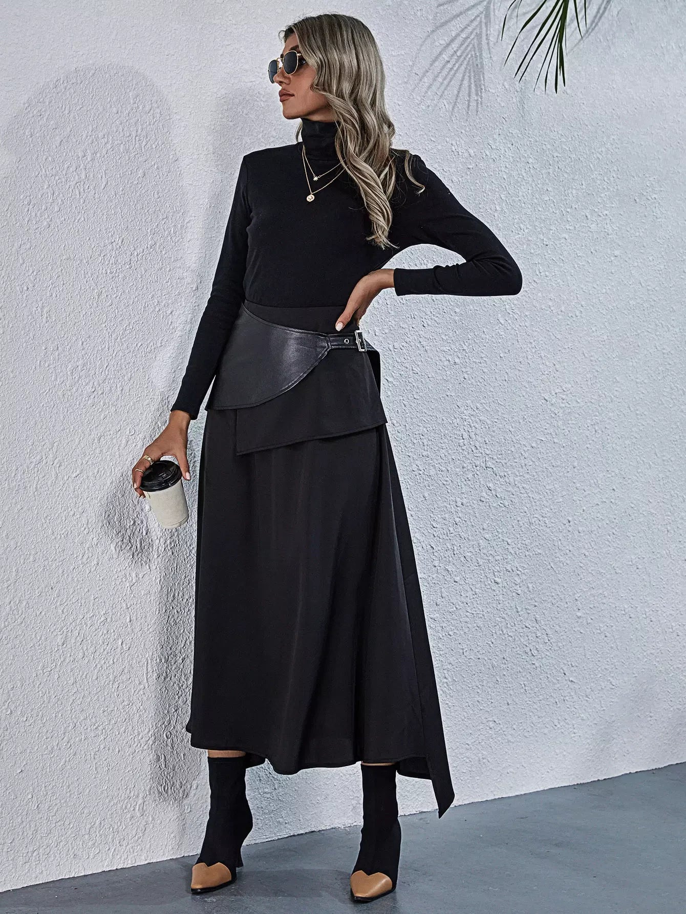 Contrast PU Buckle Tape Asymmetrical Skirt