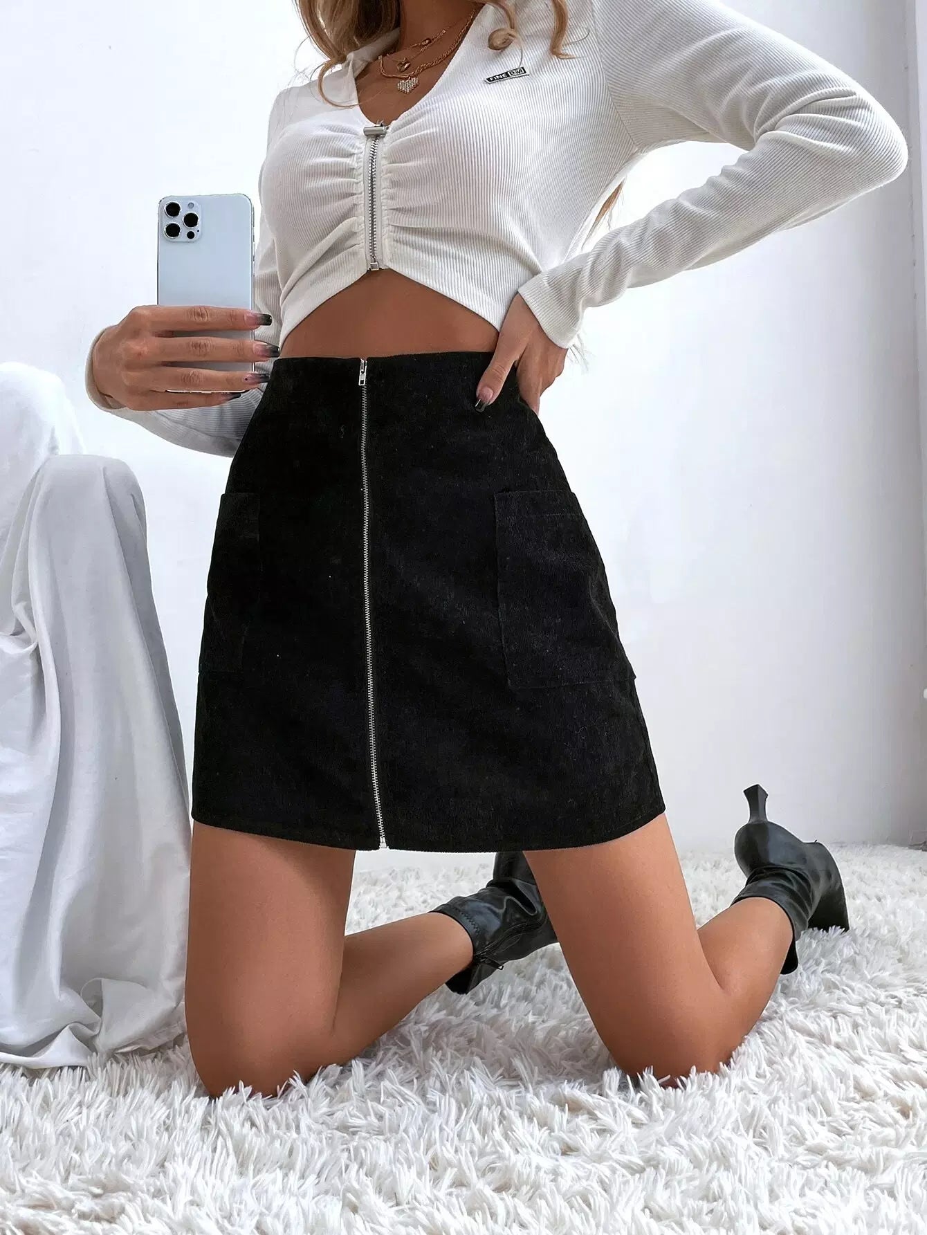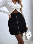 Corduroy Zipper Front Straight Skirt
