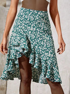 Ditsy Floral Asymmetrical Ruffle Hem Skirt