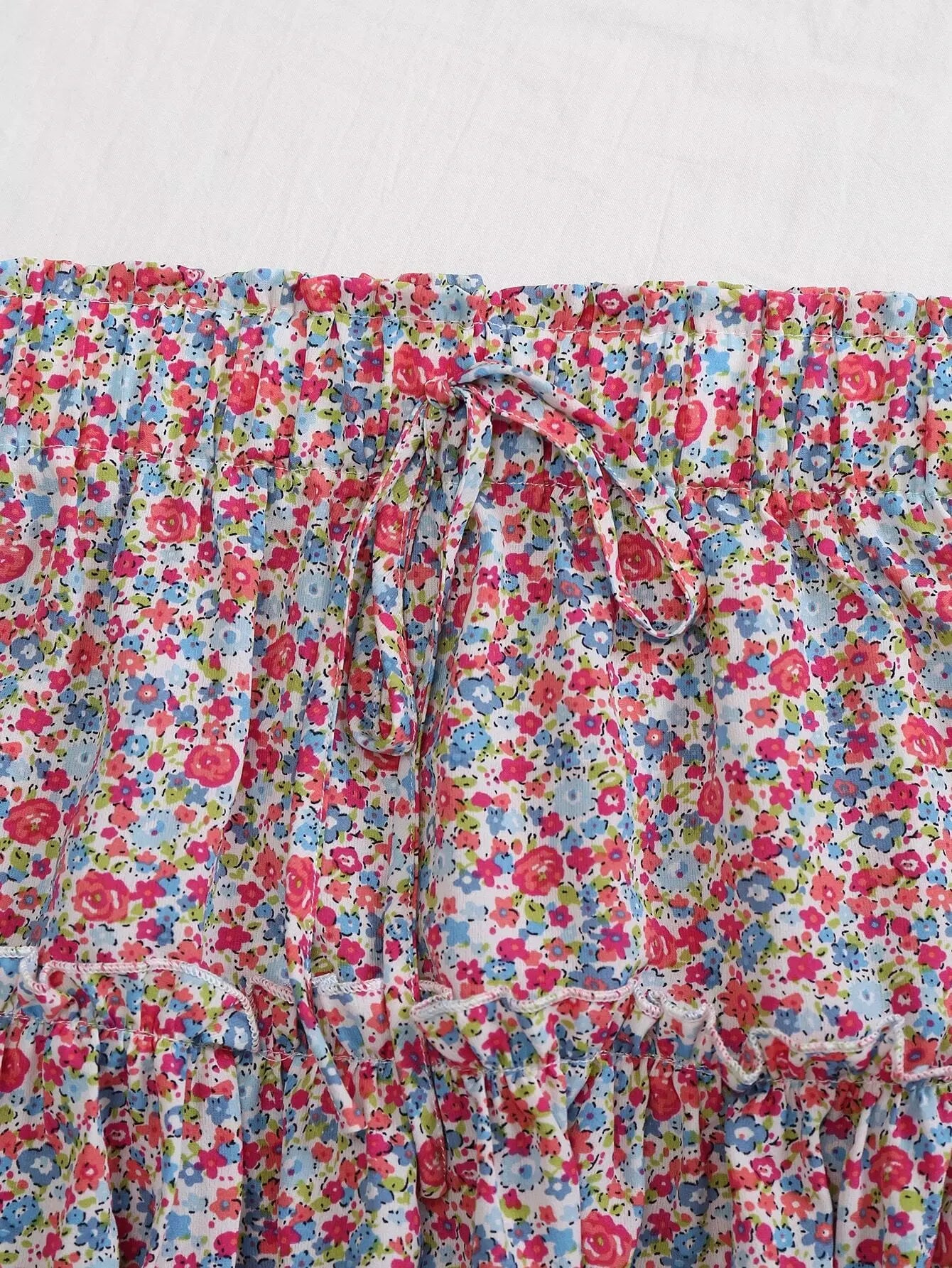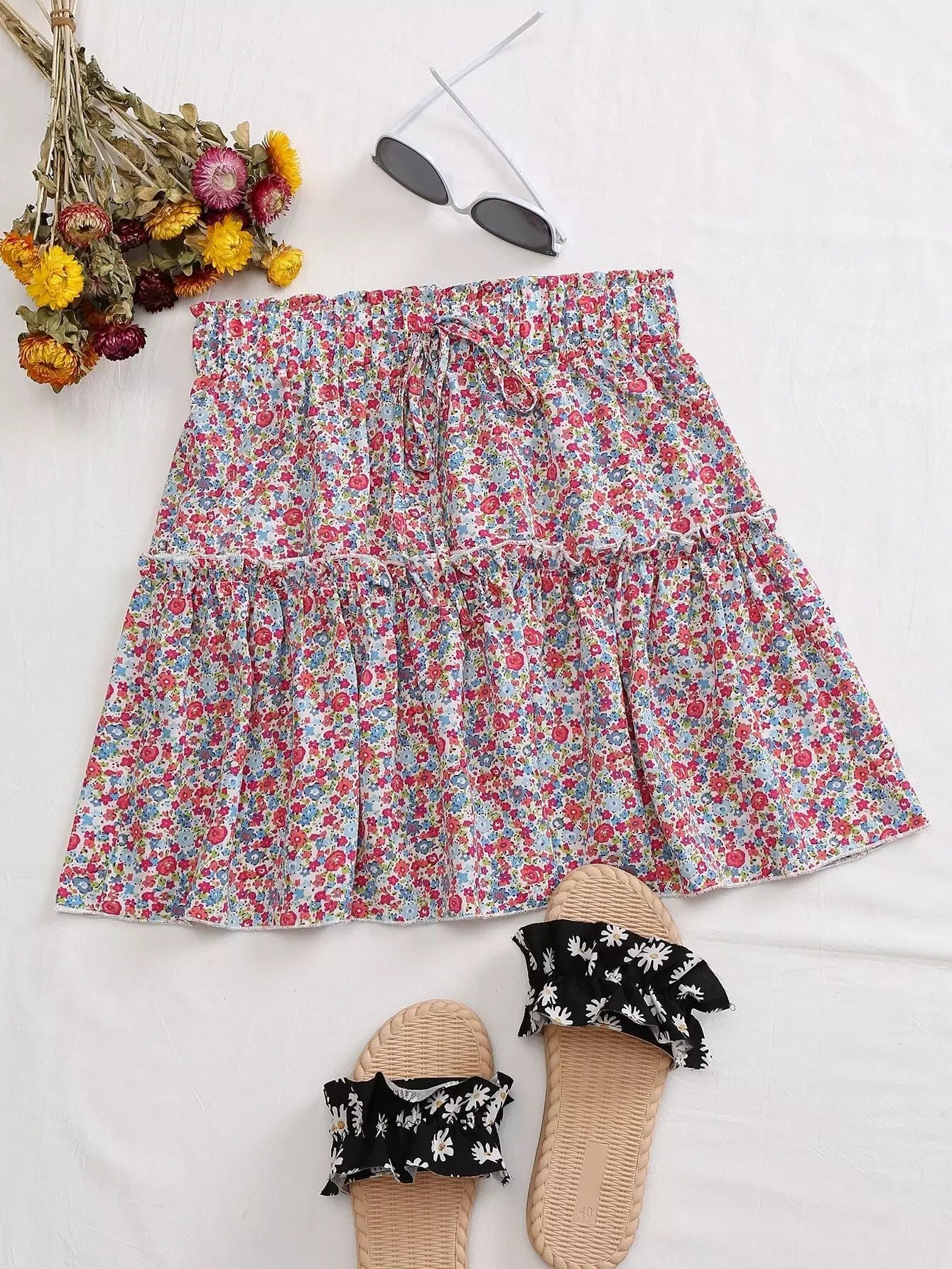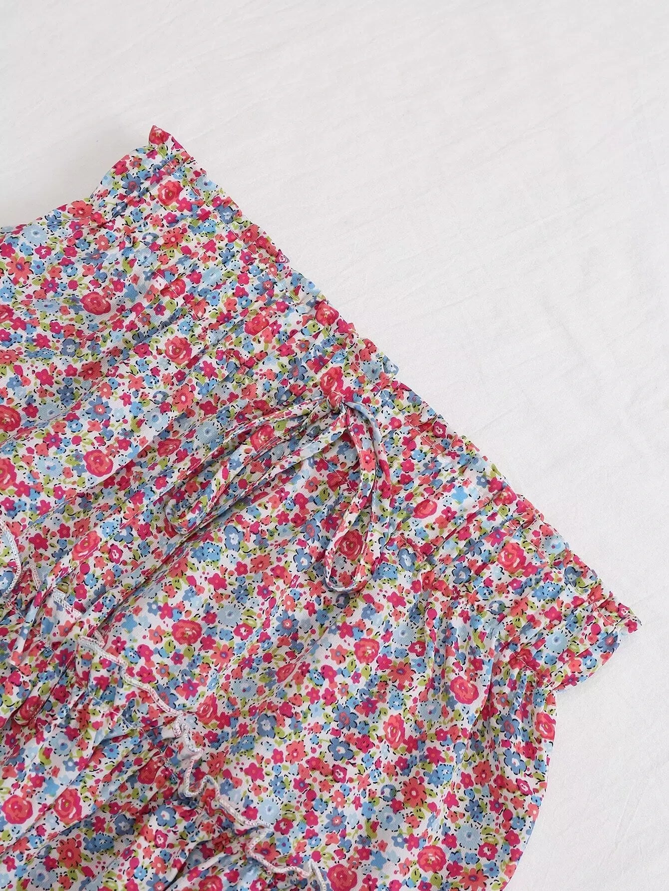 Ditsy Floral Print Ruffle Trim Knot Front Skirt