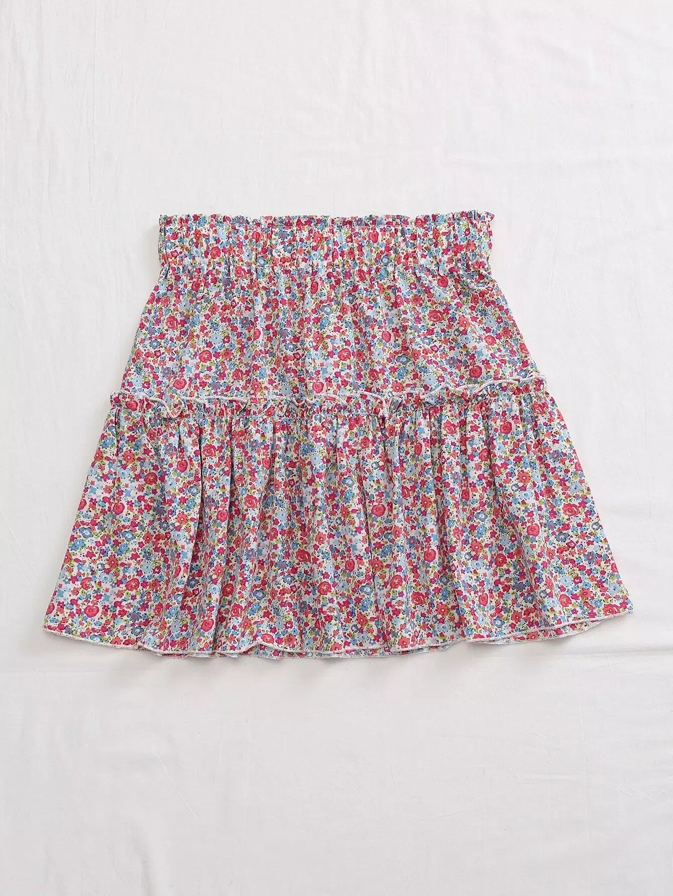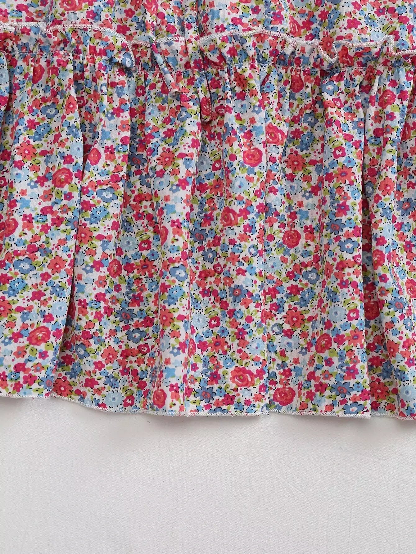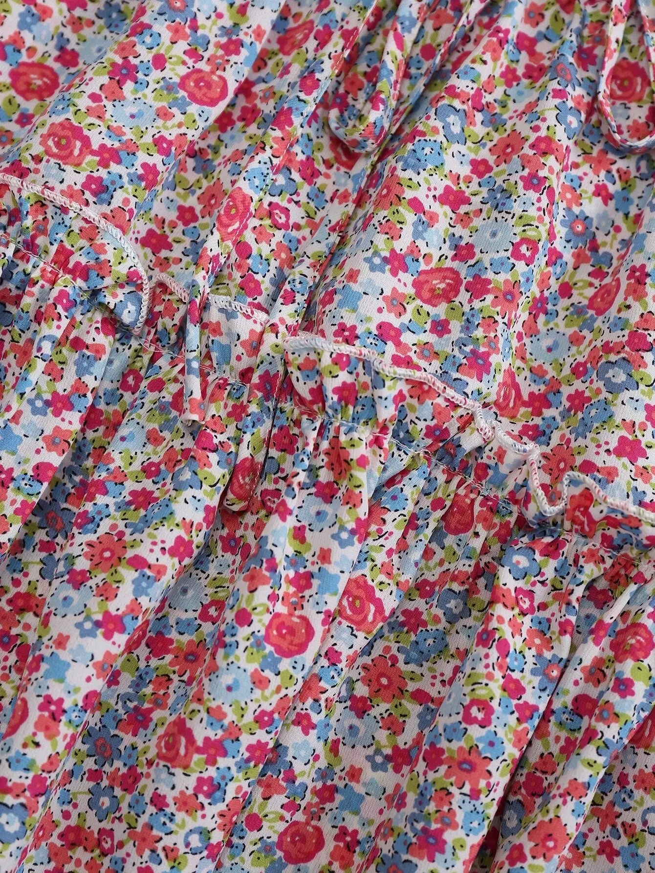 Ditsy Floral Print Ruffle Trim Knot Front Skirt