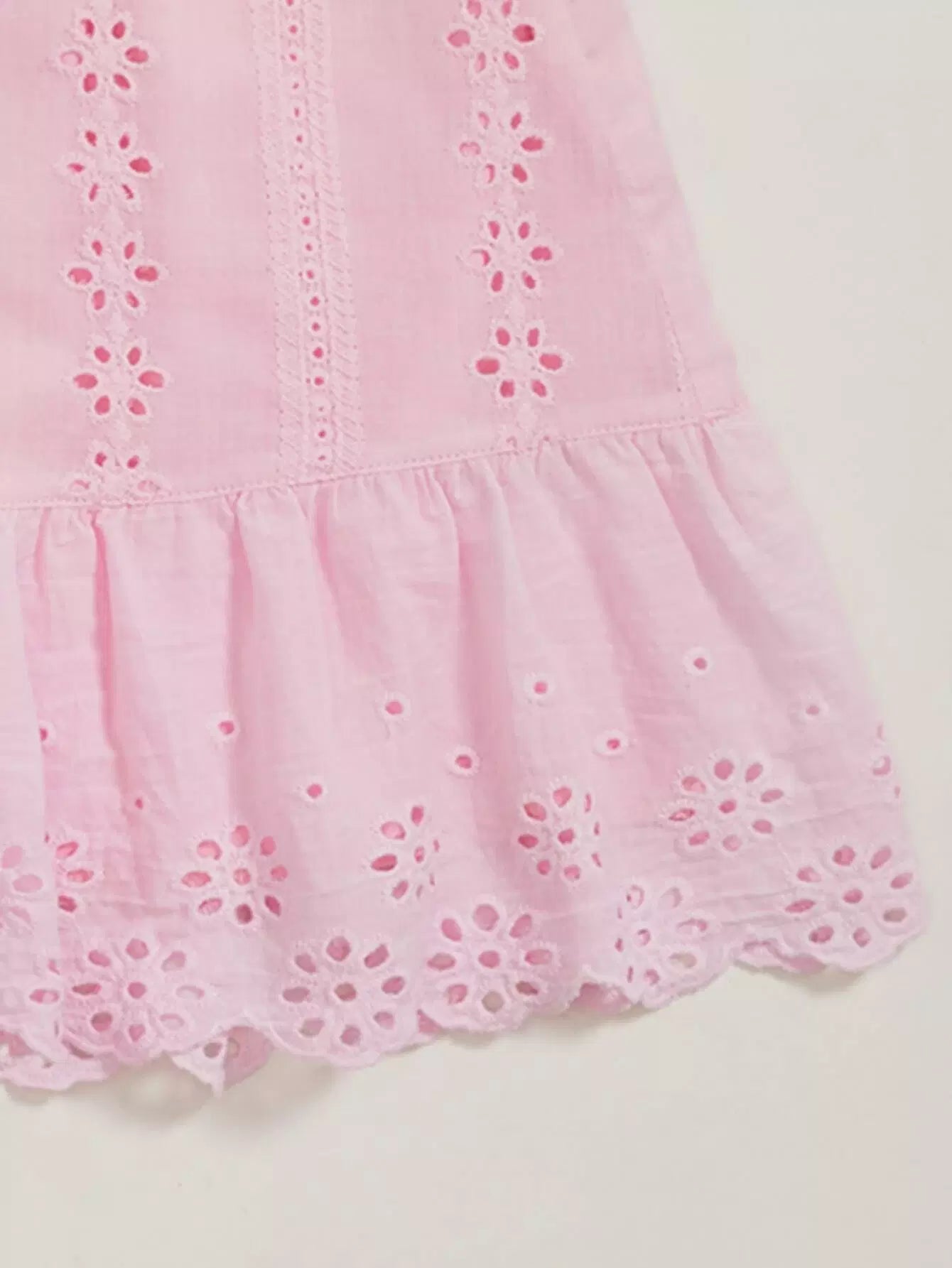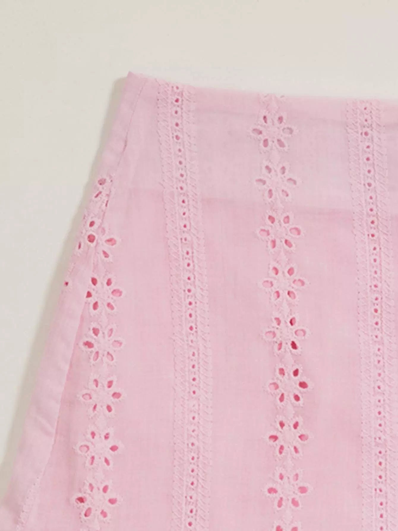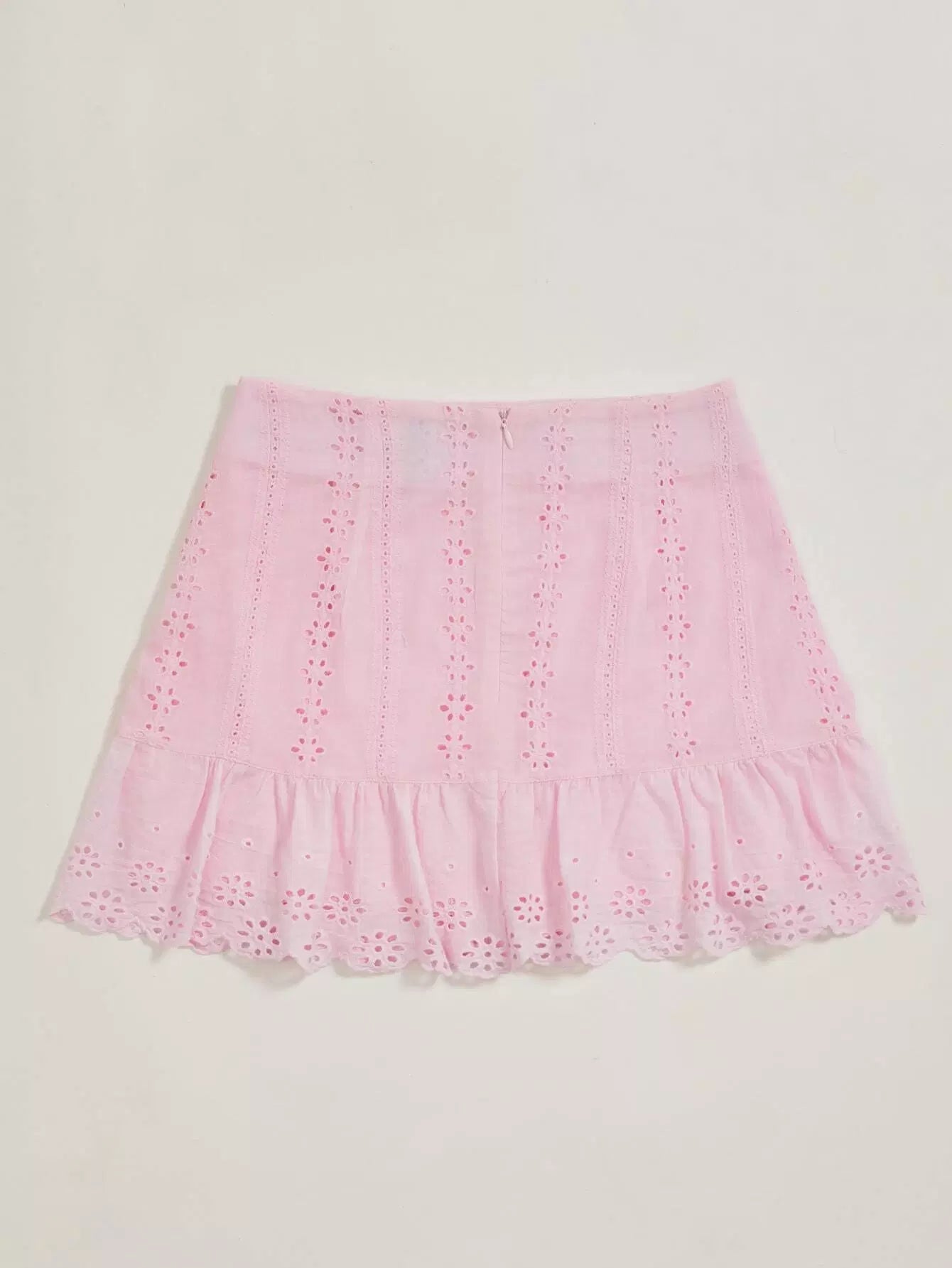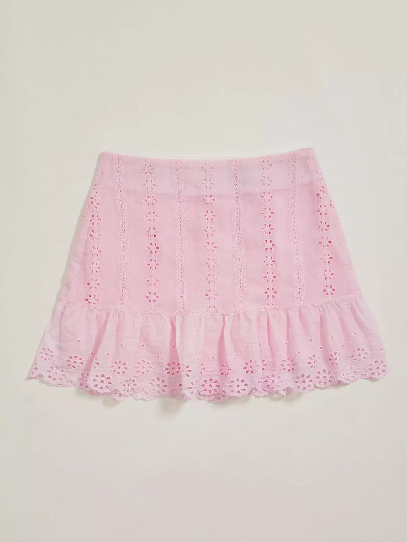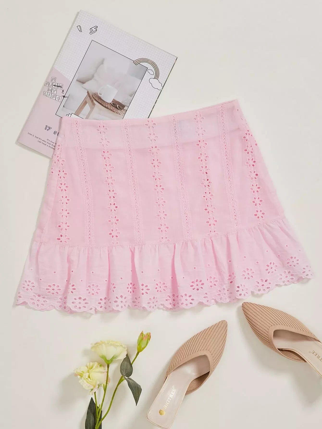 Women - Eyelet Embroidery Ruffle Hem Skirt