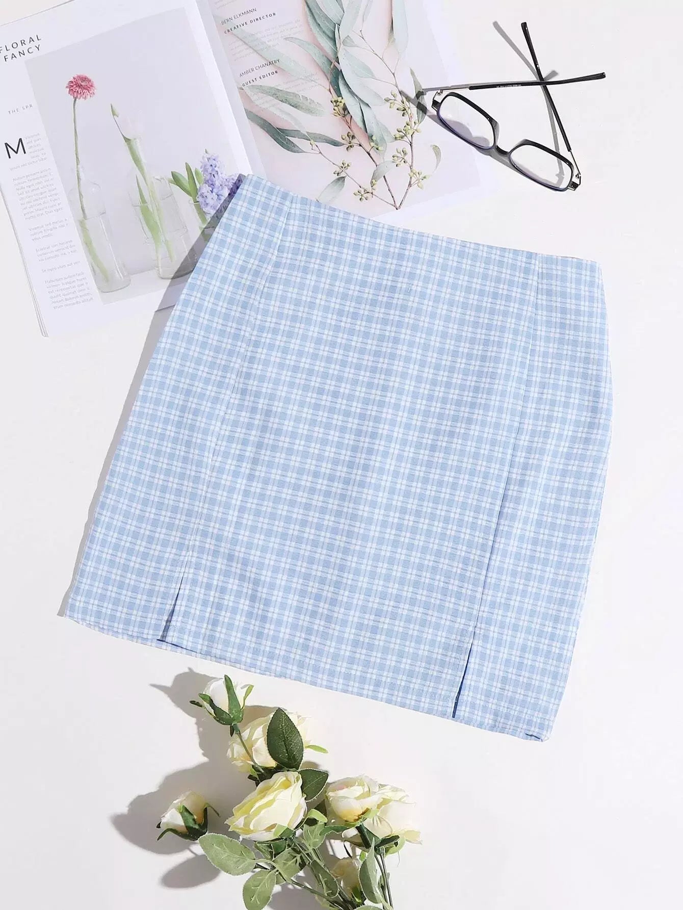 Gingham Split Hem Skirt