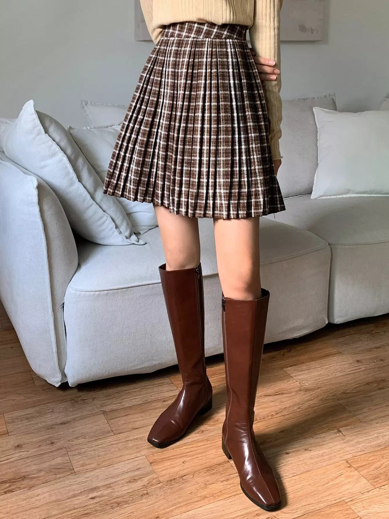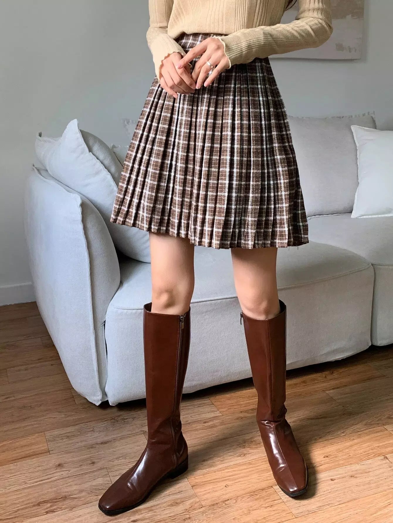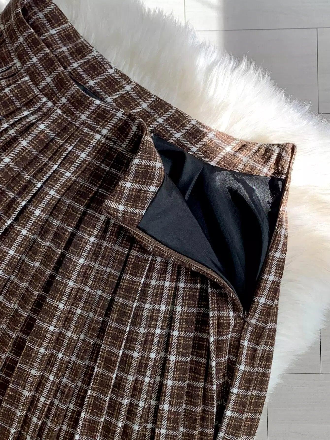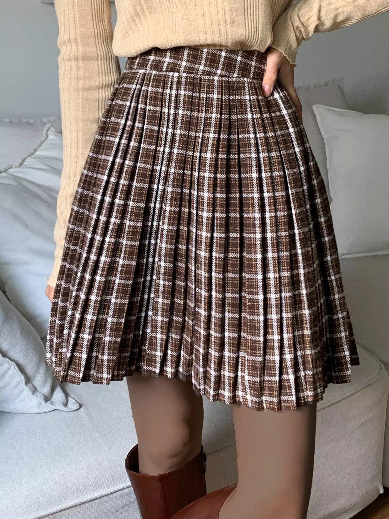 High Waist Plaid Zip Side Pleated Skirt