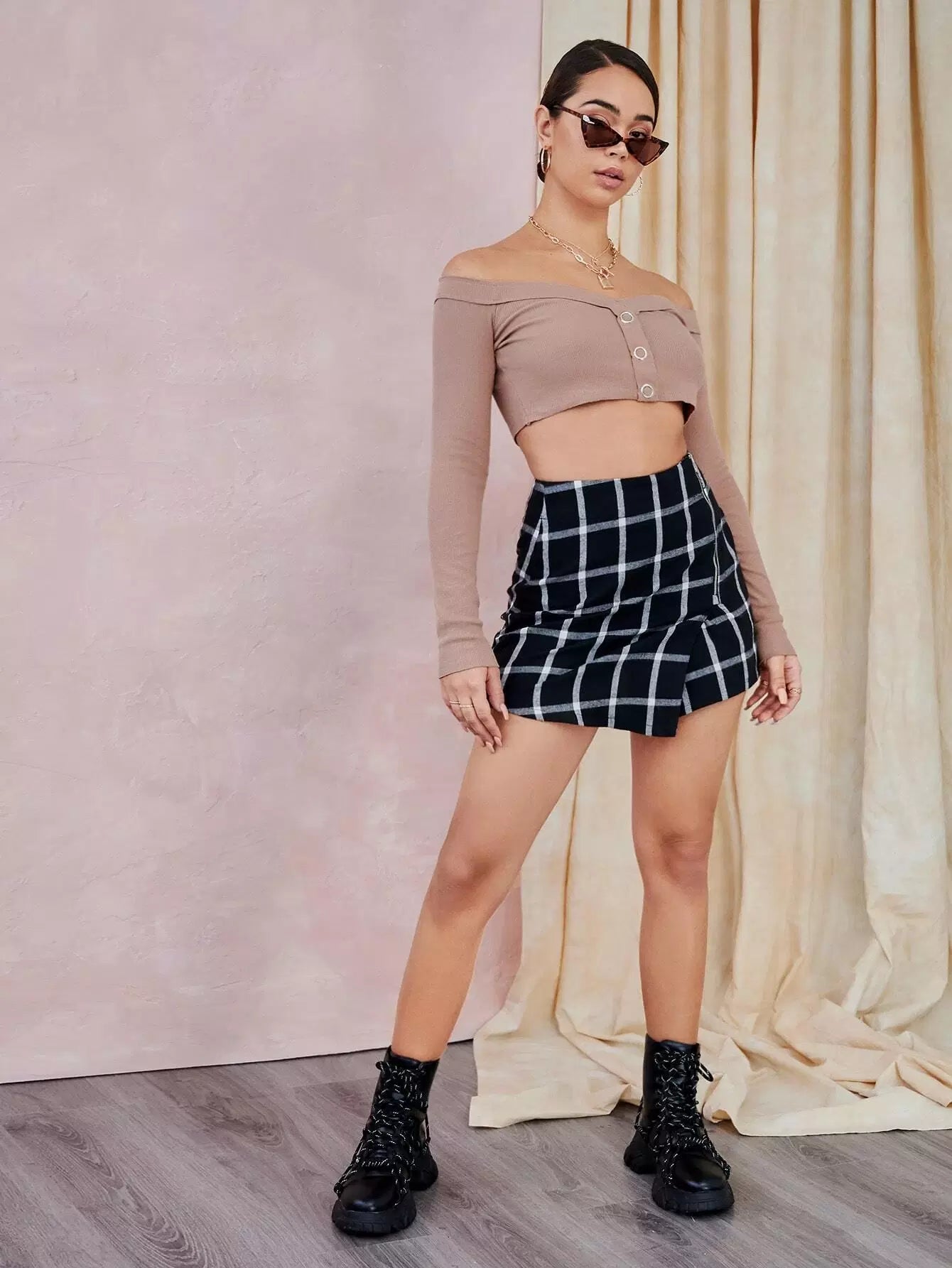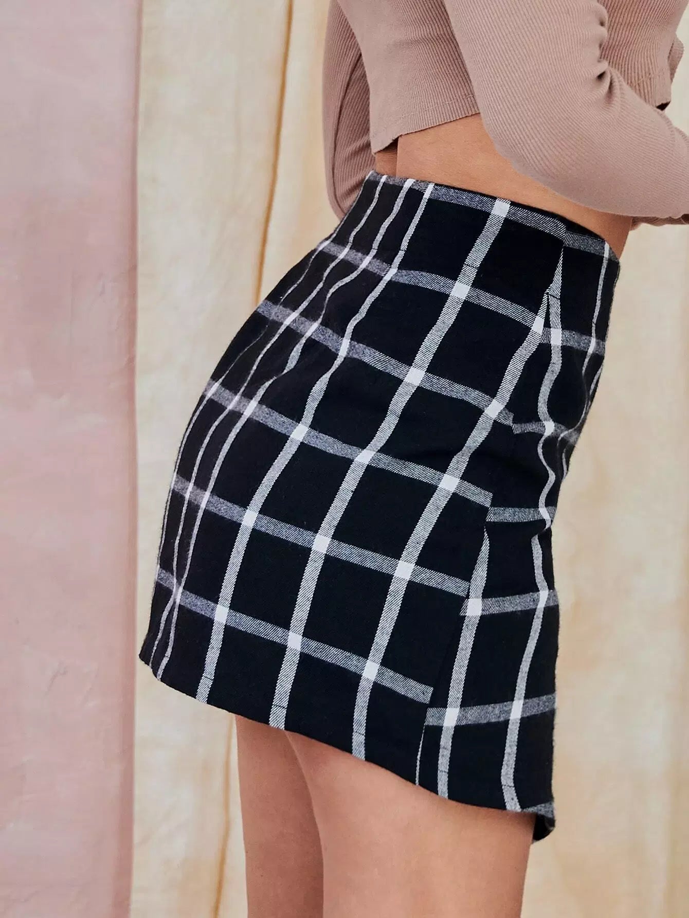 Women - High Waist Zip Plaid Asymmetrical Skirt