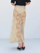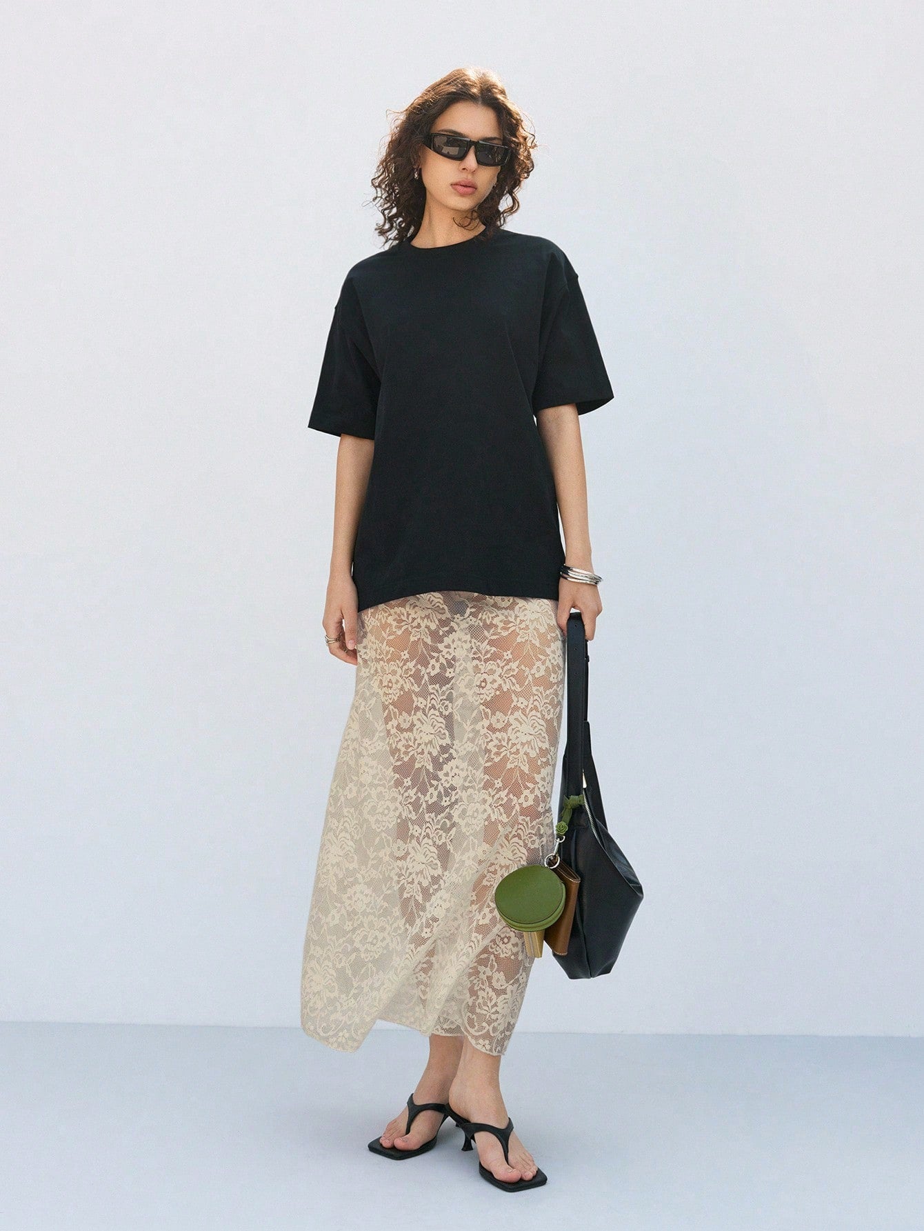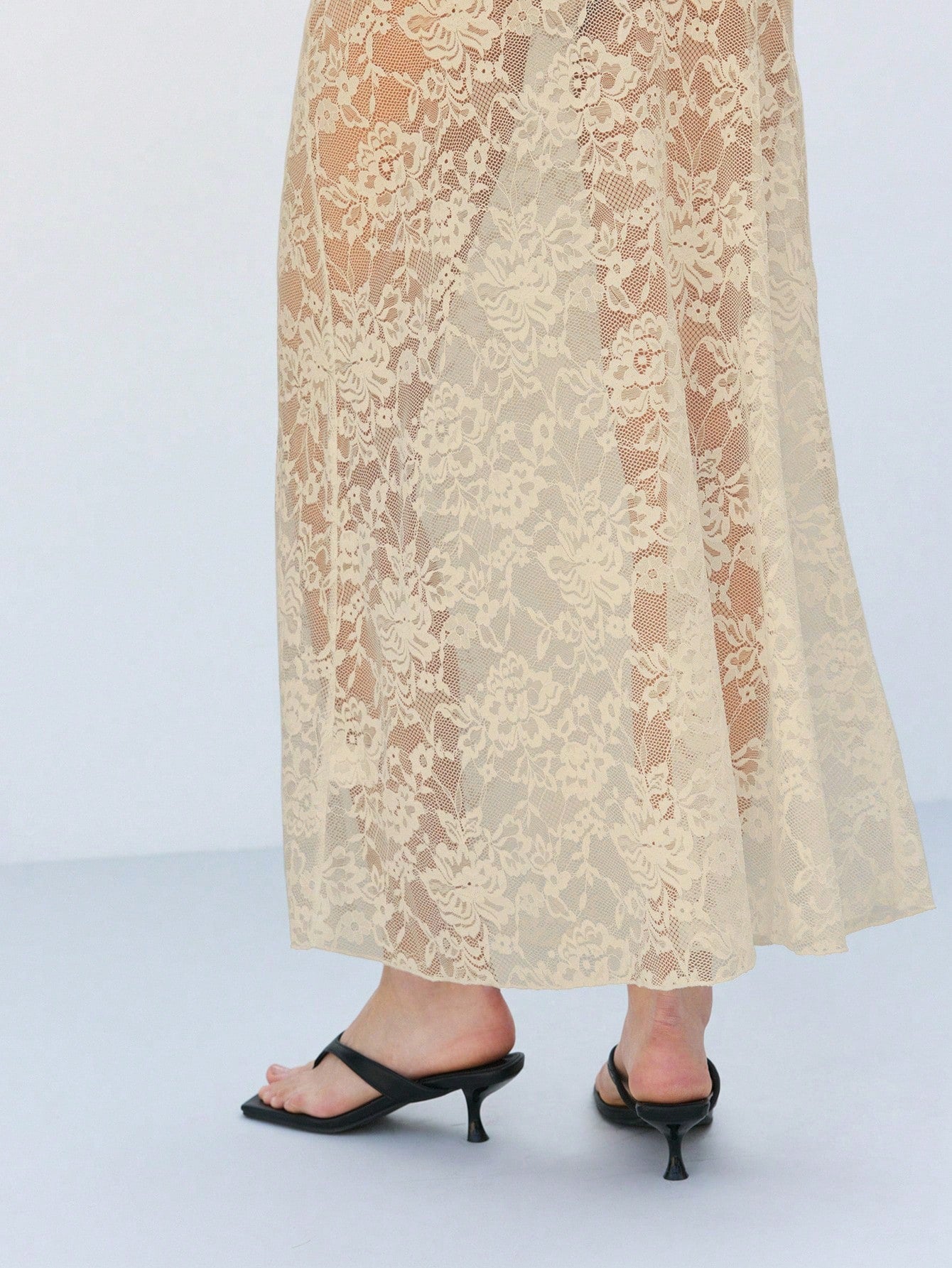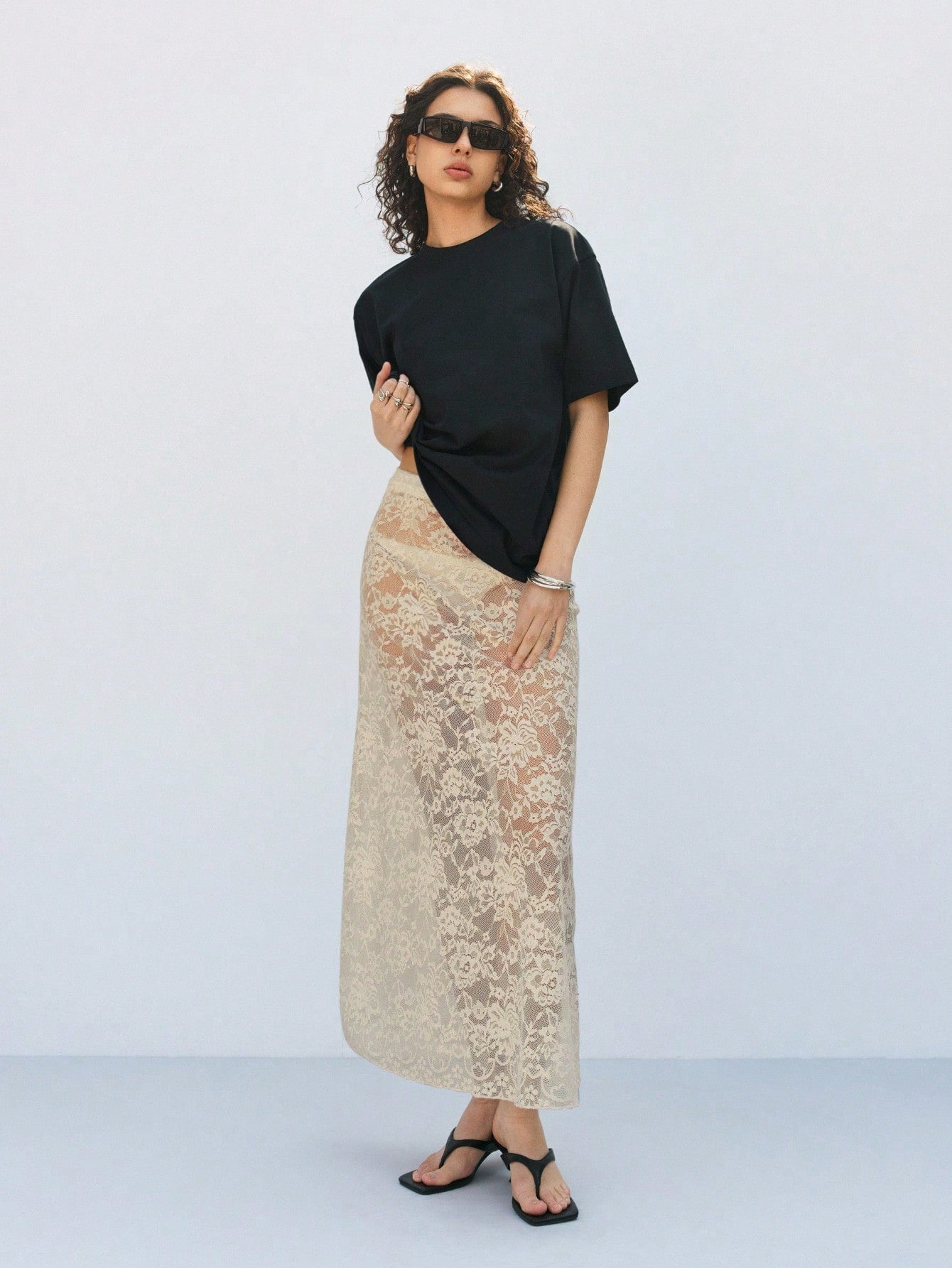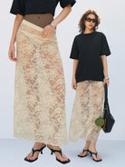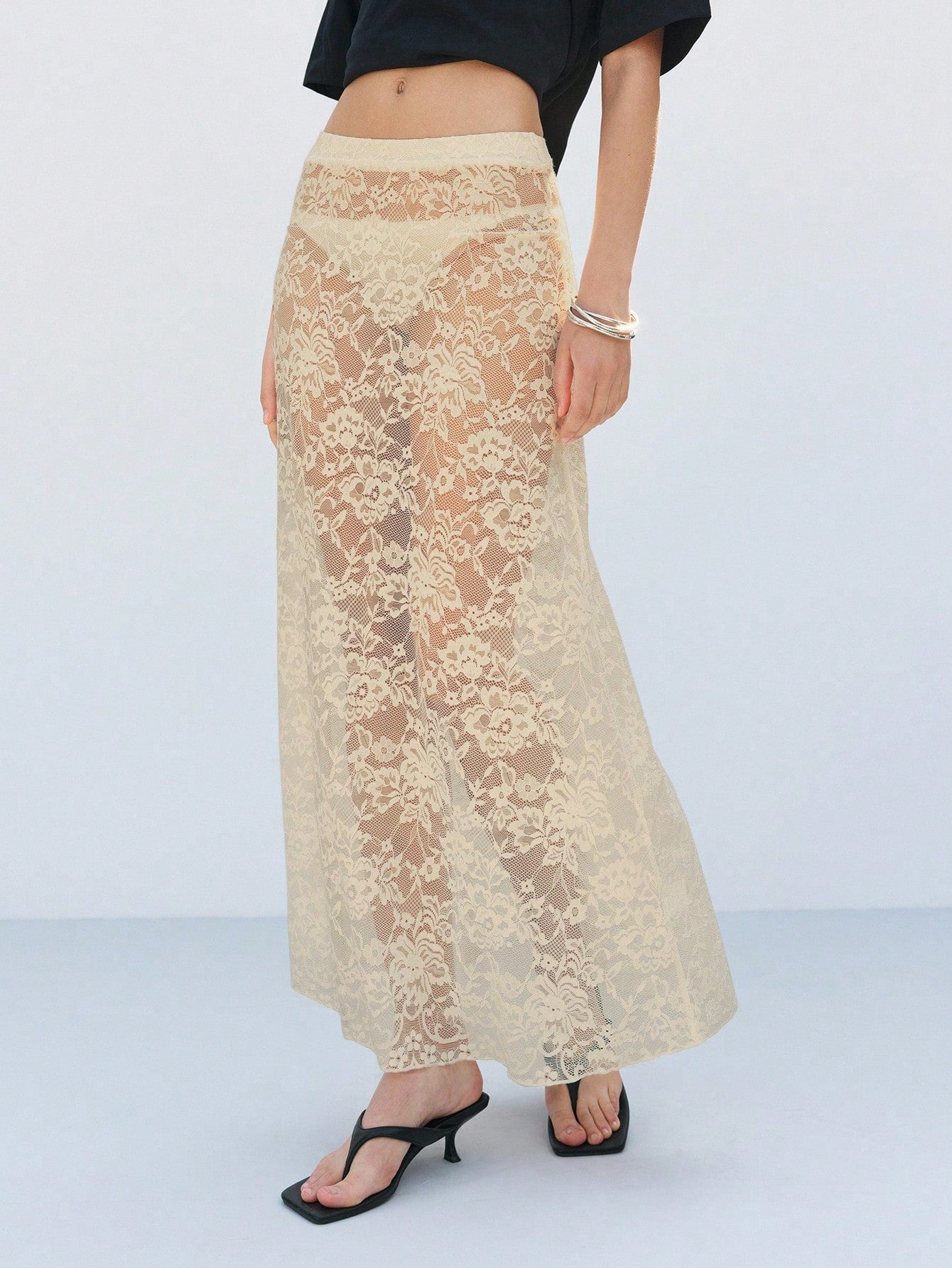LYSMO 2025 New Arrival Women's Floral Lace Long Fashionable Sheer Midi Skirt