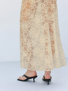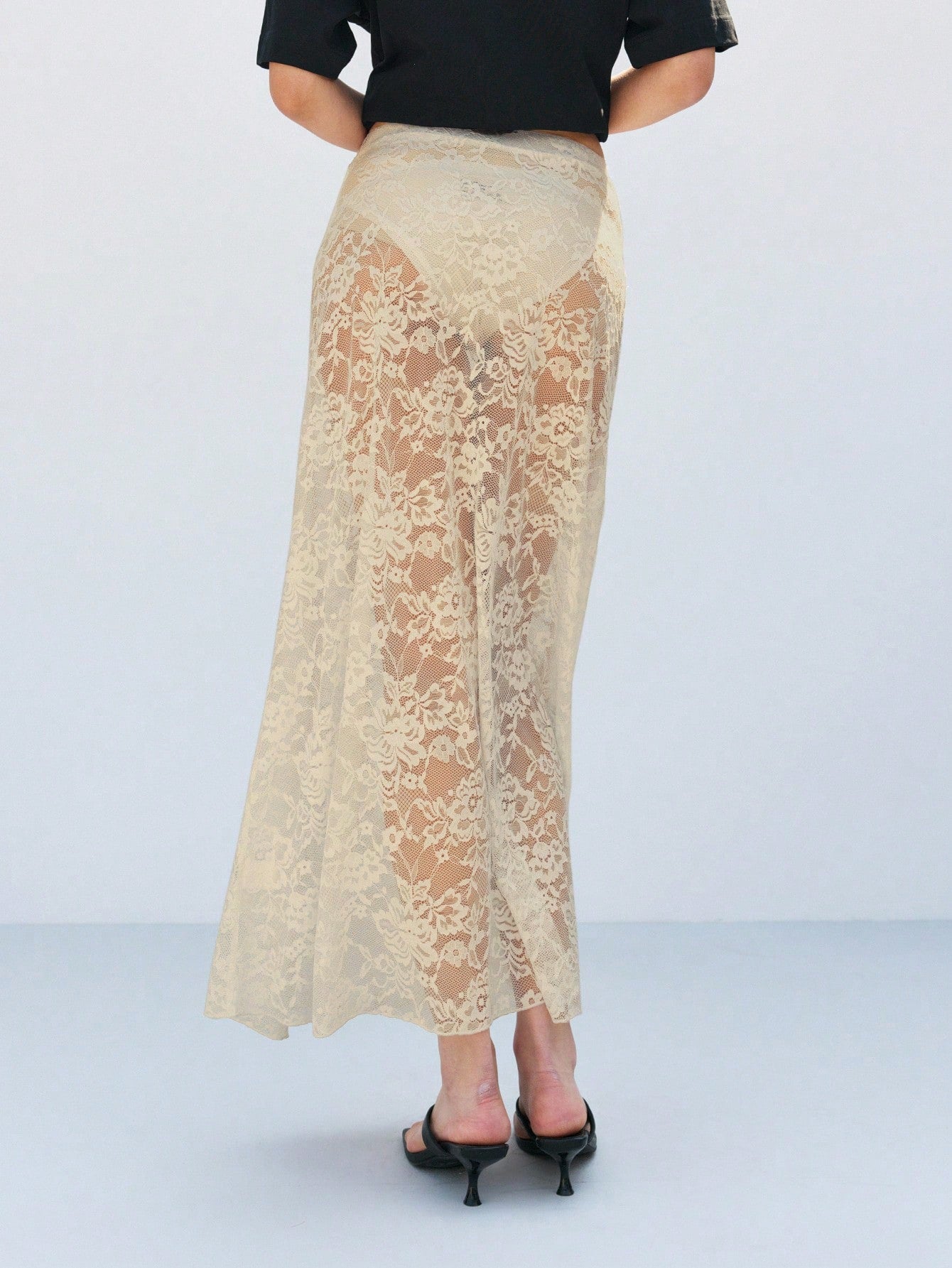 women LYSMO 2025 New Arrival Women's Floral Lace Long Fashionable Sheer Midi Skirt