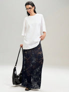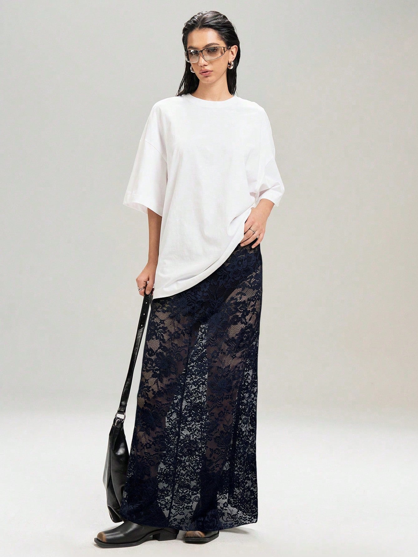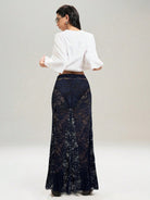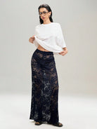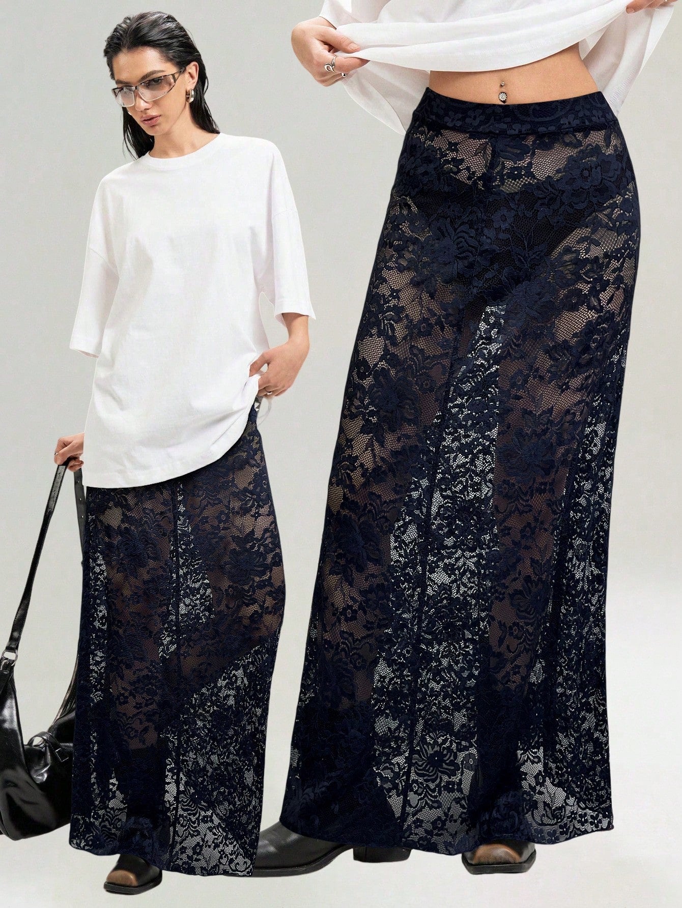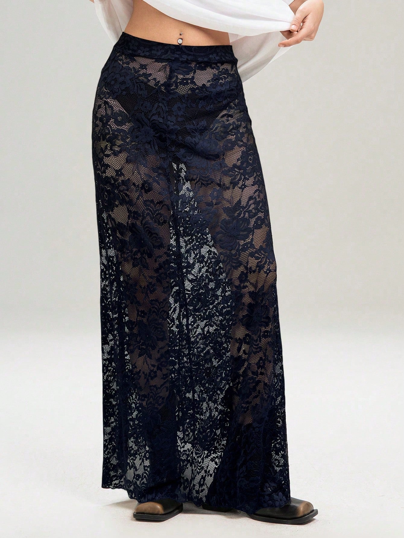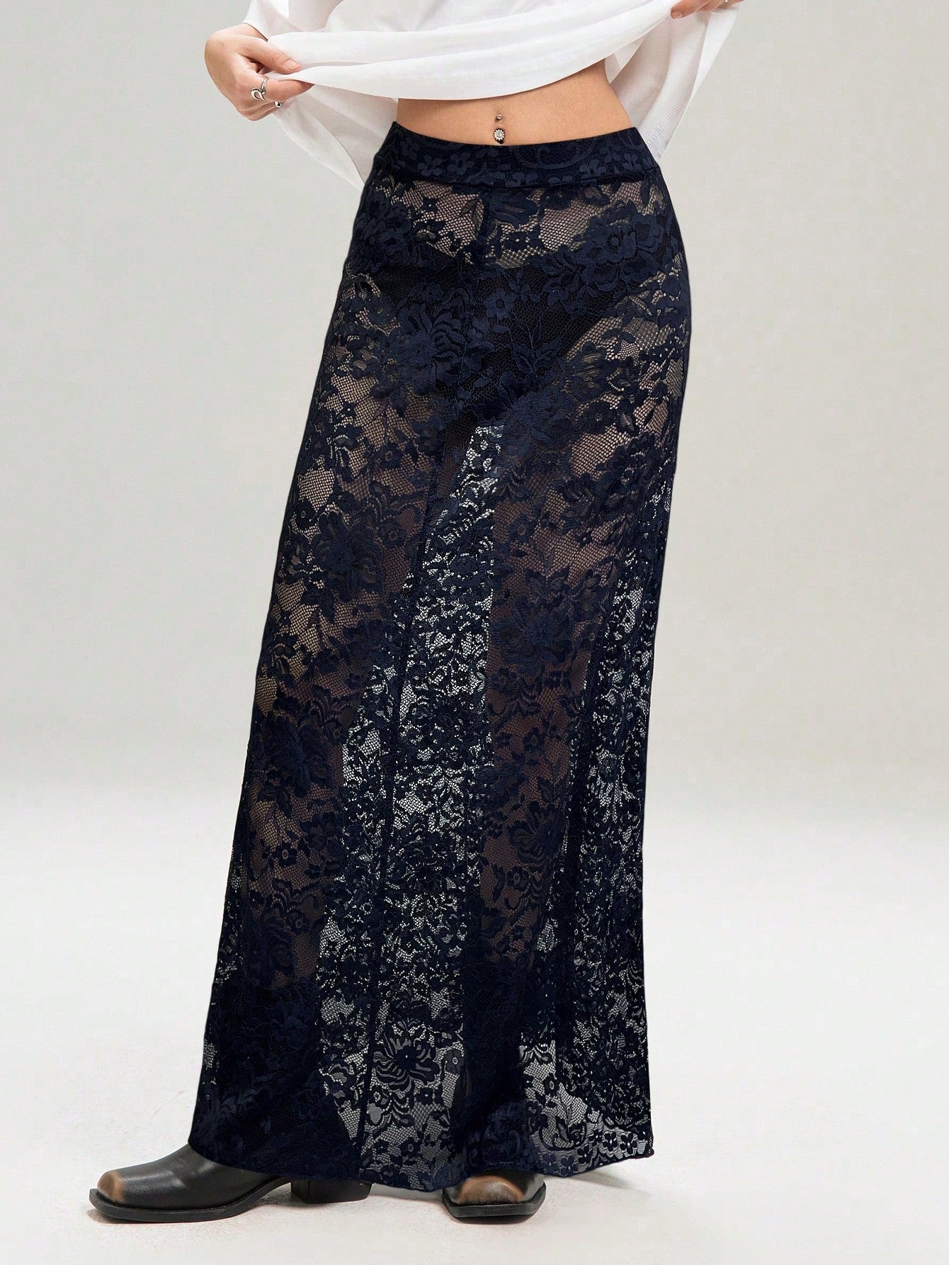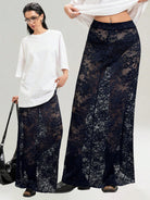 LYSMO 2025 New Arrival Women's Floral Lace Long Fashionable Sheer Midi Skirt
