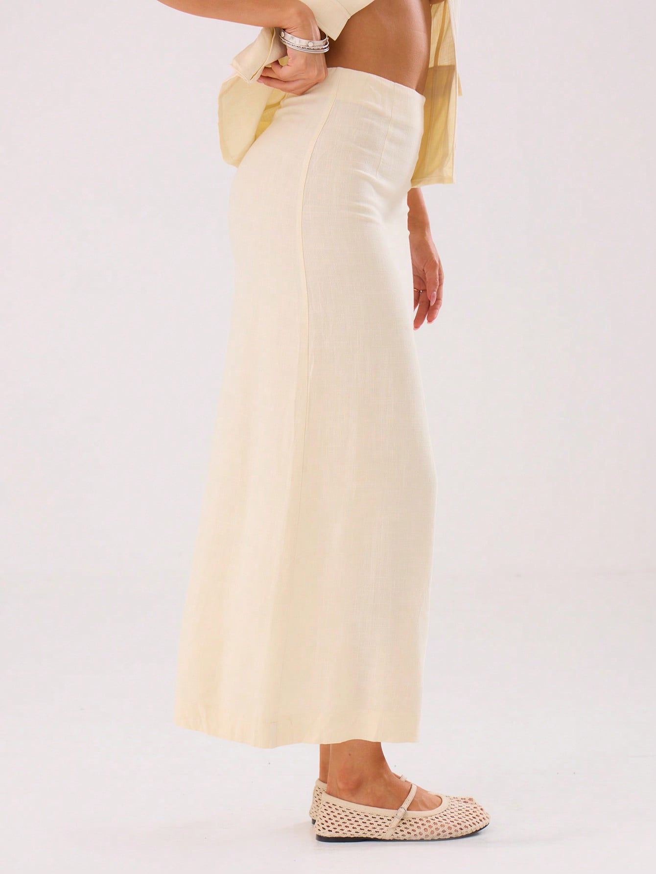 MUSERA Summer Sheer Linen Loose Fit Maxi Skirt Elegant Spring Sexy