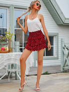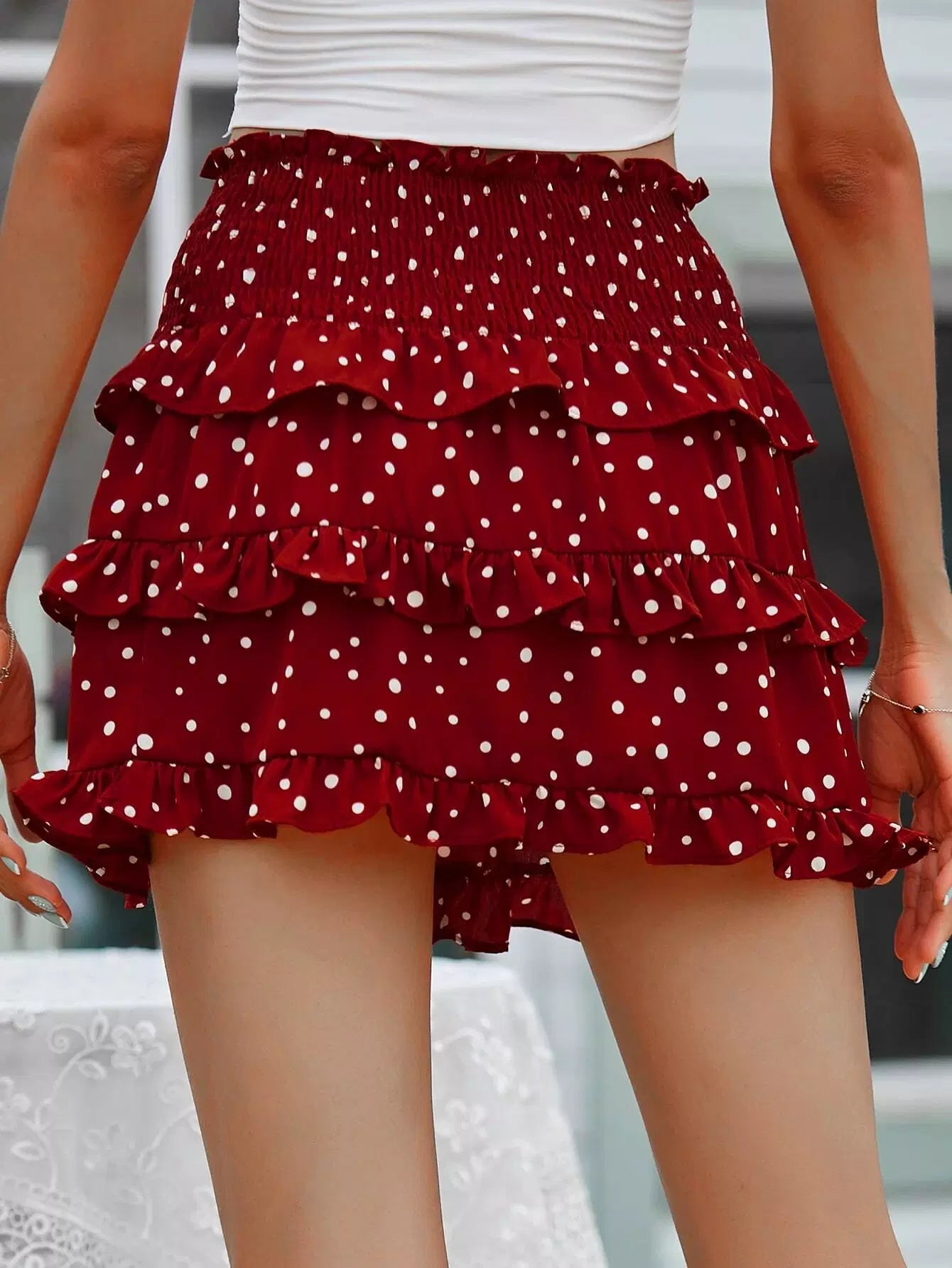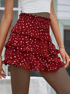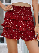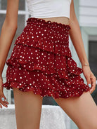 Polka Dot Layered Hem Shirred Skirt