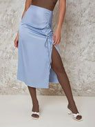 Satin Ruched Drawstring High-Slit Midi Skirt