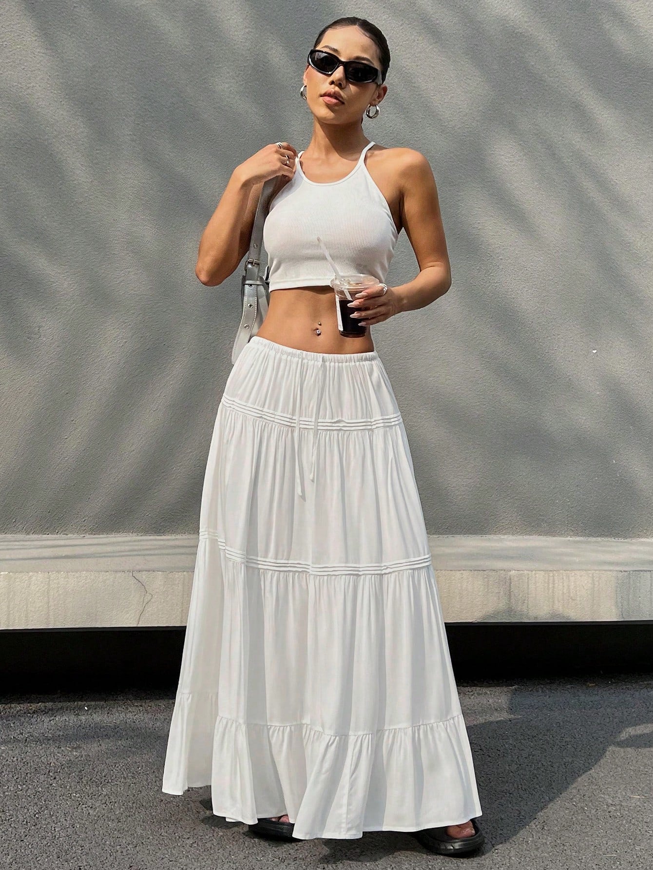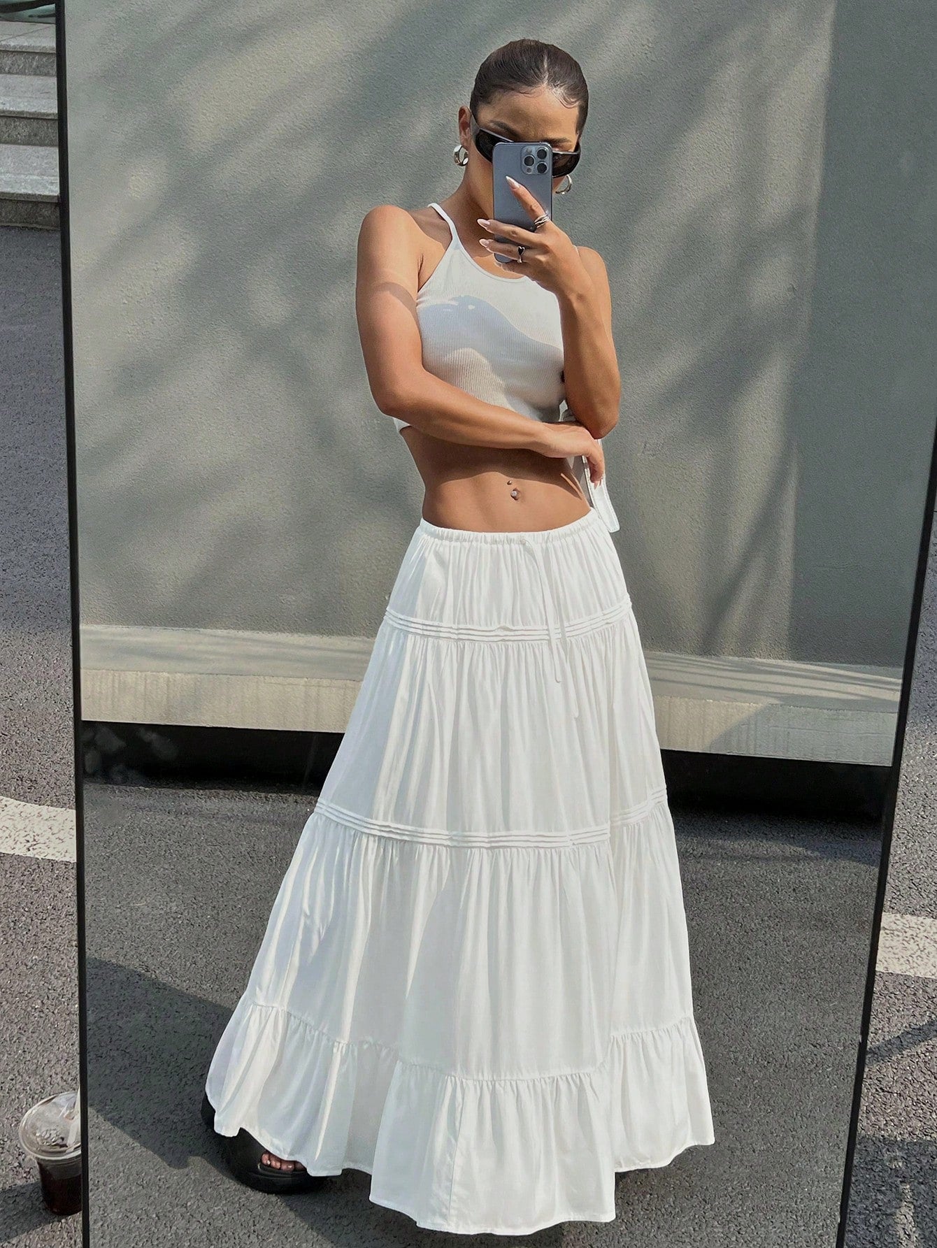 SHEIN EZwear Women Plain And Simple Everyday Pleated Skirt
