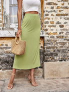 Solid Elastic Waist Skirt