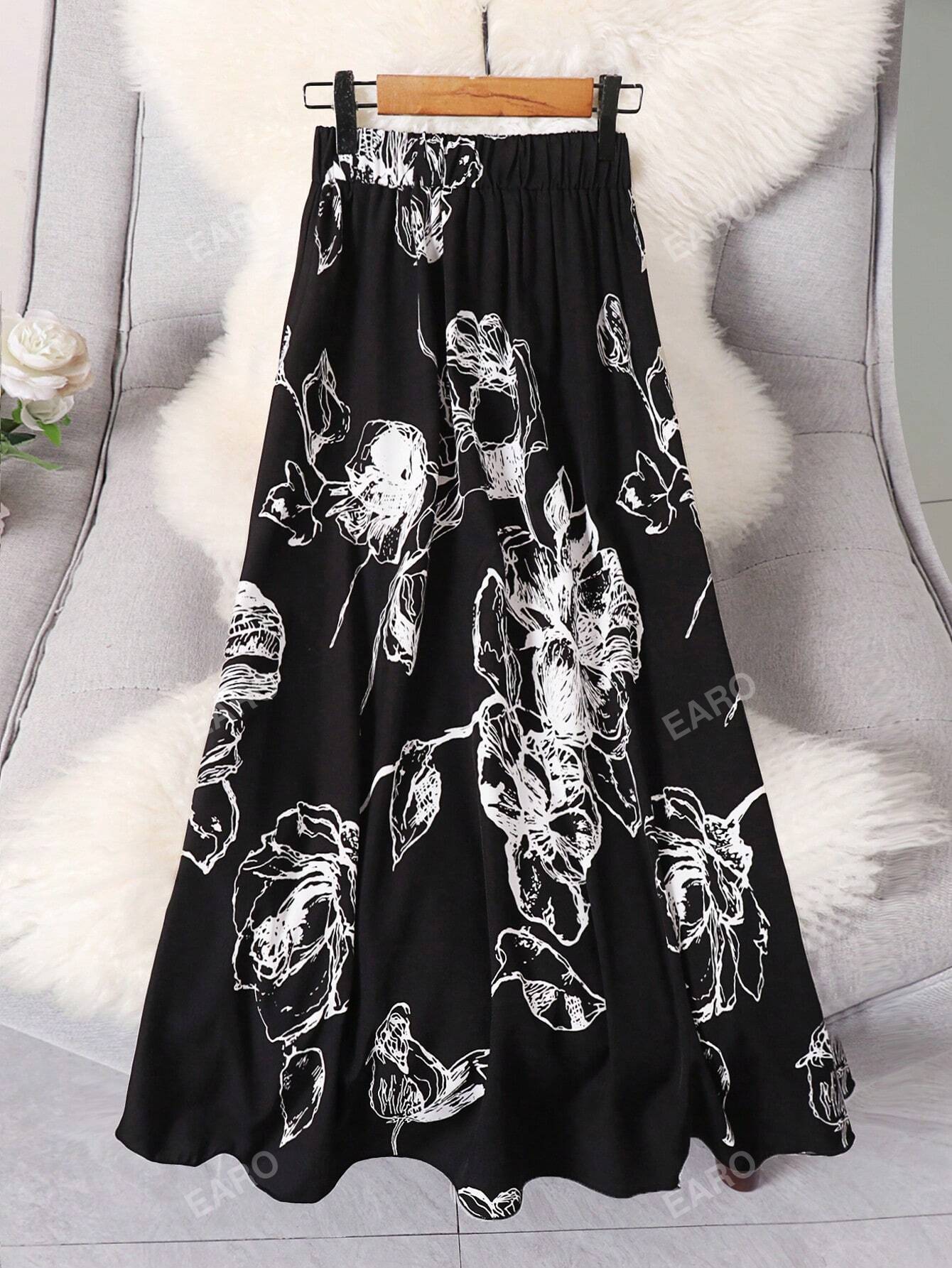 Women's Elastic Waist Floral Printed A-Line Skirt