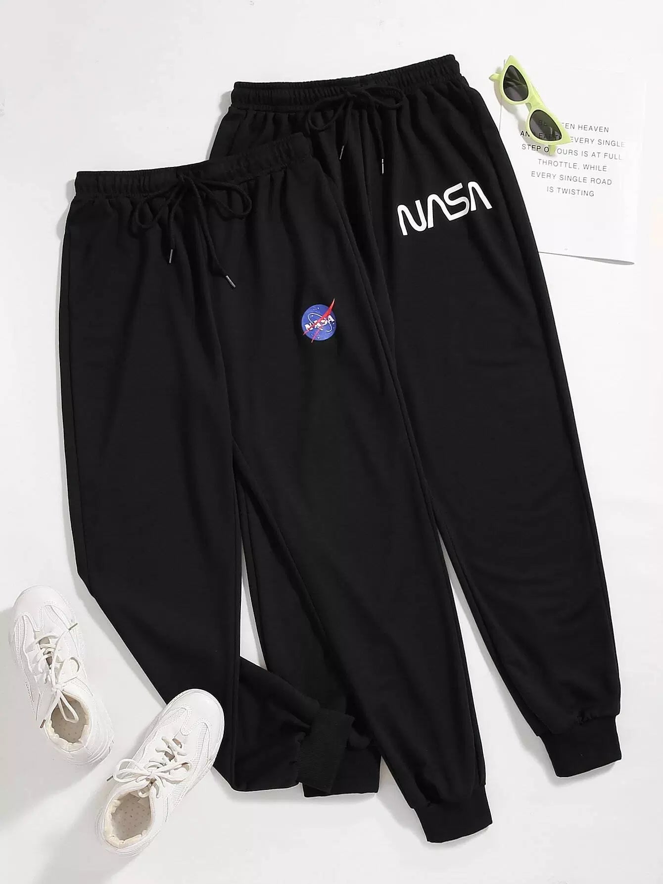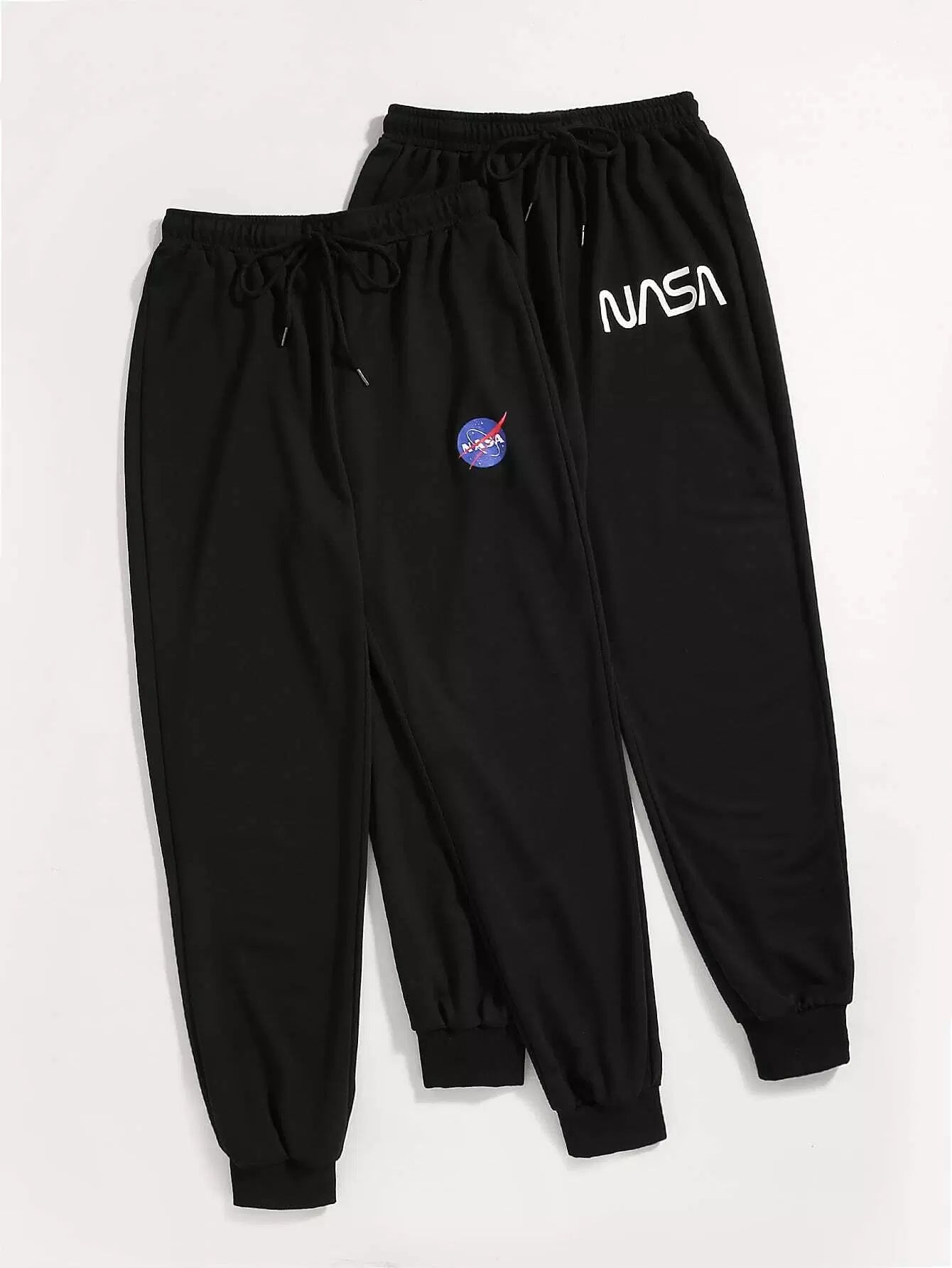 2pcs Drawstring Waist Letter Graphic Sweatpants