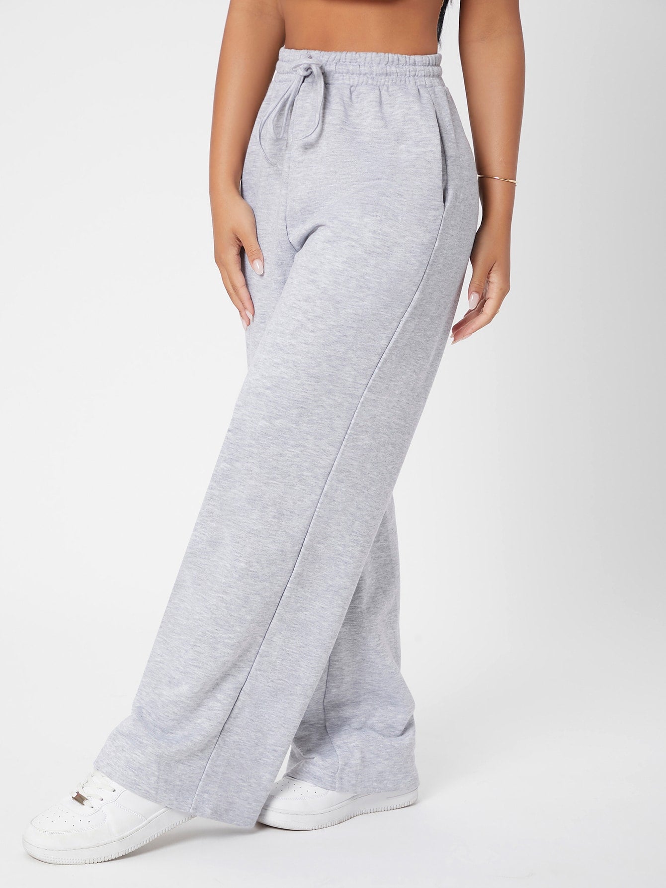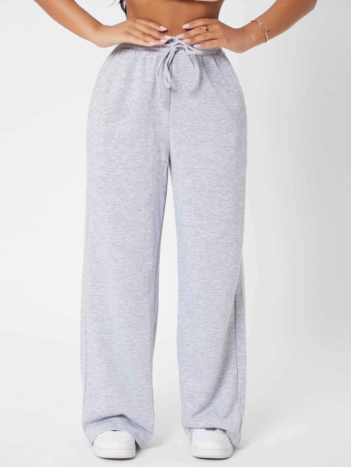 PETITE Drawstring Waist Solid Joggers Wide Leg Trousers
