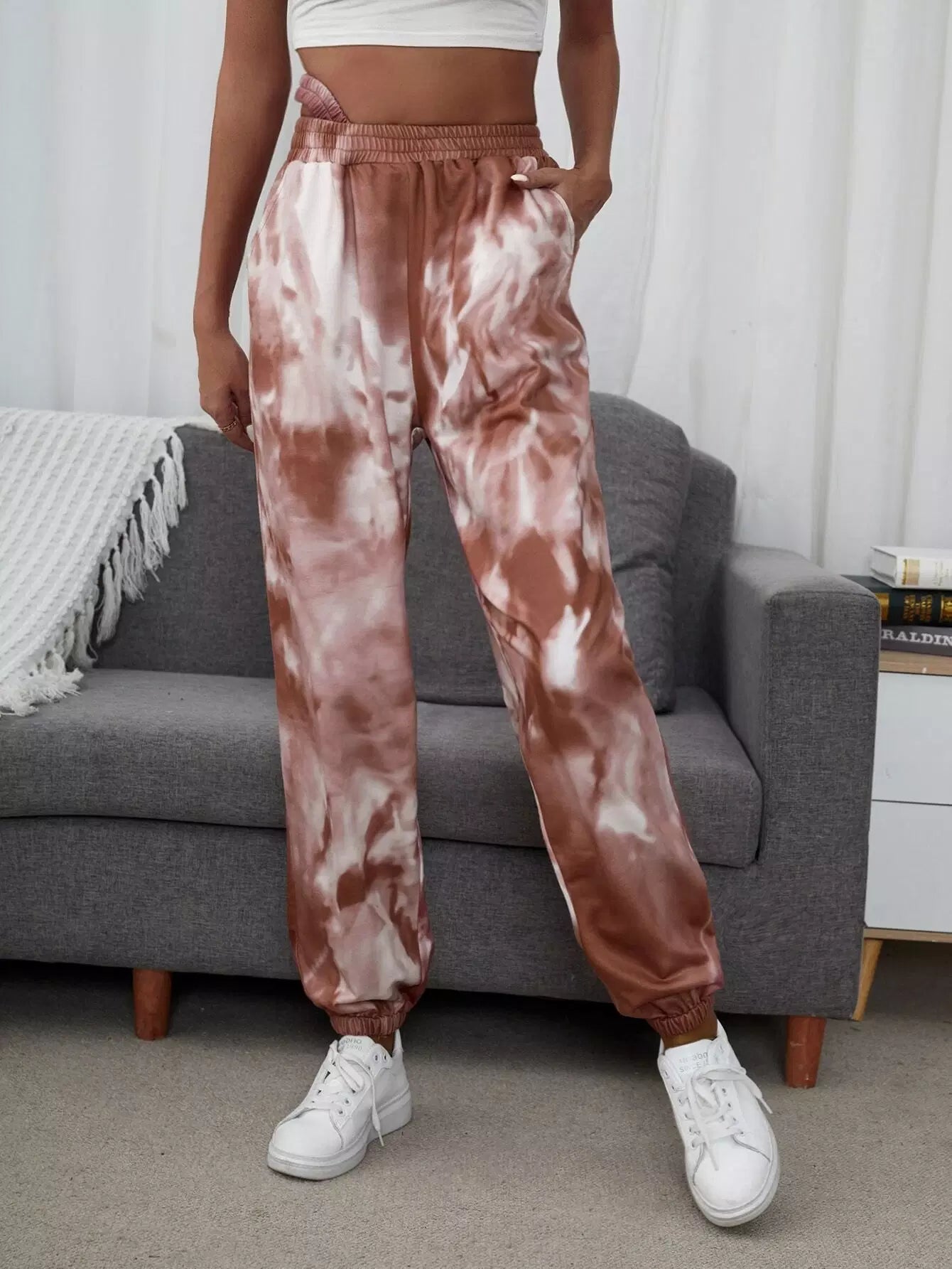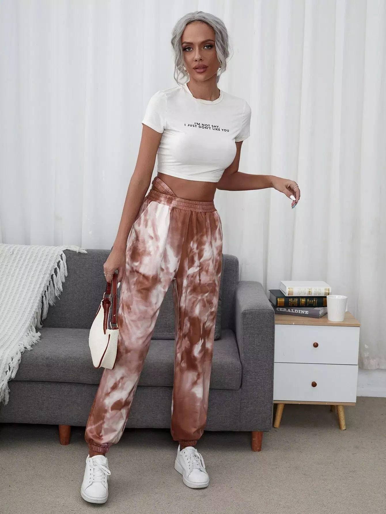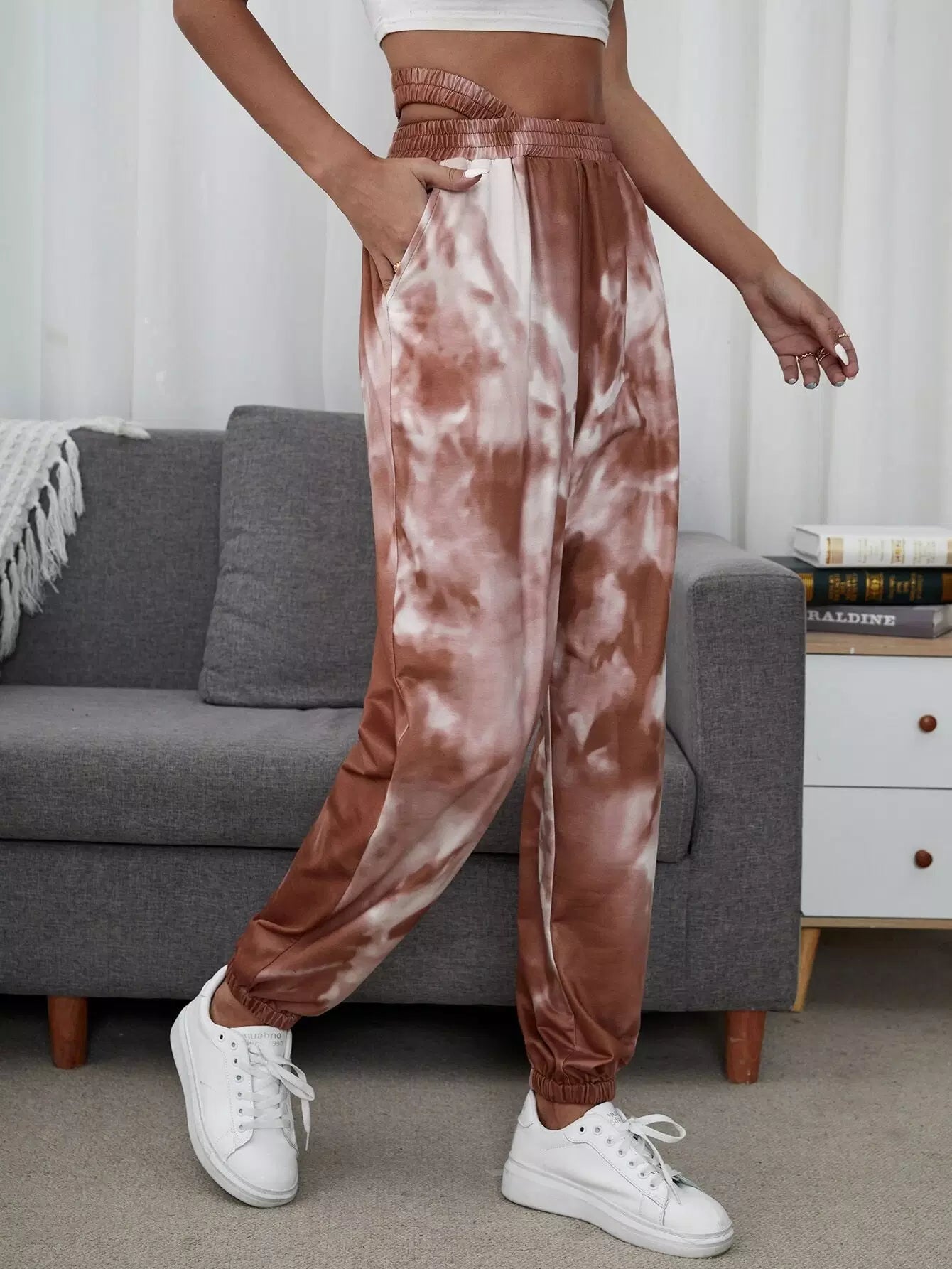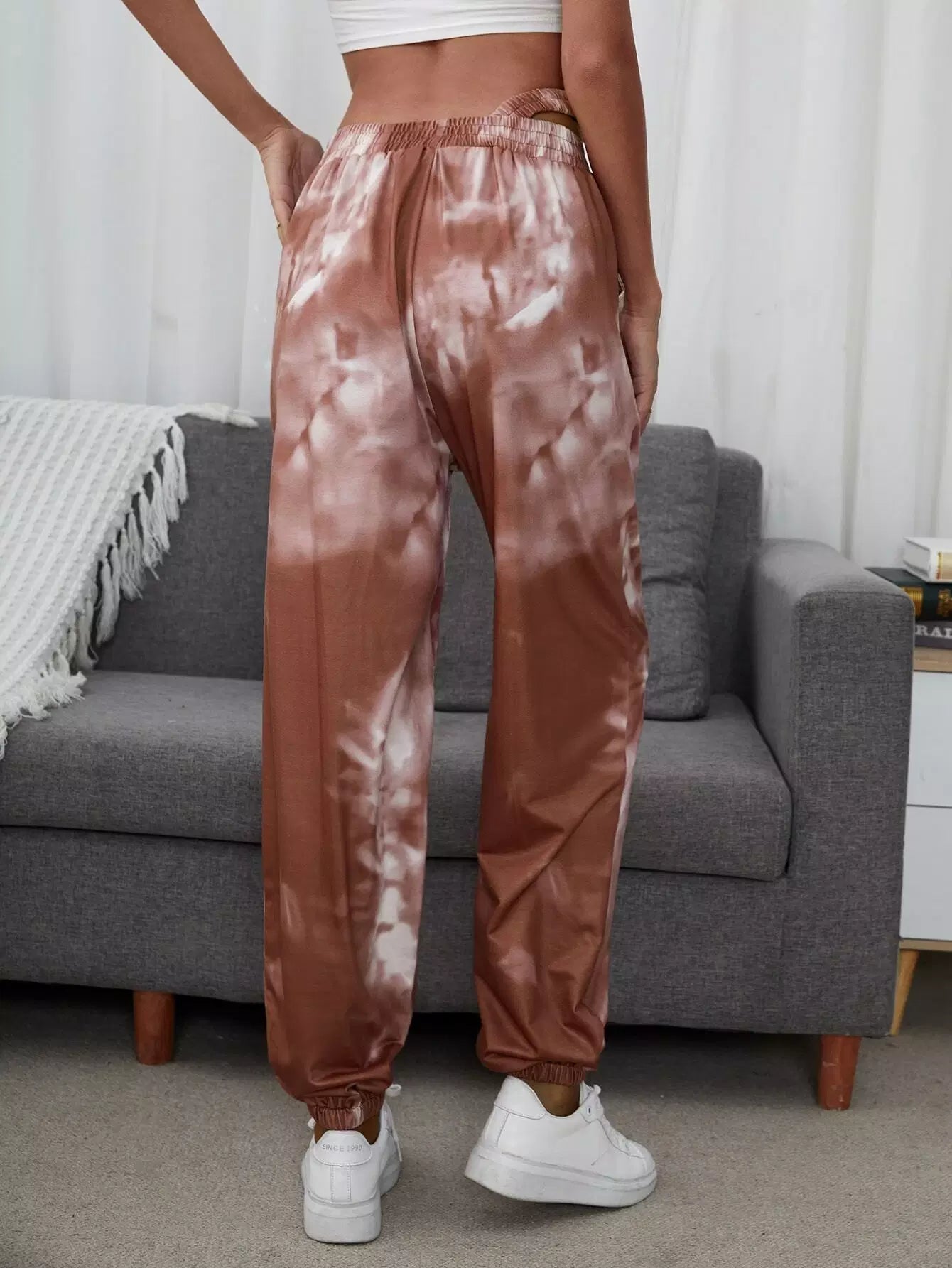 Tie Dye Cut Out Elastic Waist Sweatpants