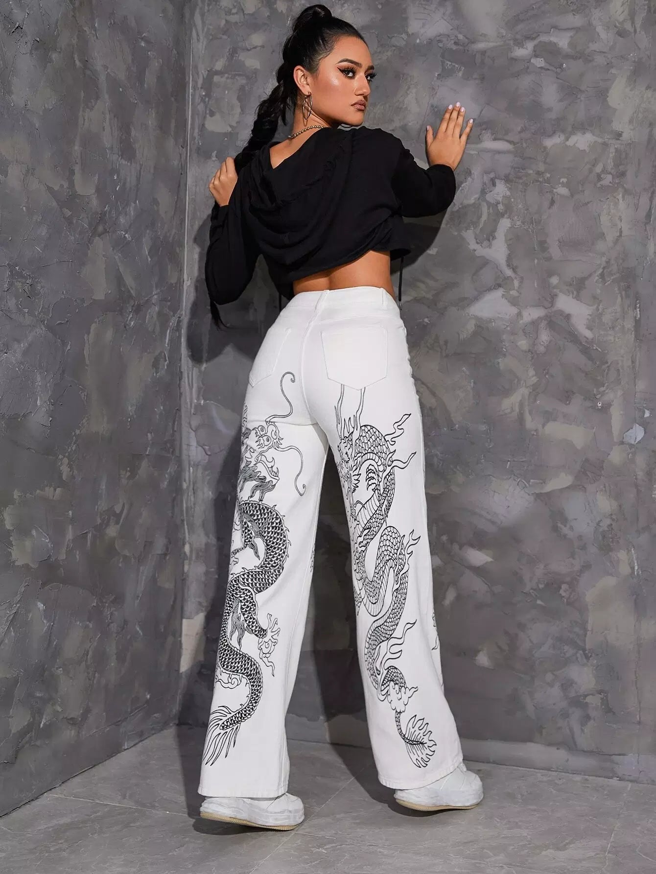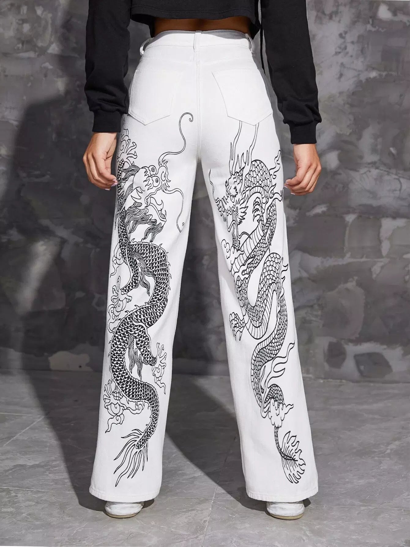 Chinese Dragon Print Jeans