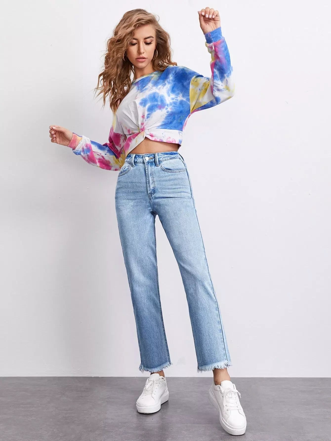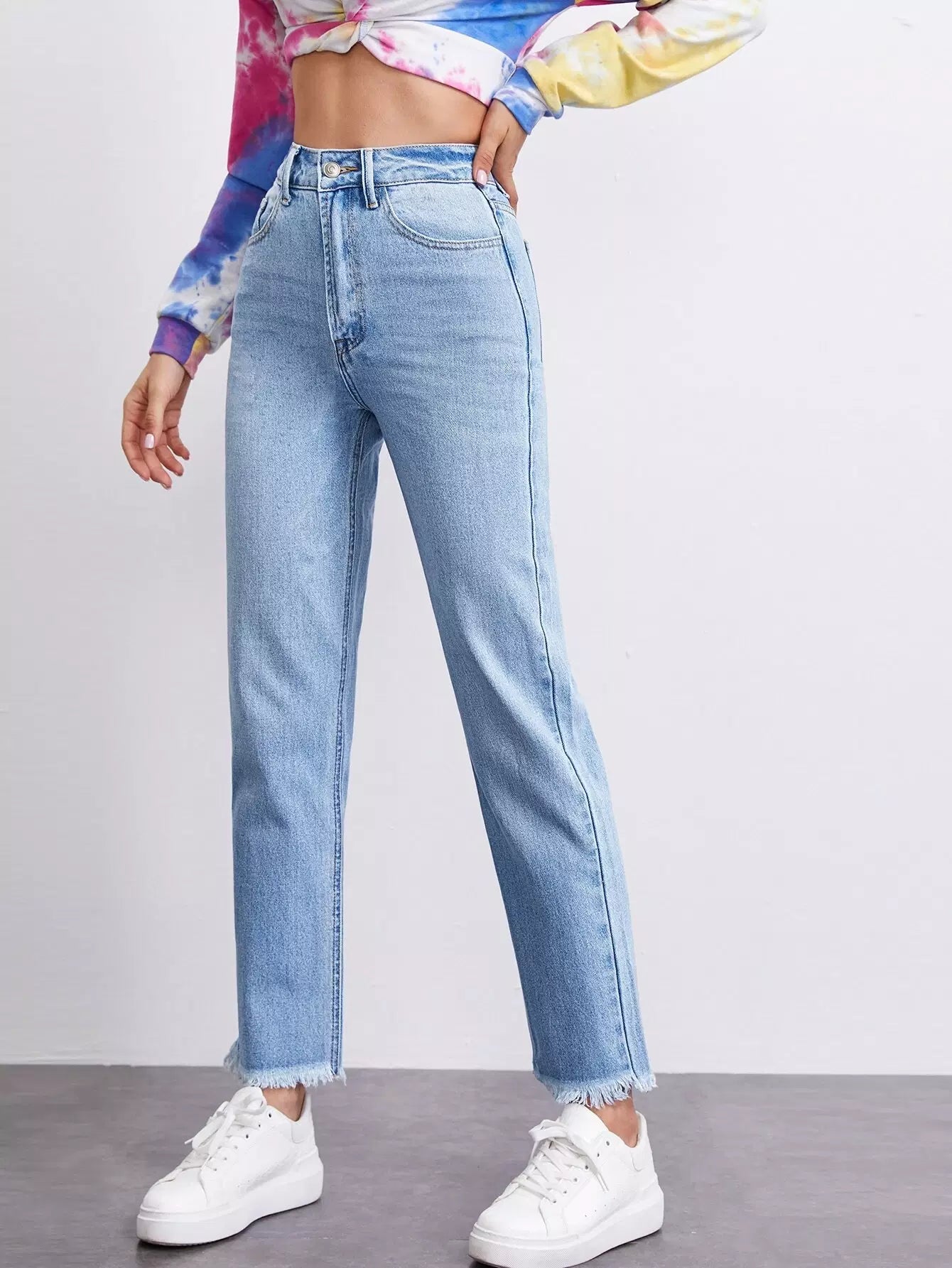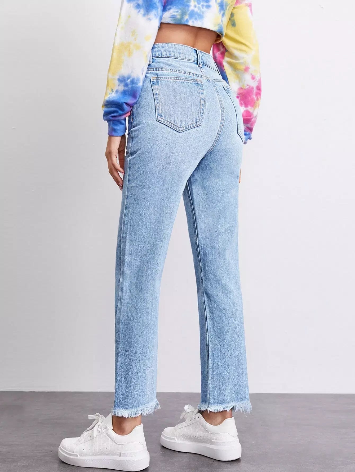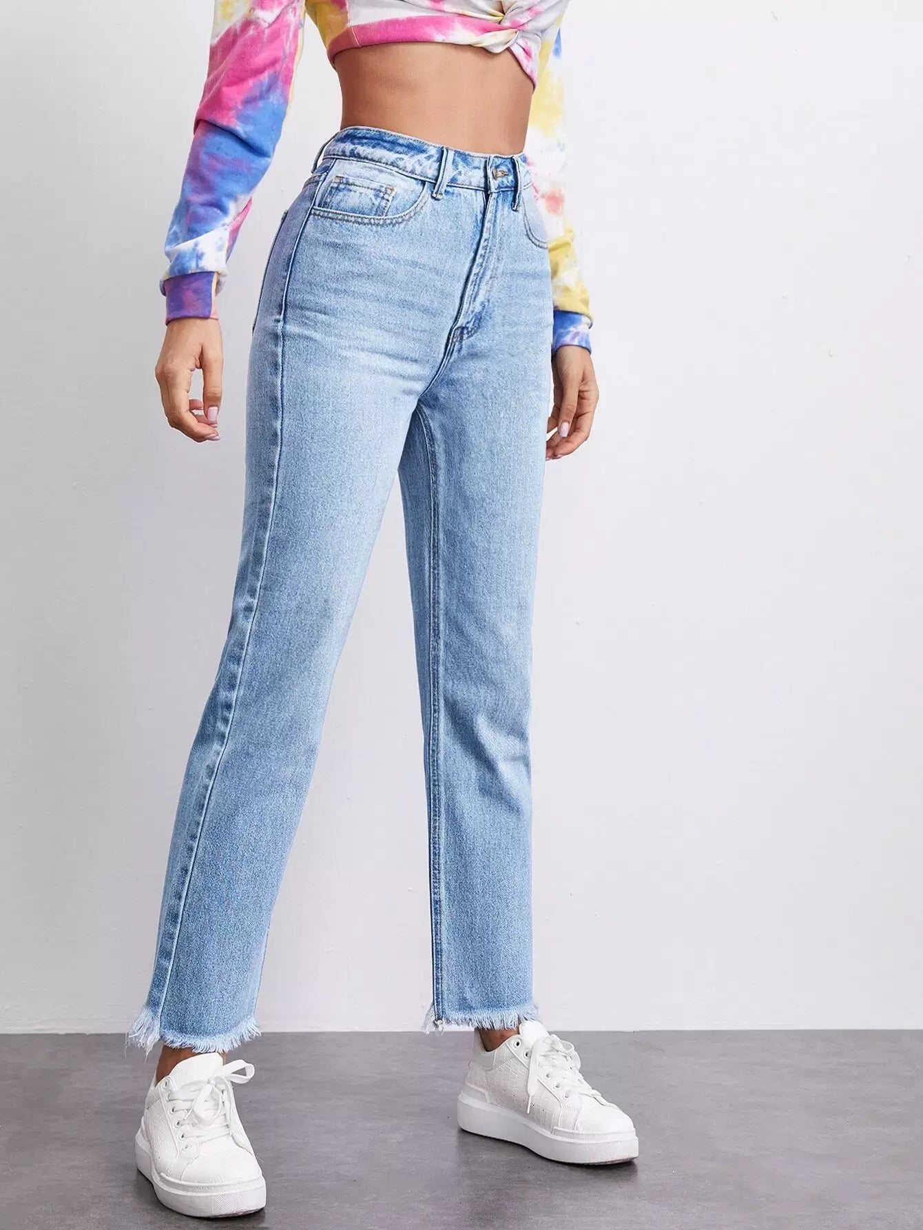 High Waist Raw Hem Straight Jeans