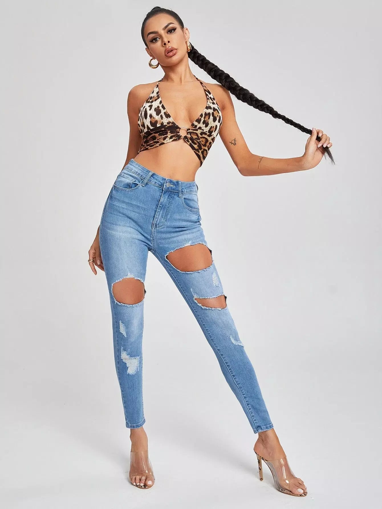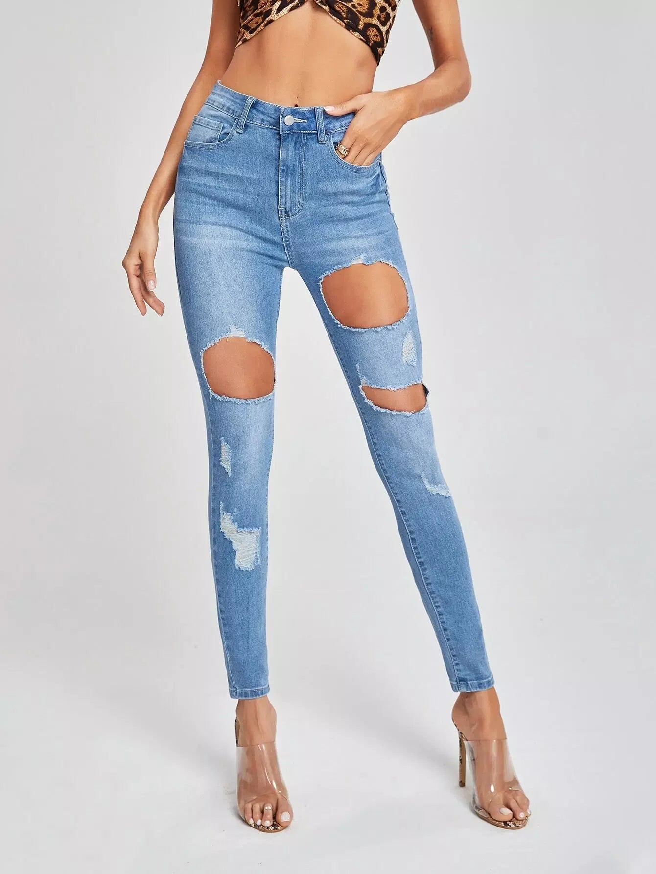 High Waist Ripped Skinny Jeans