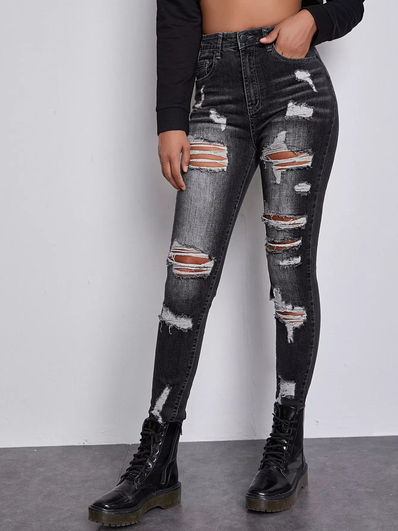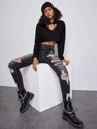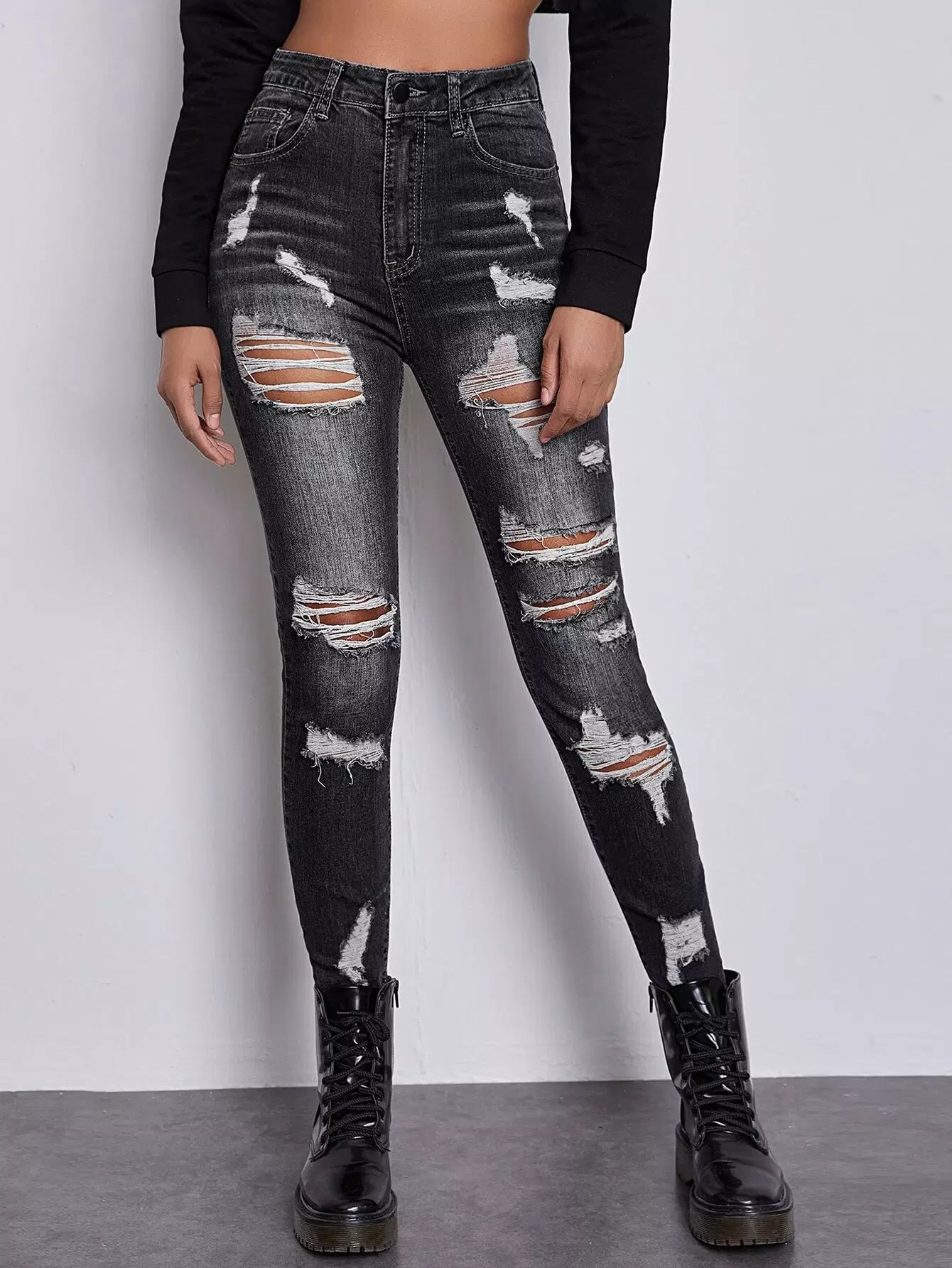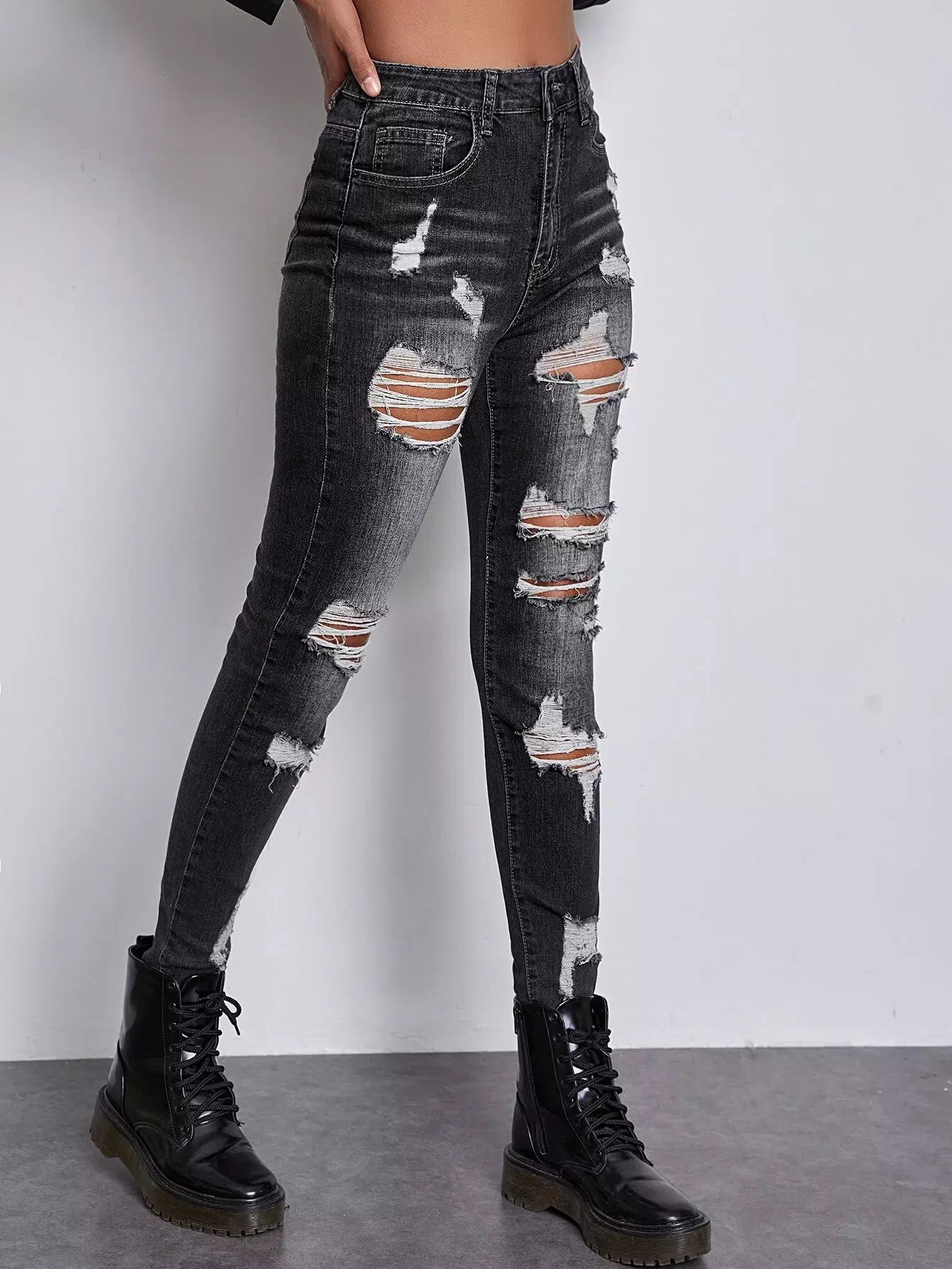 High Waist Ripped Skinny Jeans