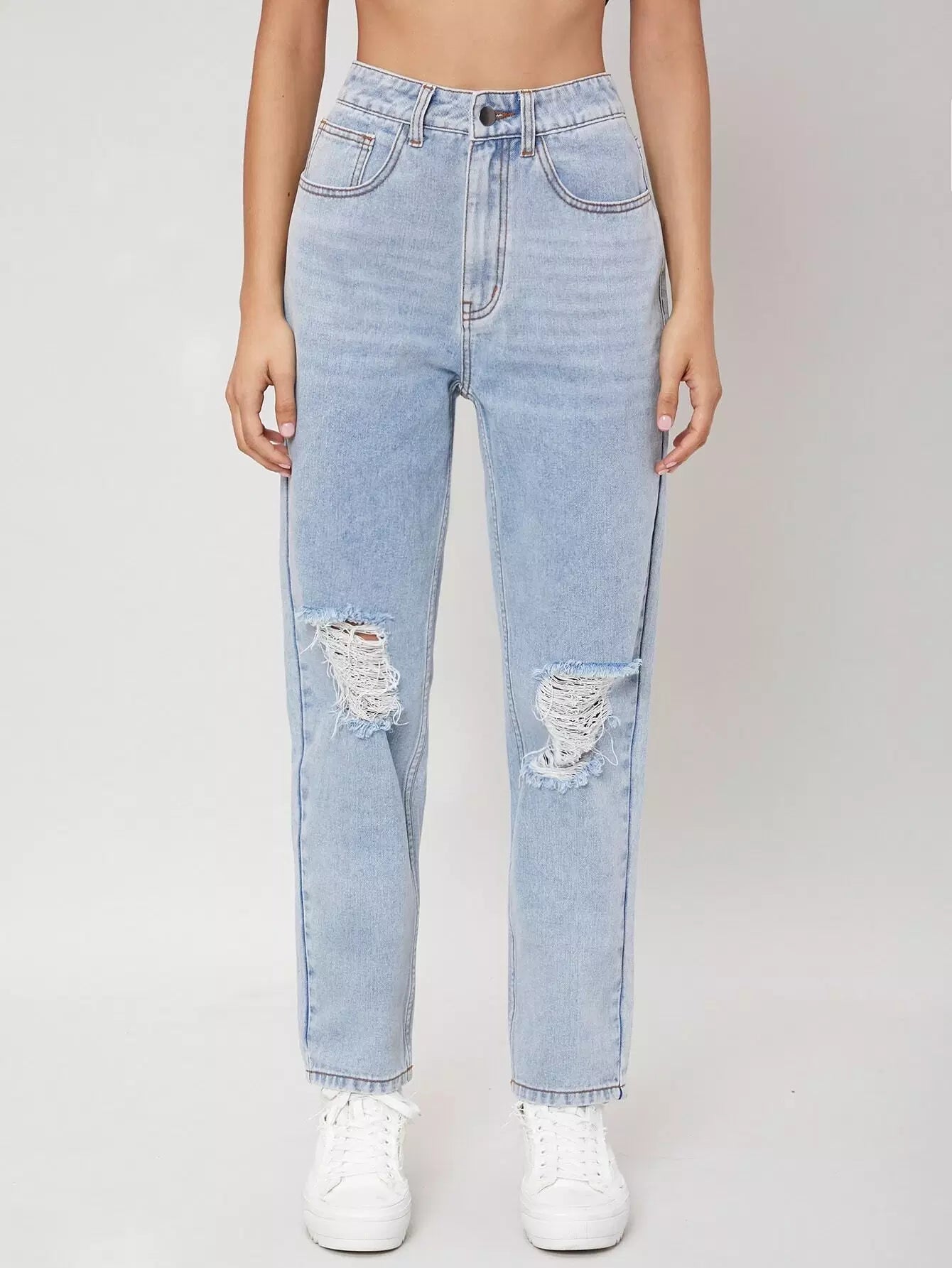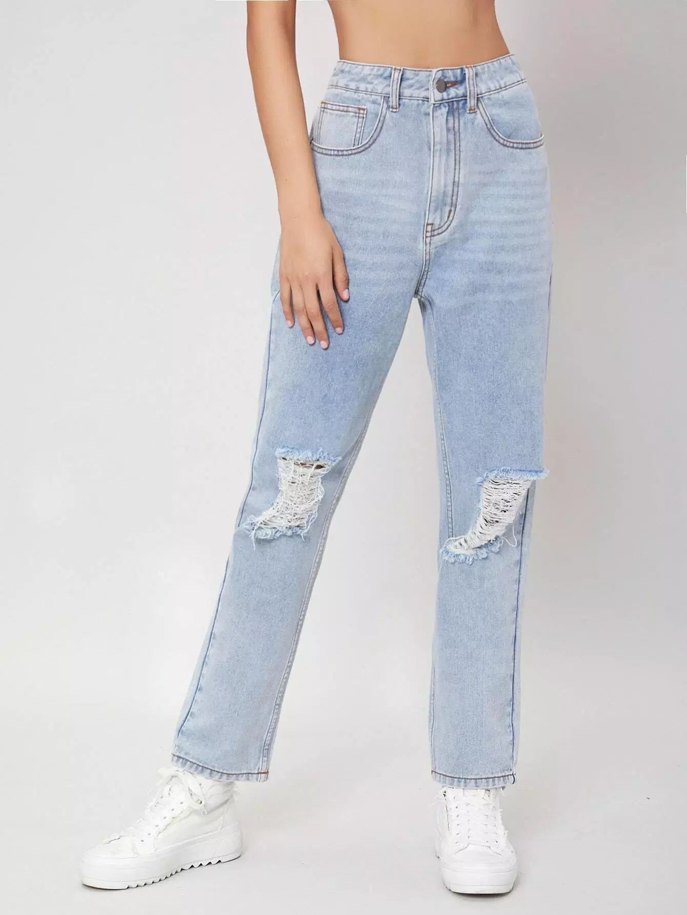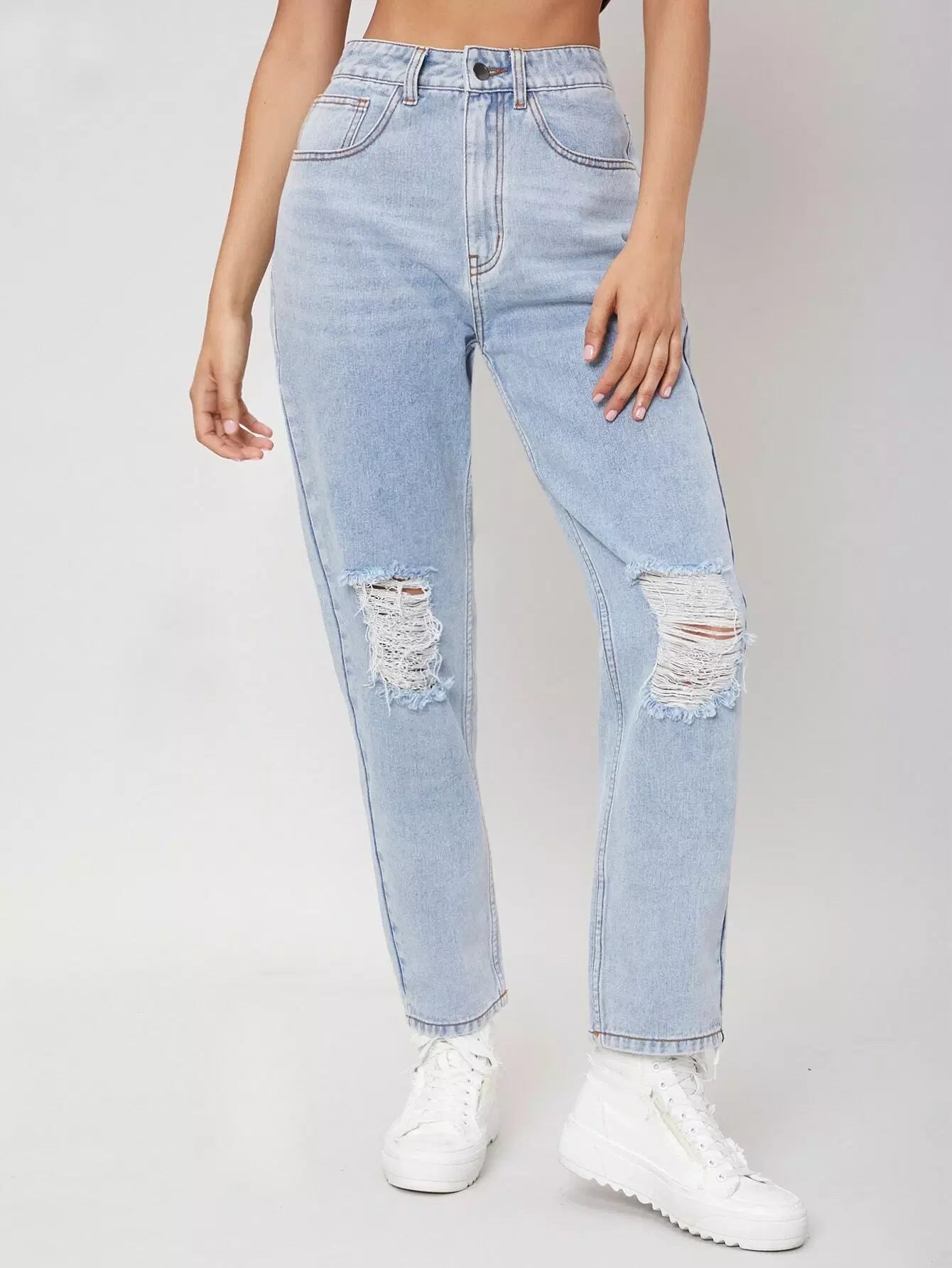 High Waisted Ripped Light Wash Jeans