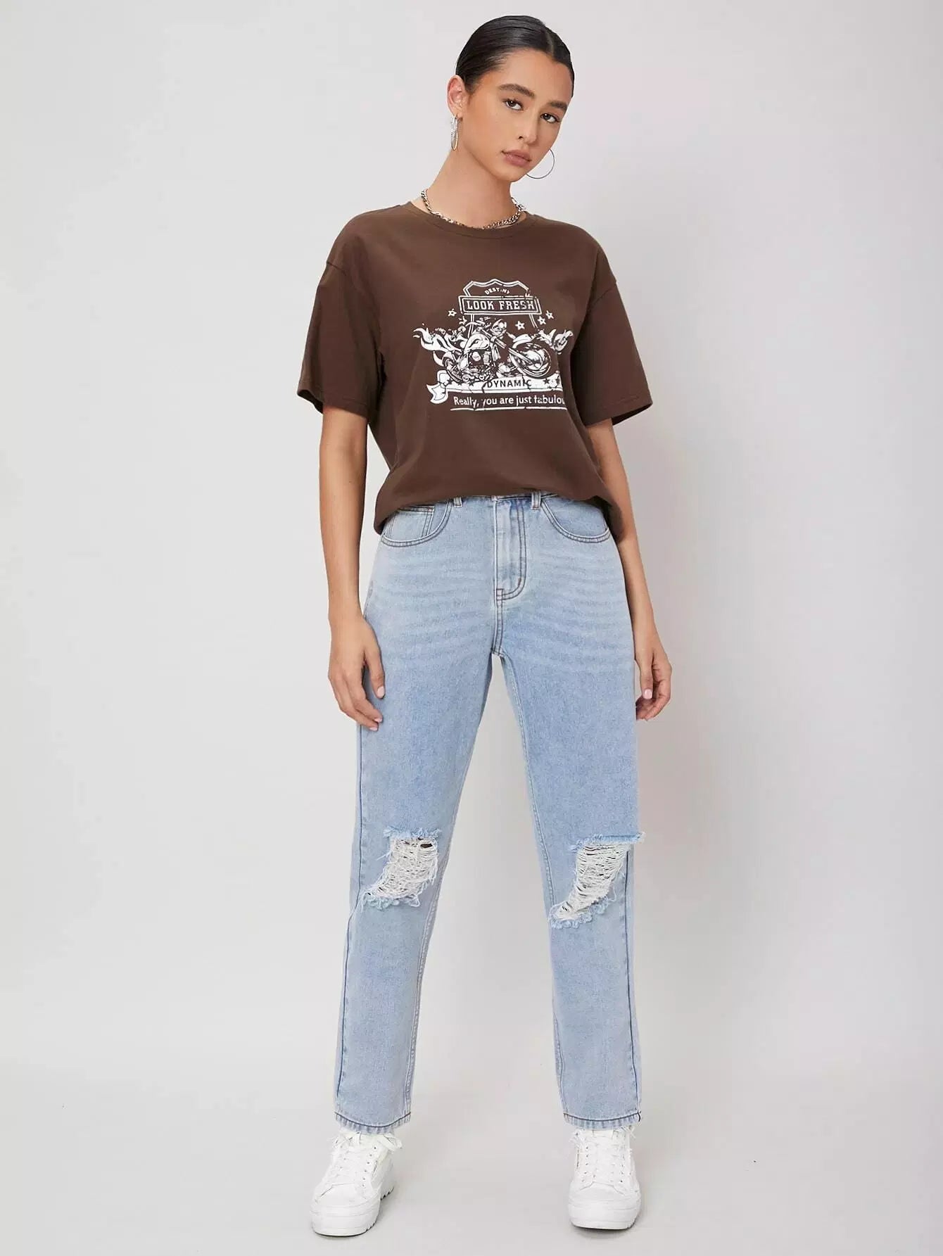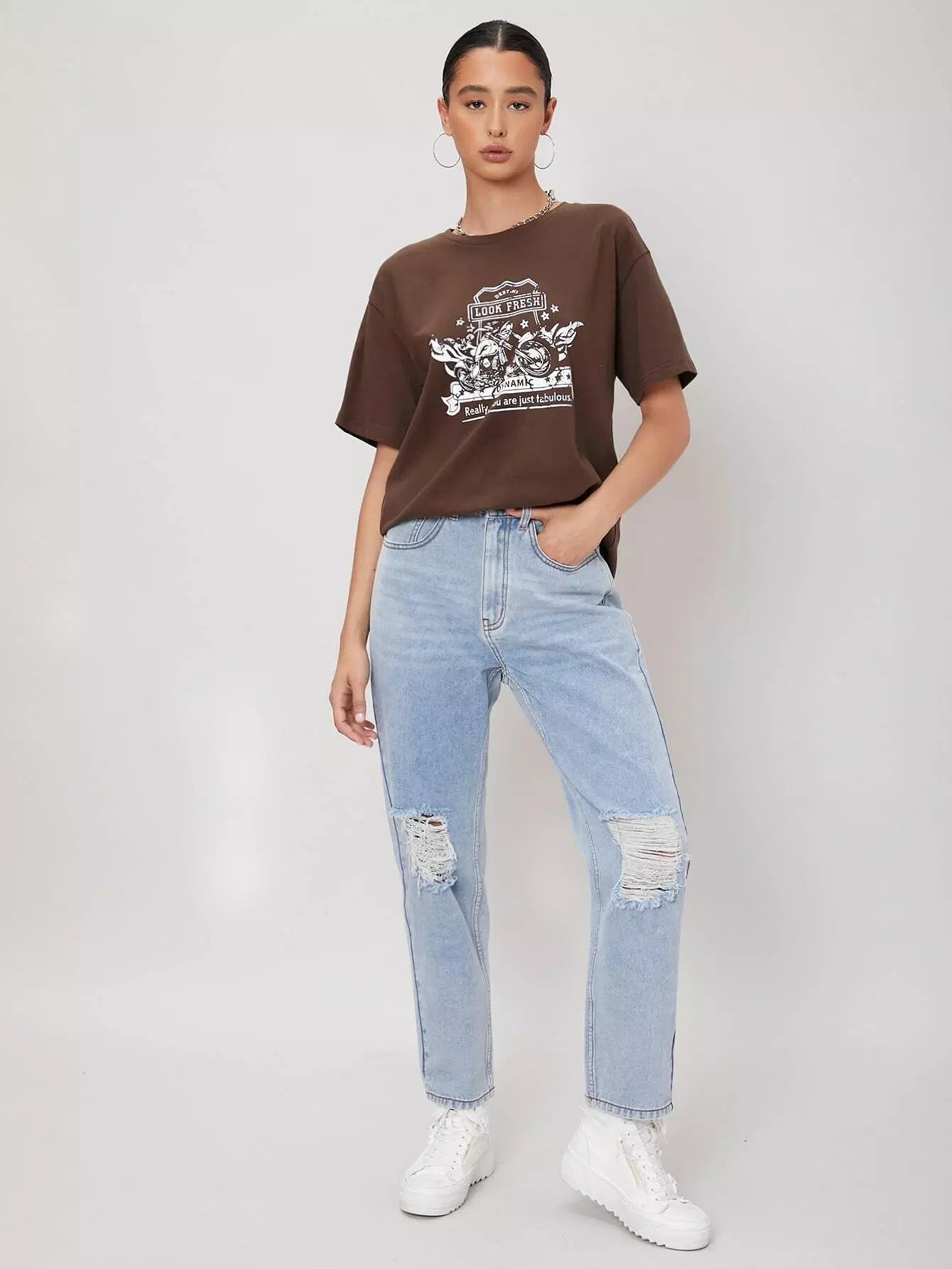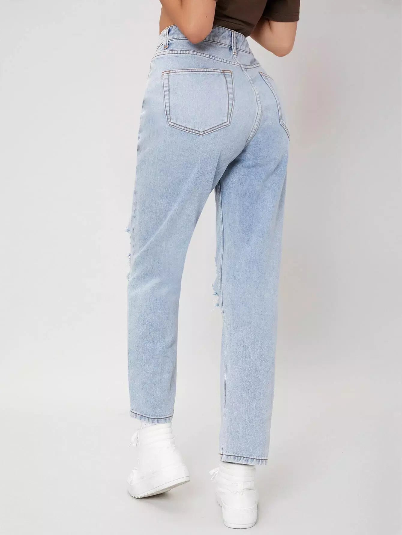 High Waisted Ripped Light Wash Jeans