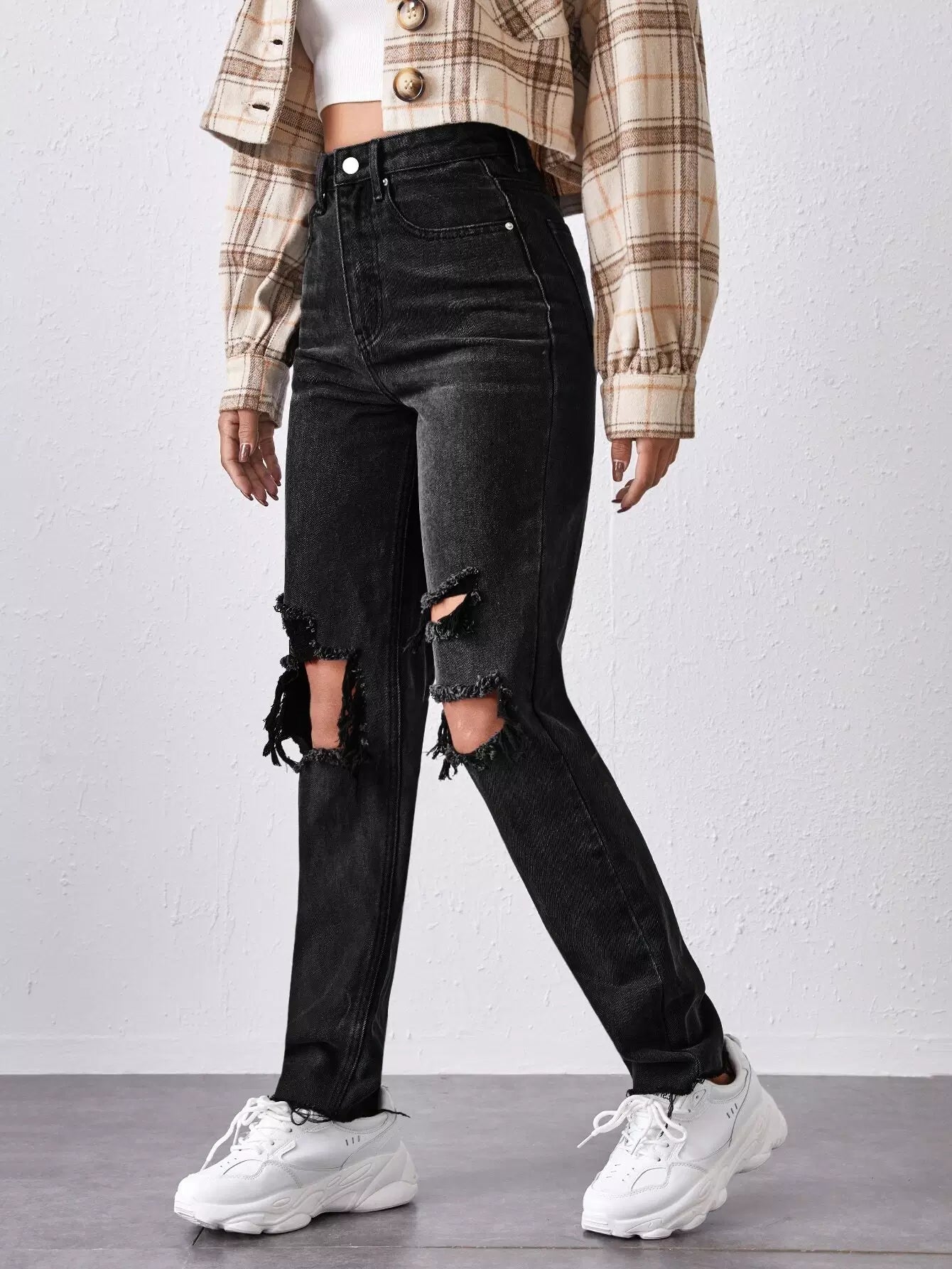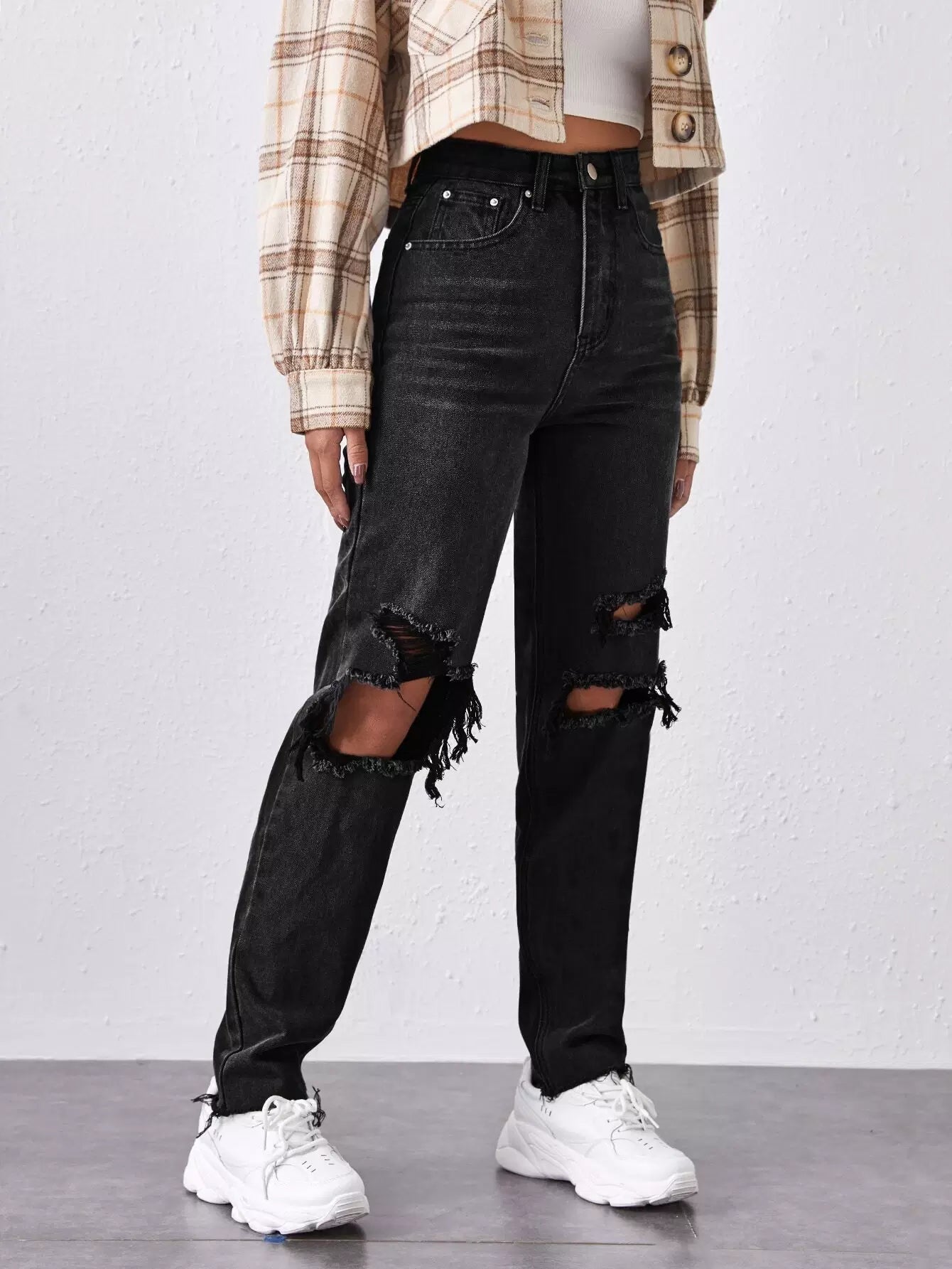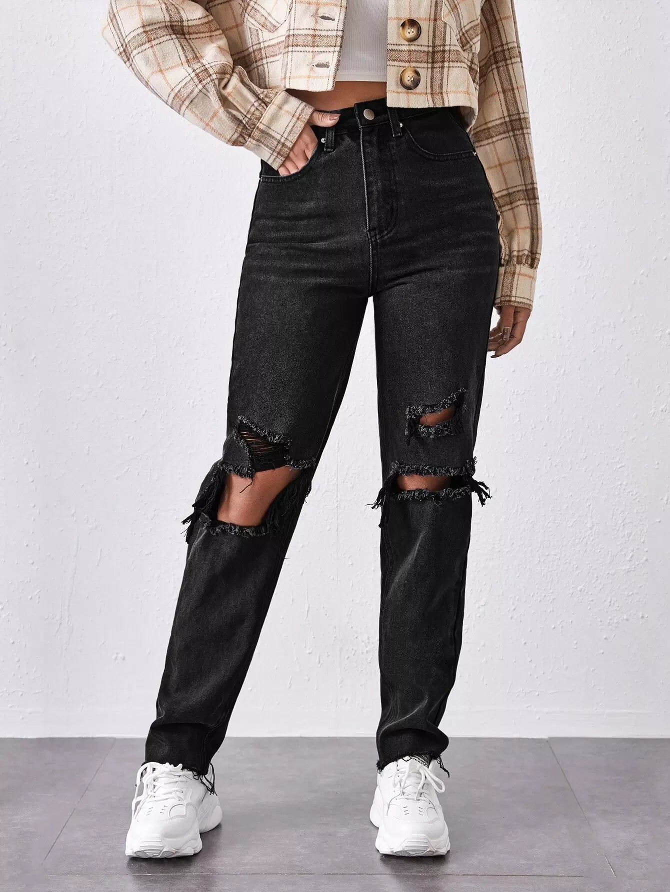 High-Waisted Ripped Mom Jeans
