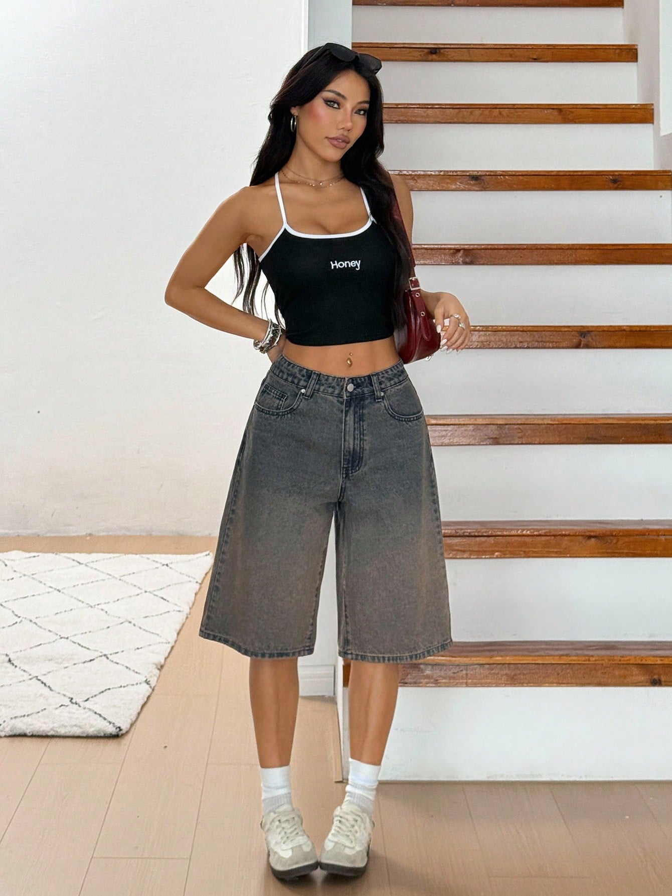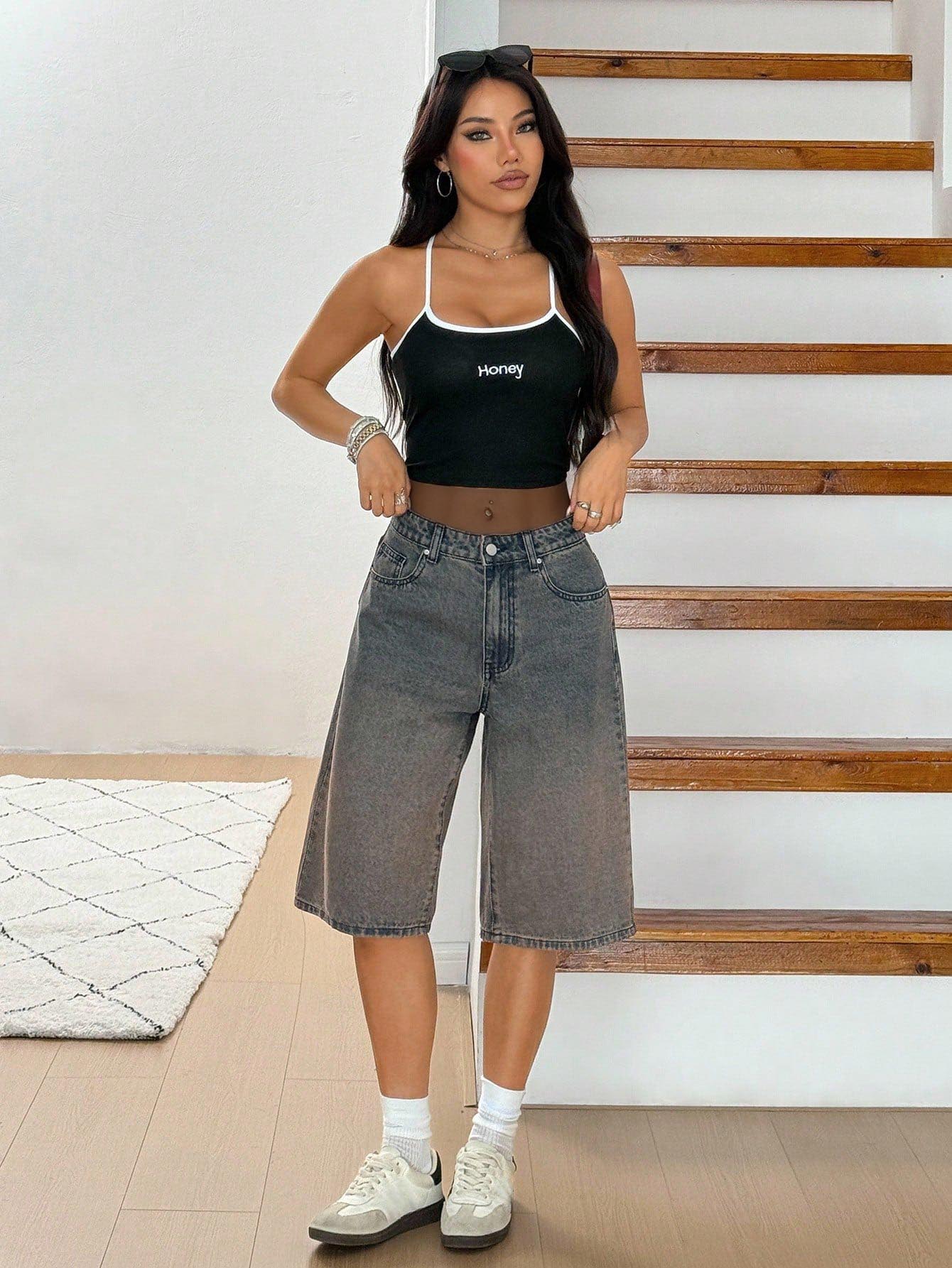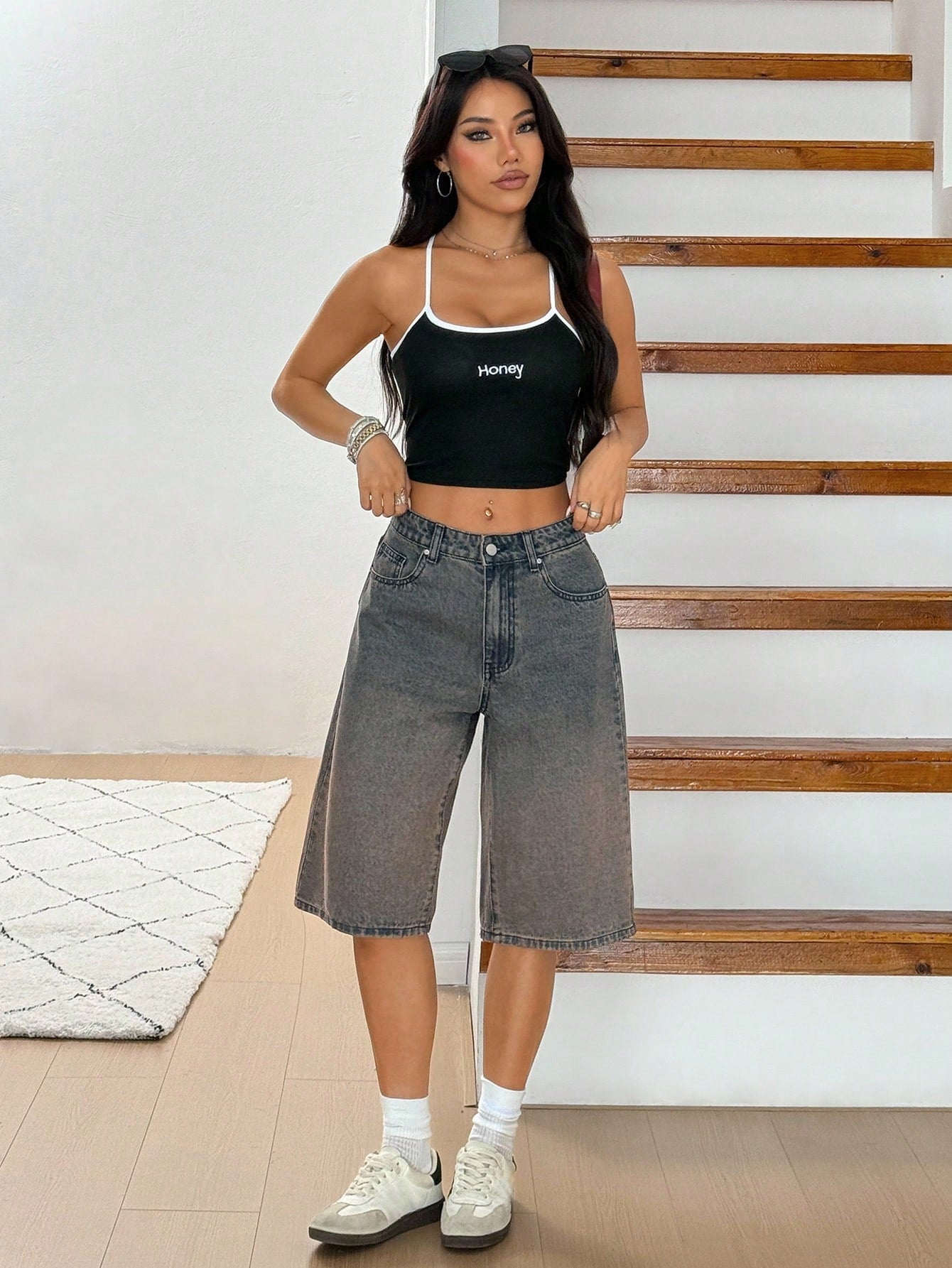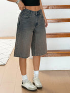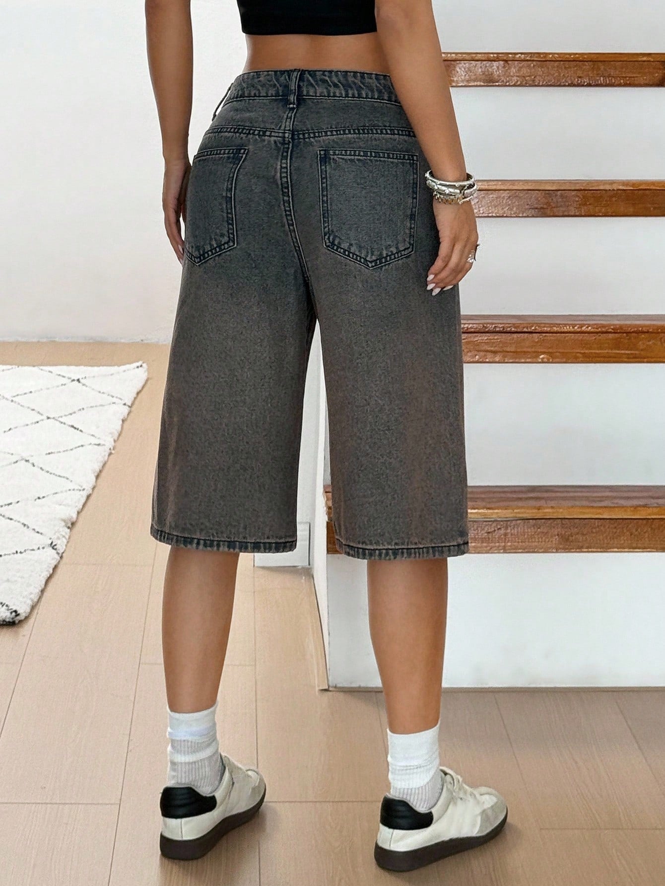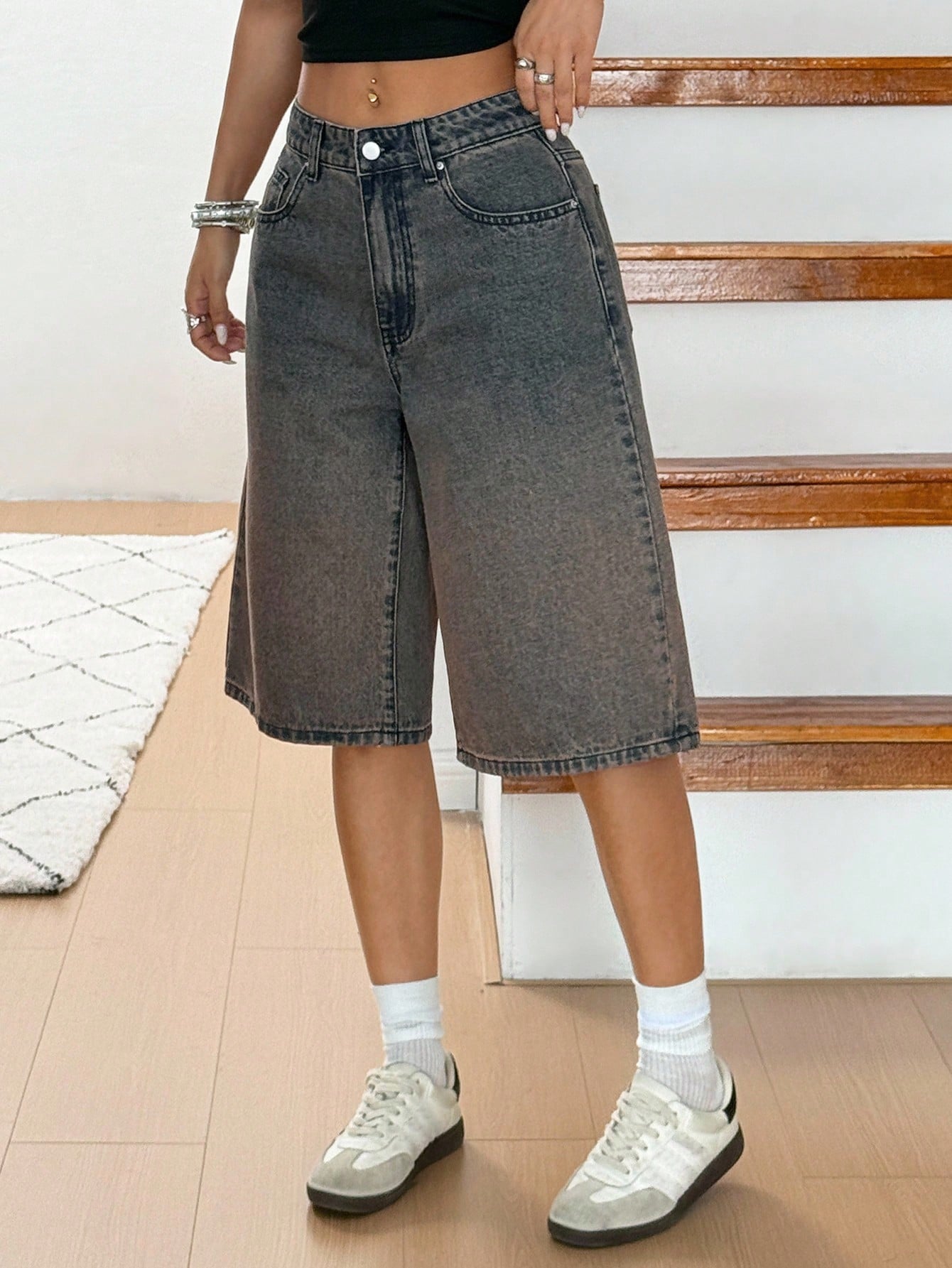 ICON Women's Loose Fit Pocket Decor Wide Leg Casual 5-Point Denim Shorts