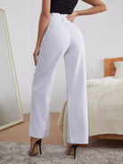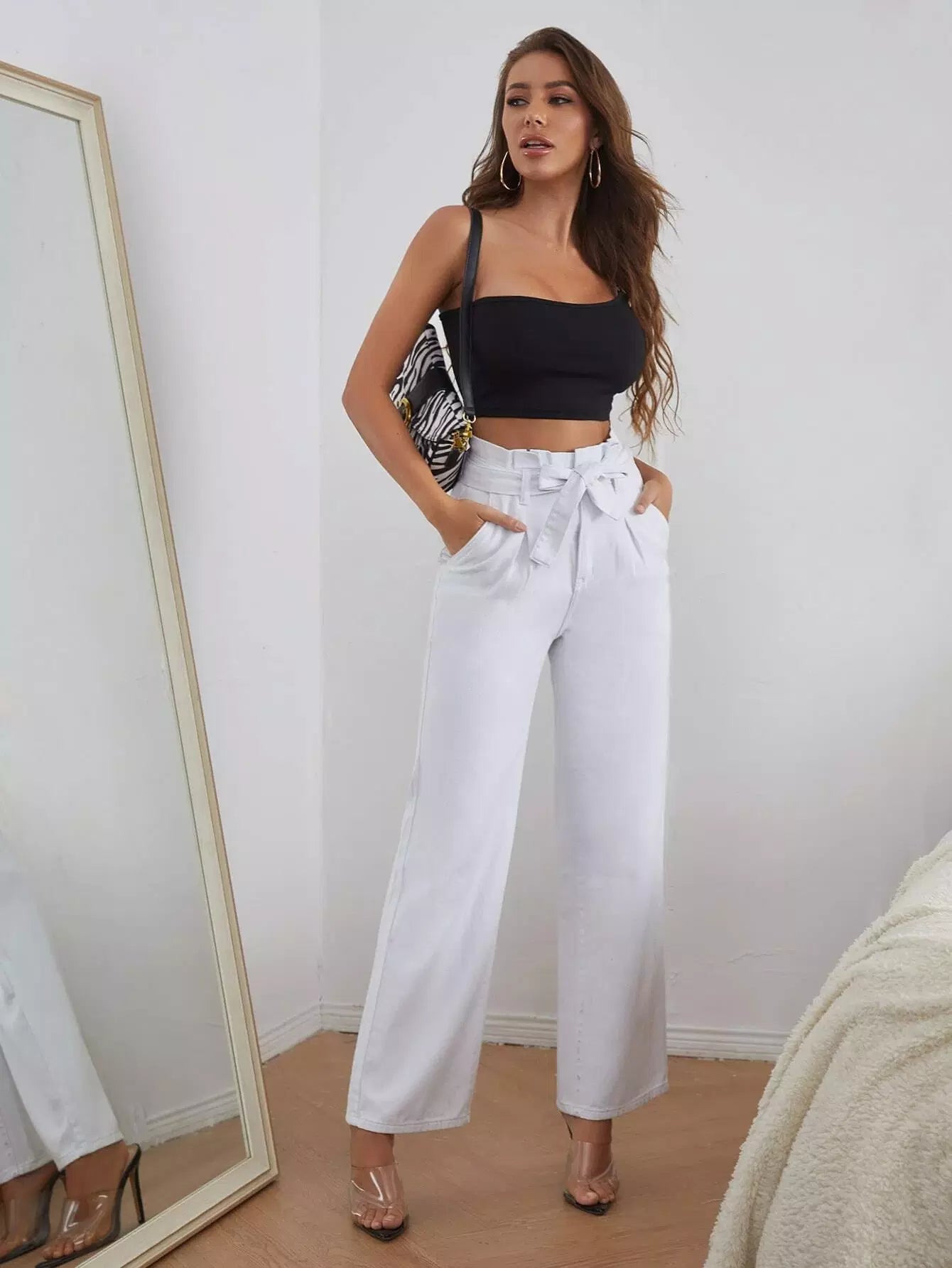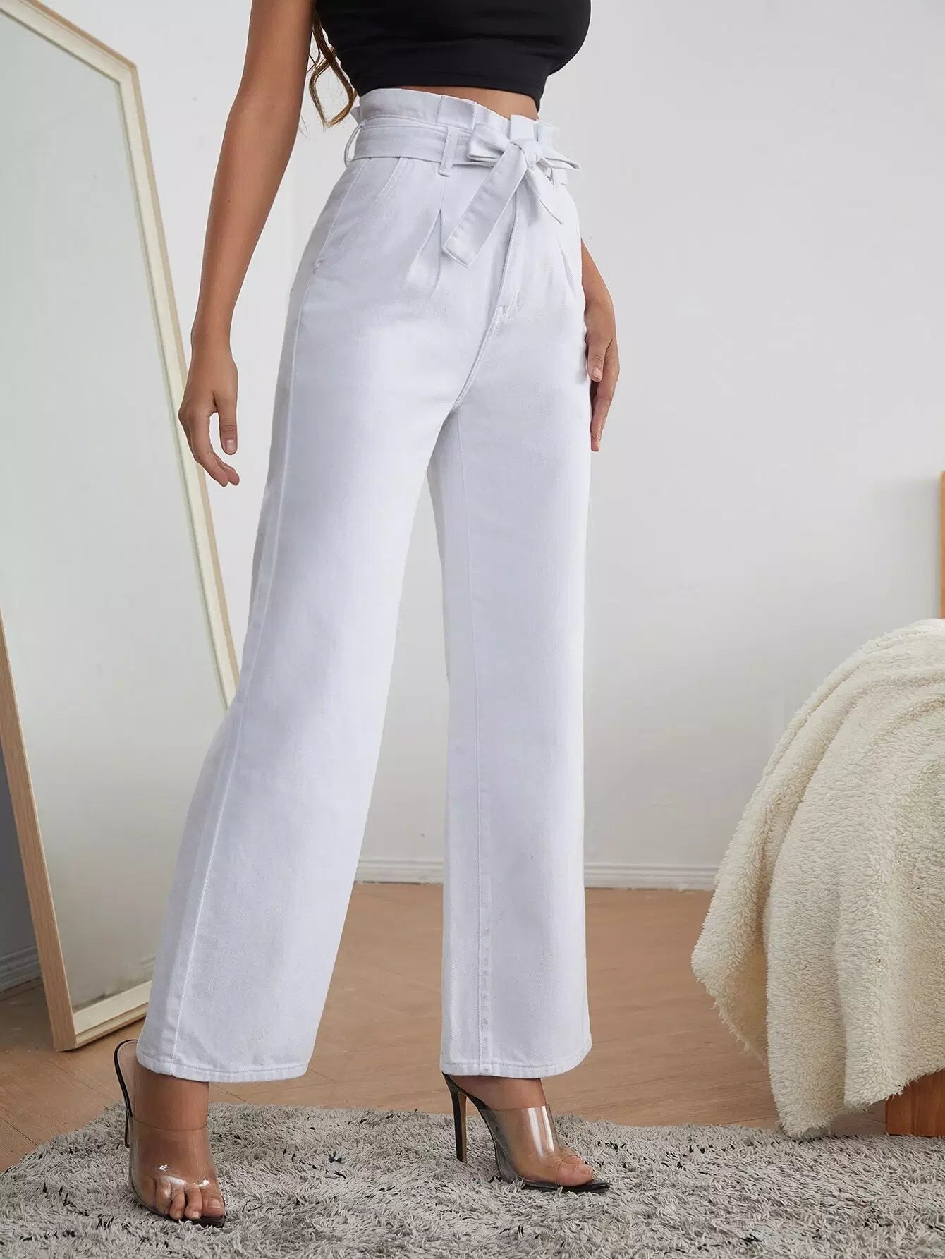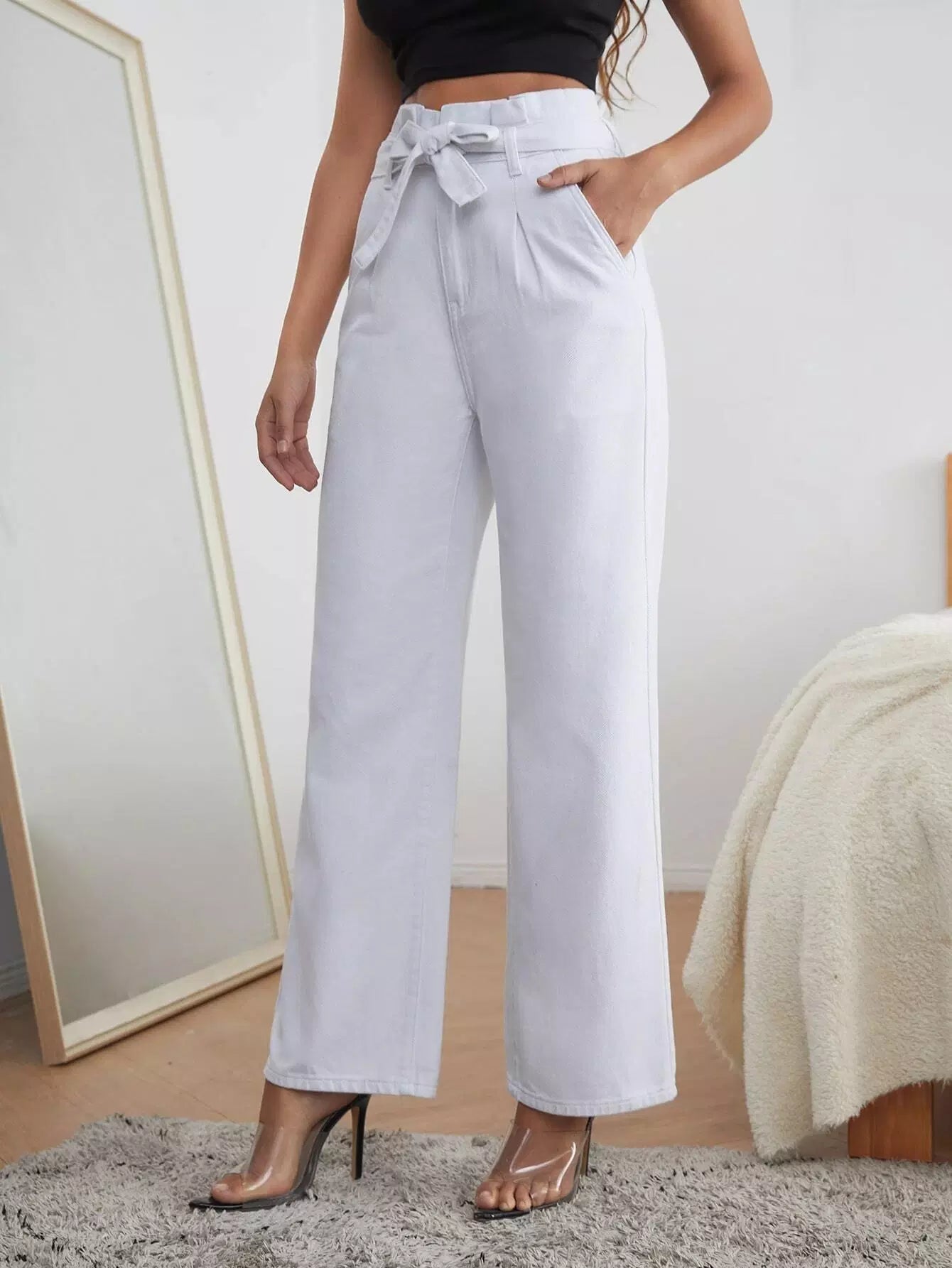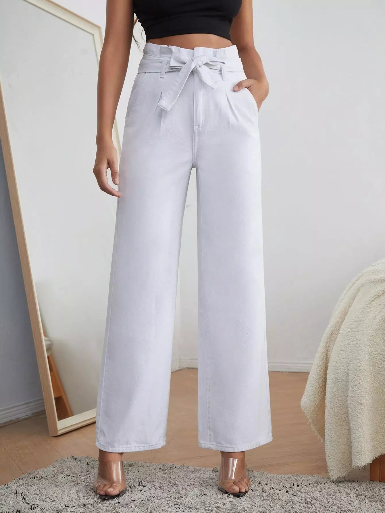 Paperbag Waist Self Wide Leg Jeans Without Belt