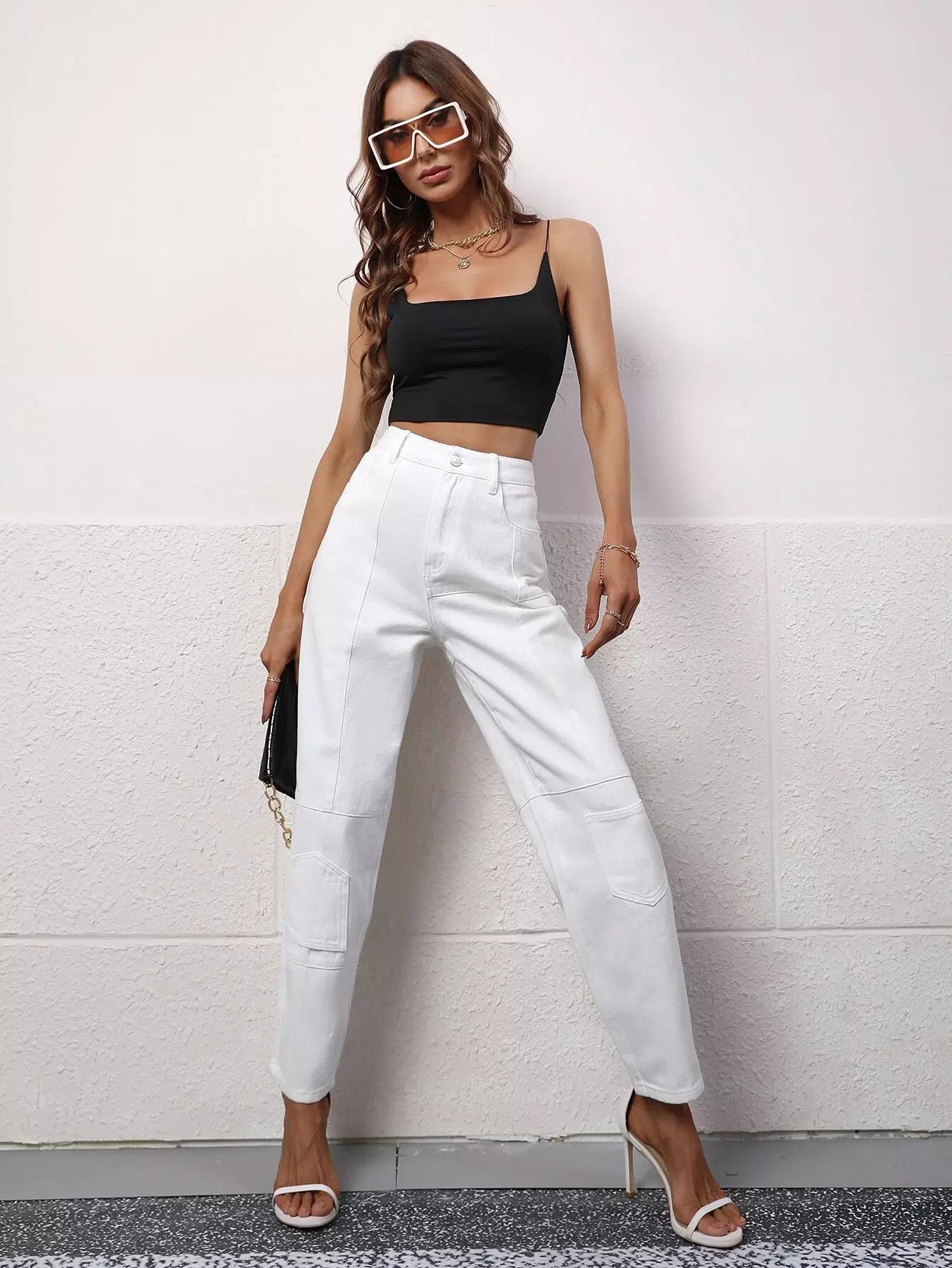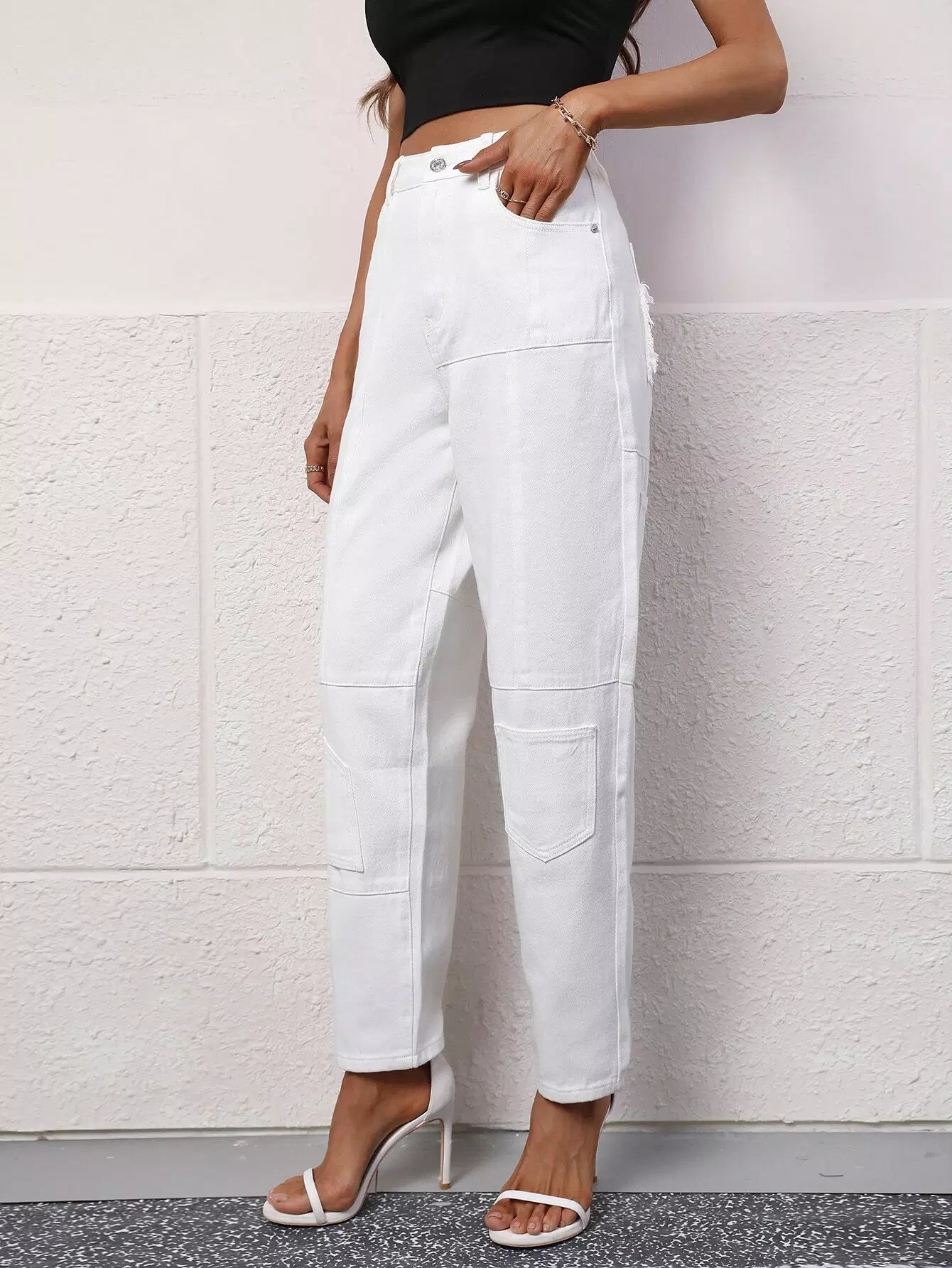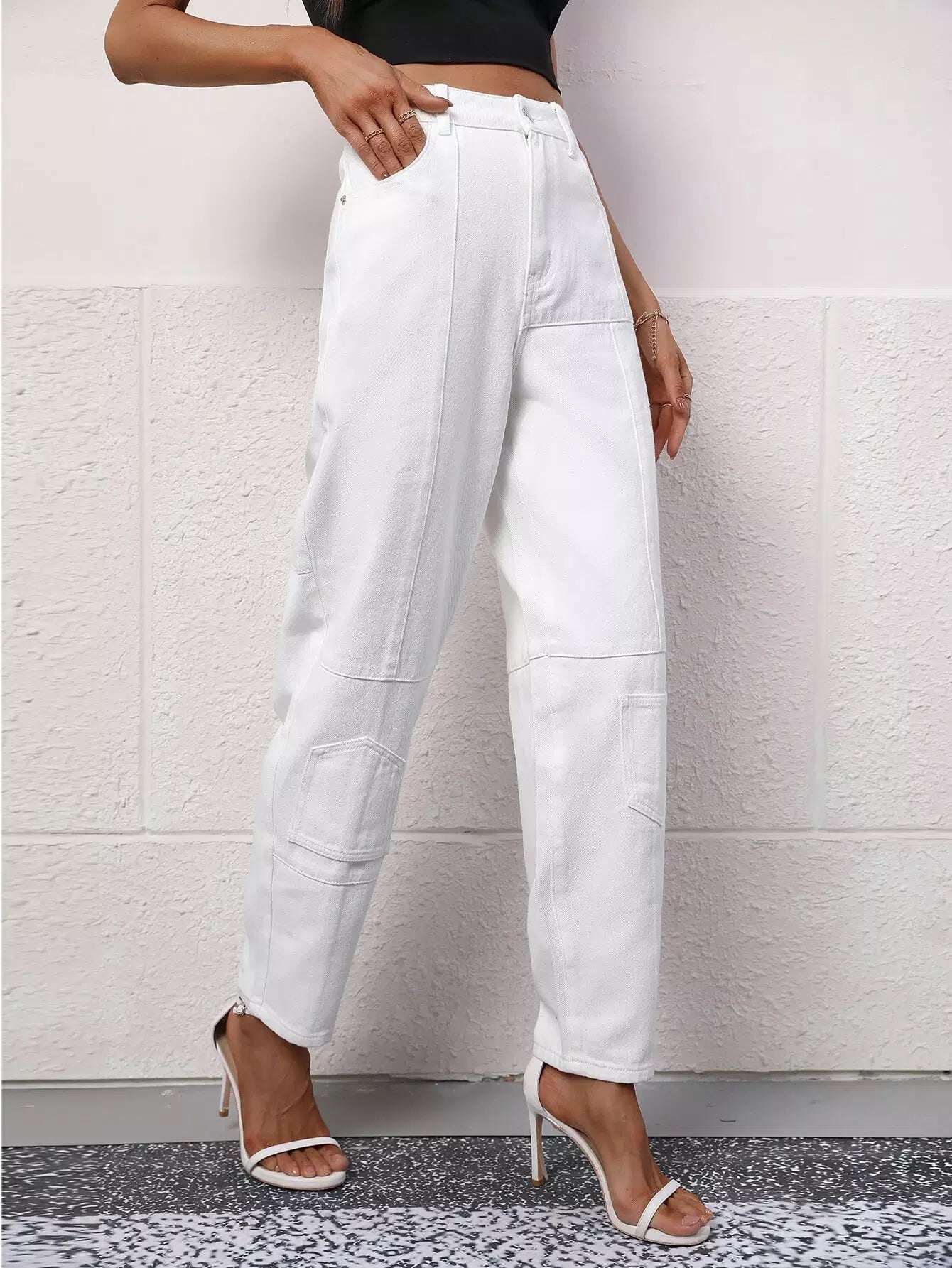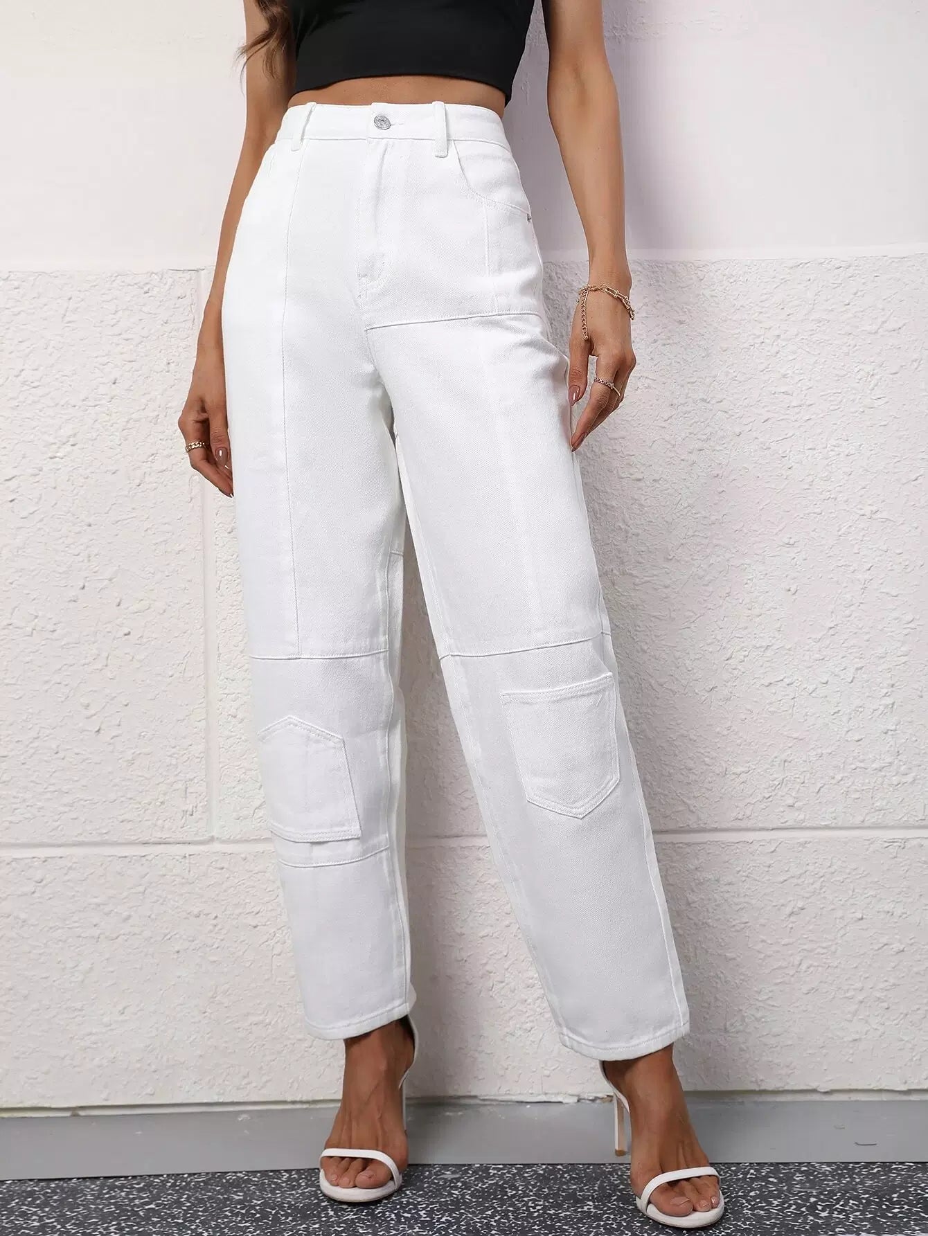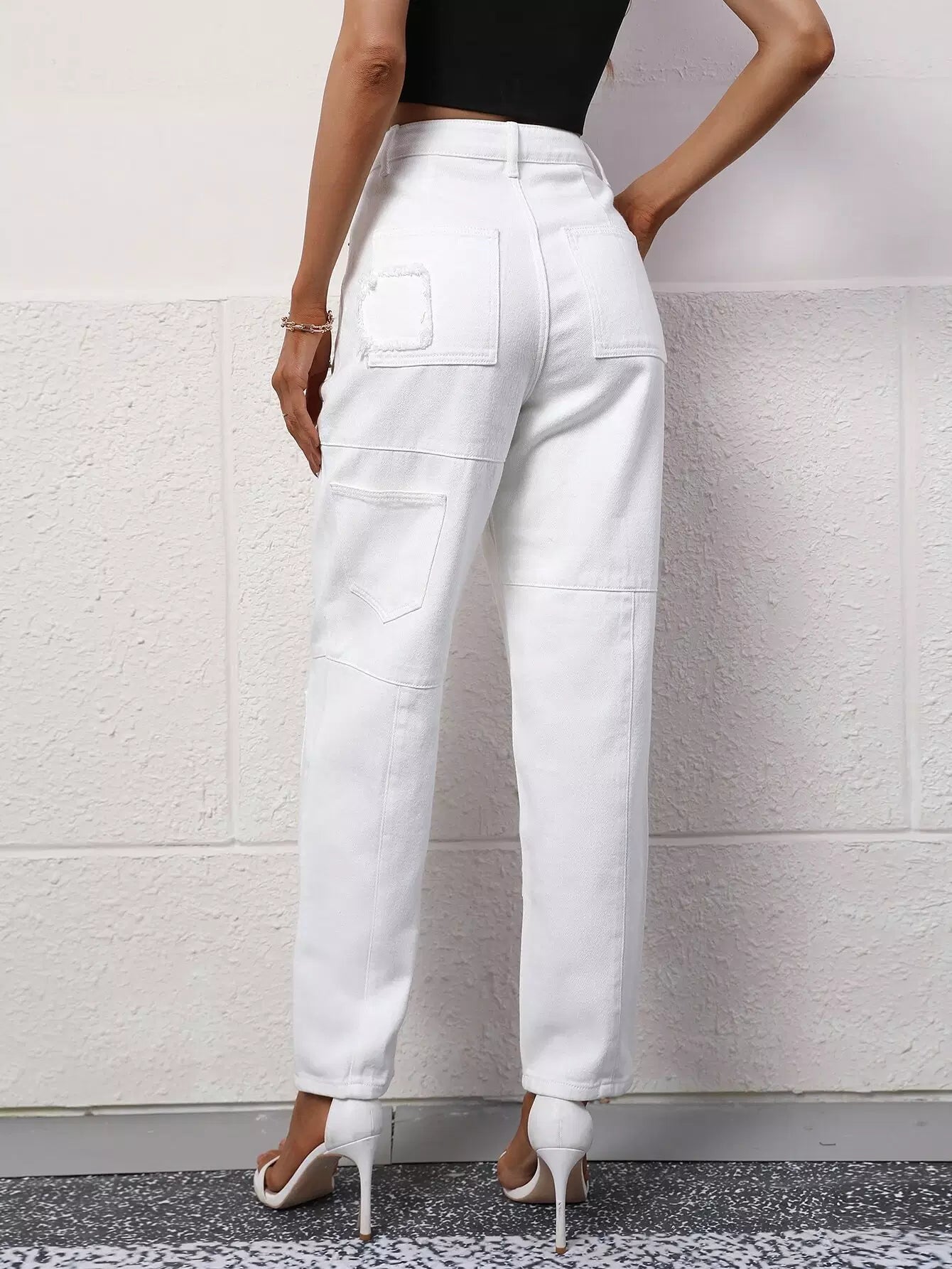 Patch Pocket High Waist Jeans