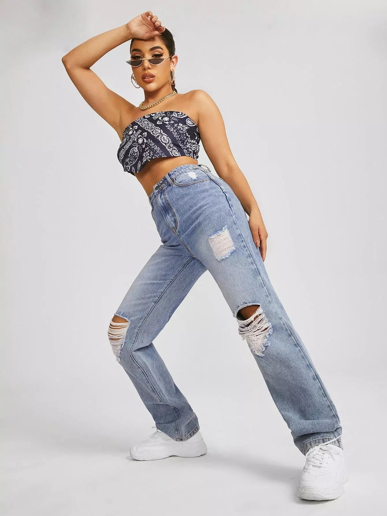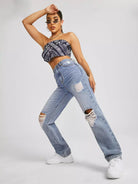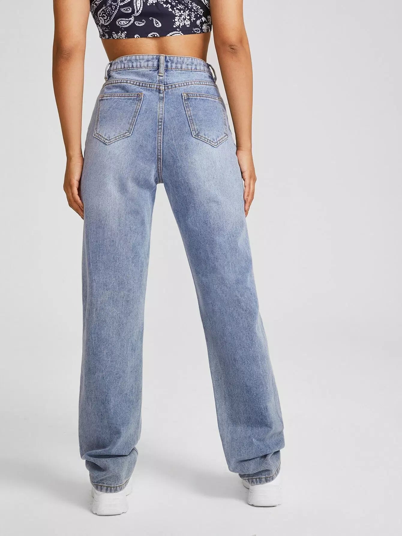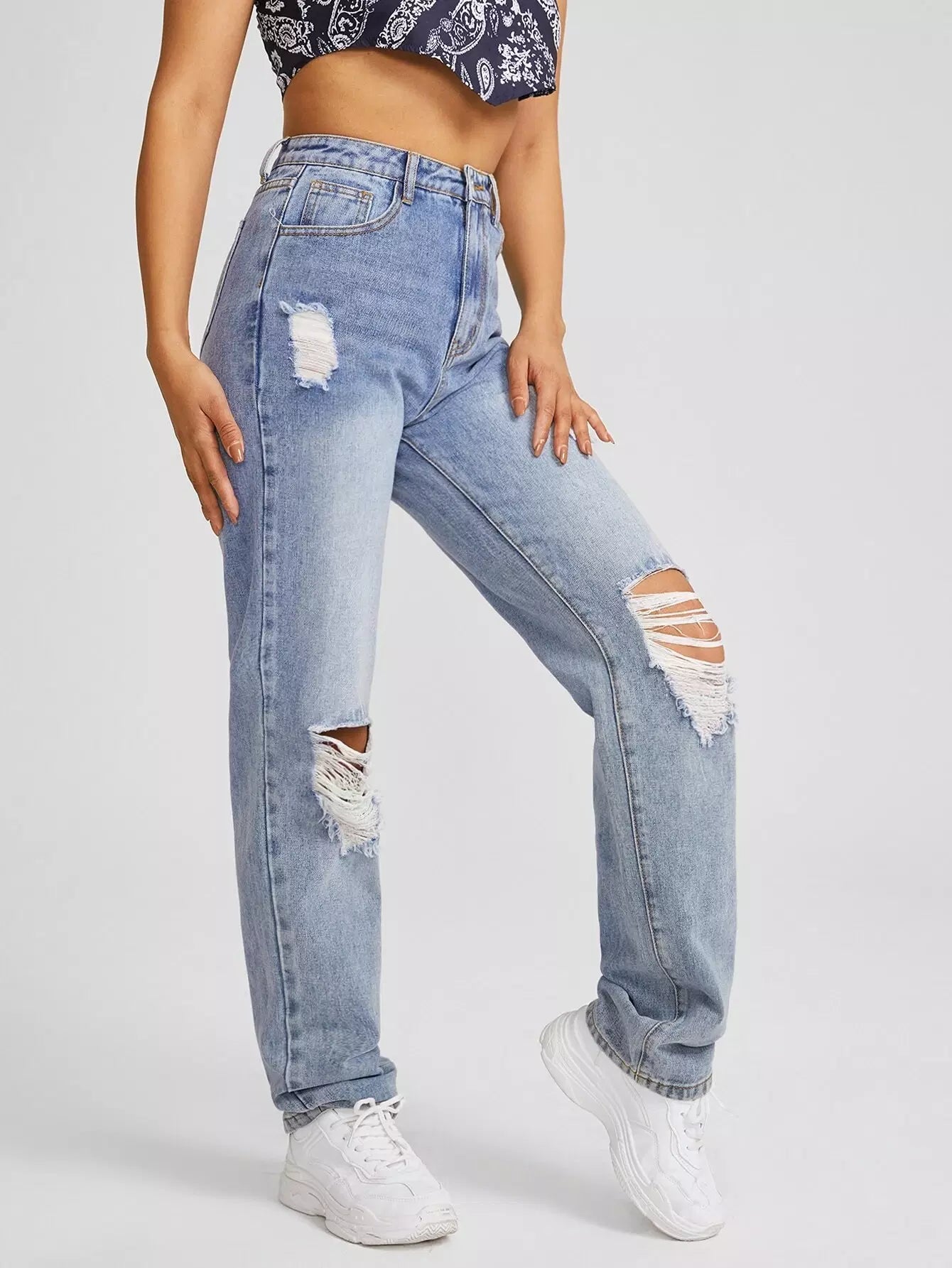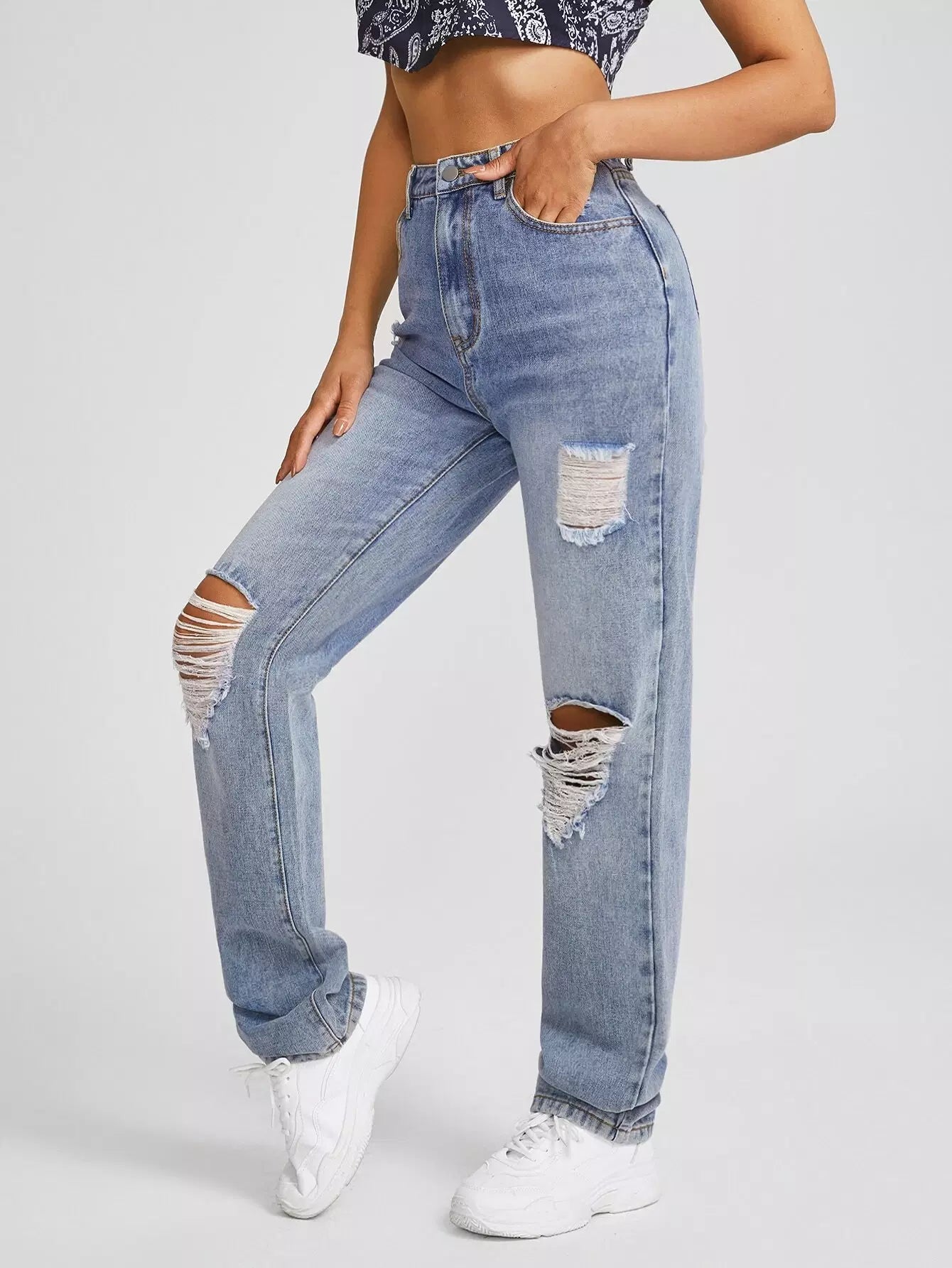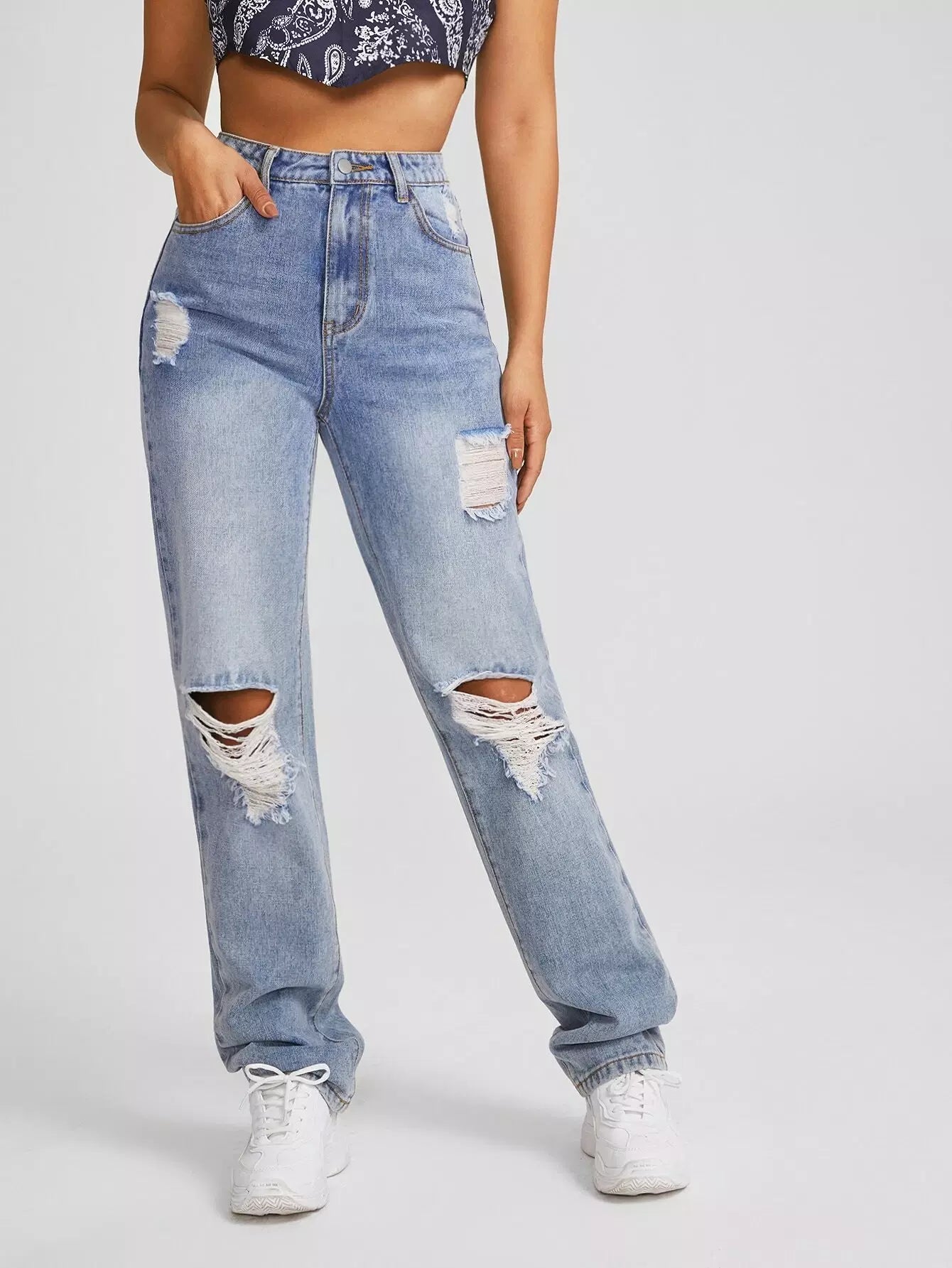 Slant Pocket Ripped Straight Jeans