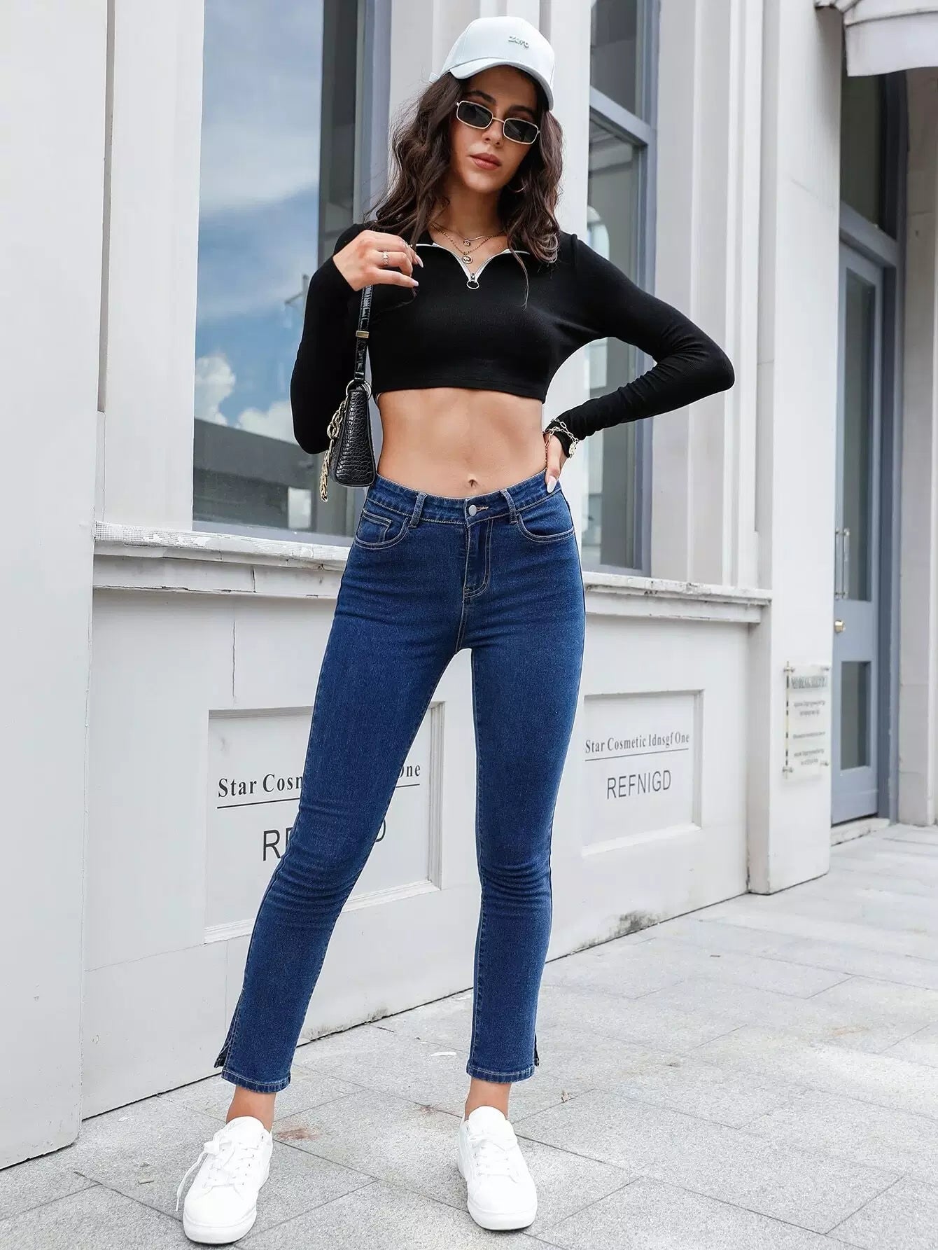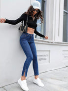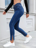 Slant Pocket Split Hem Jeans