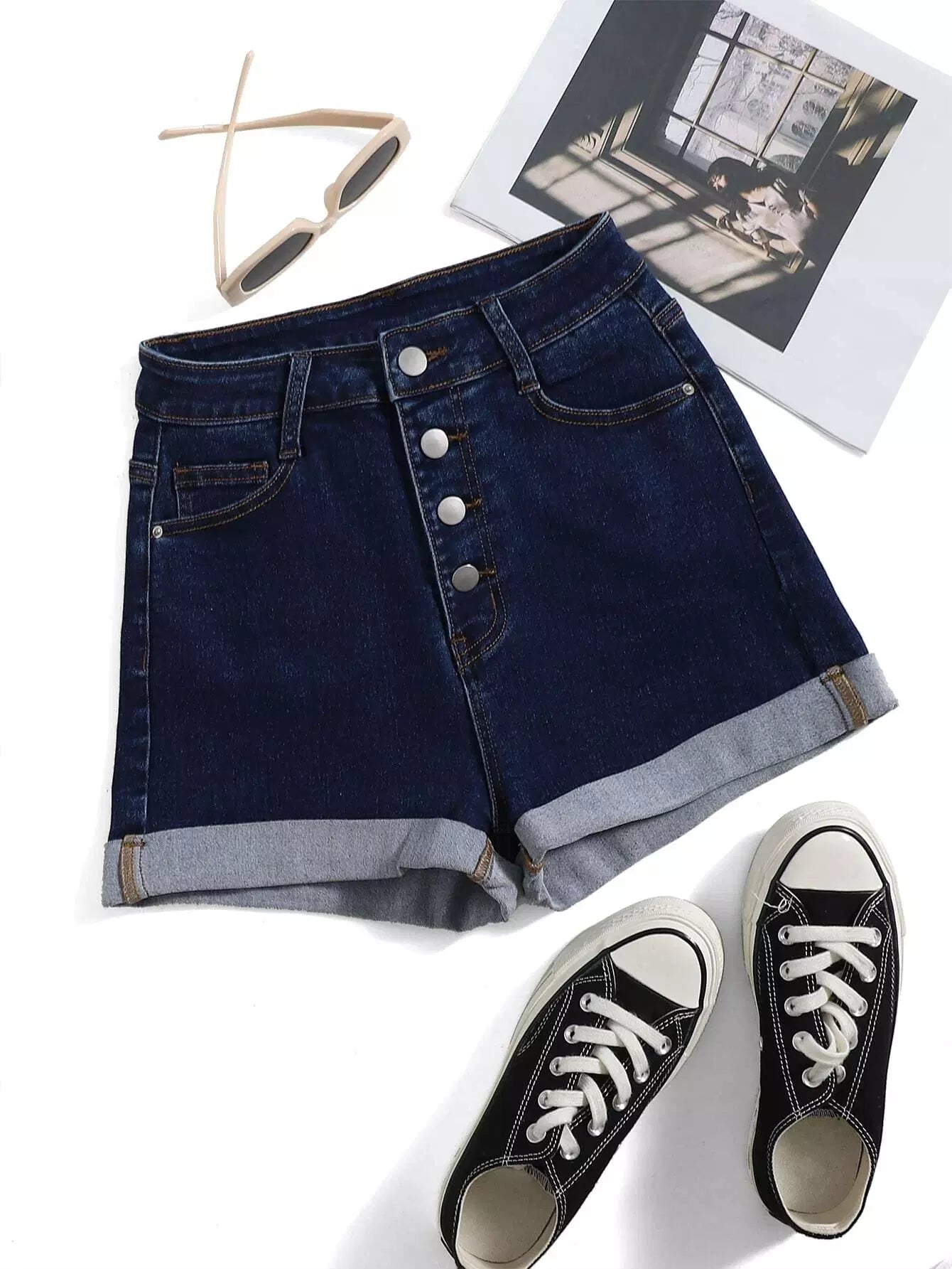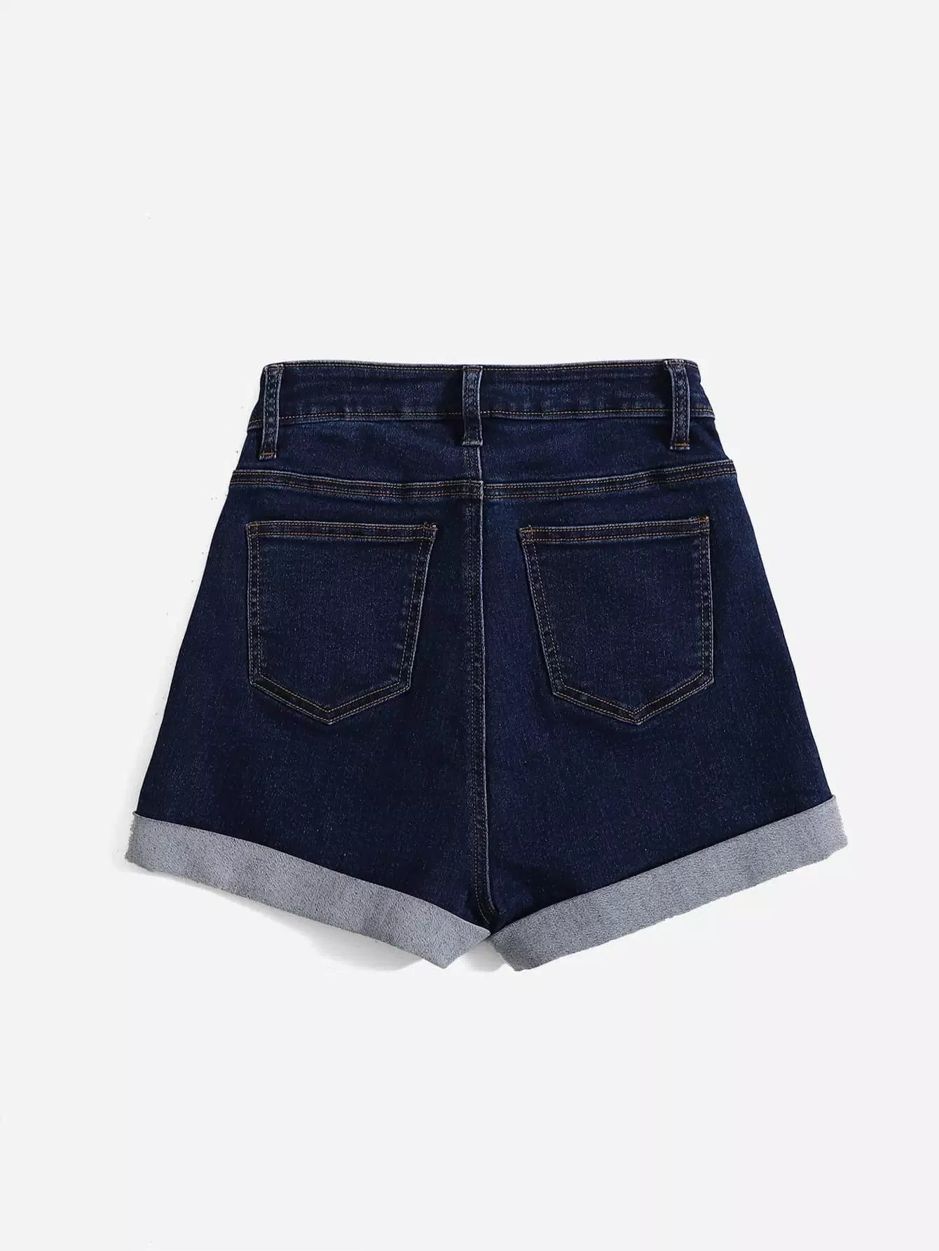 Black Wash Button Fly Denim Shorts