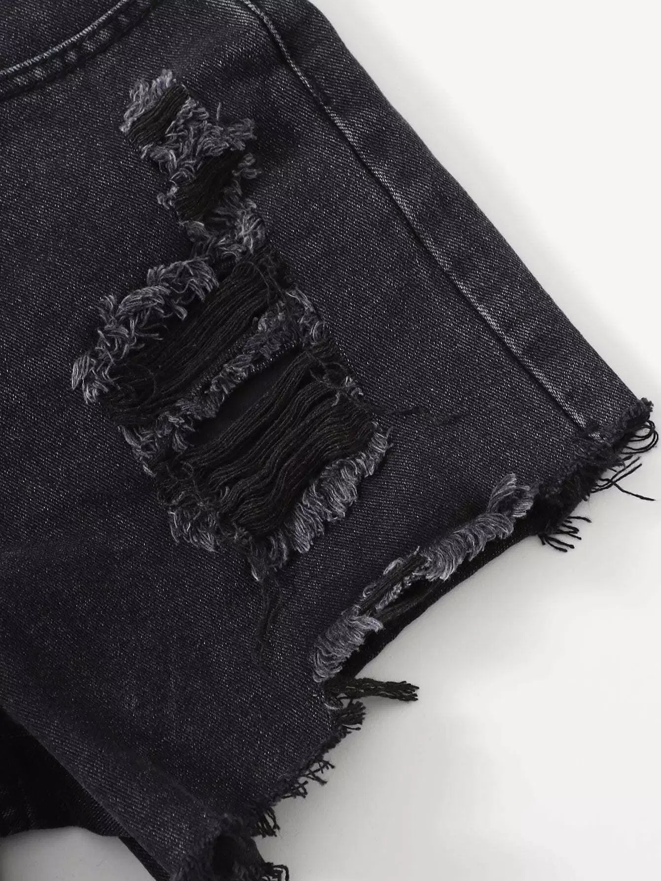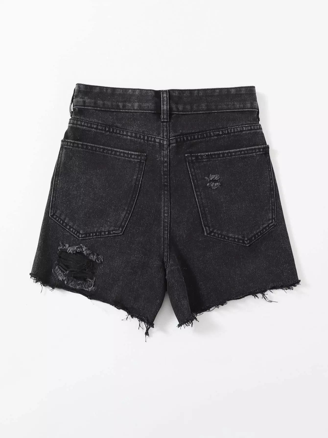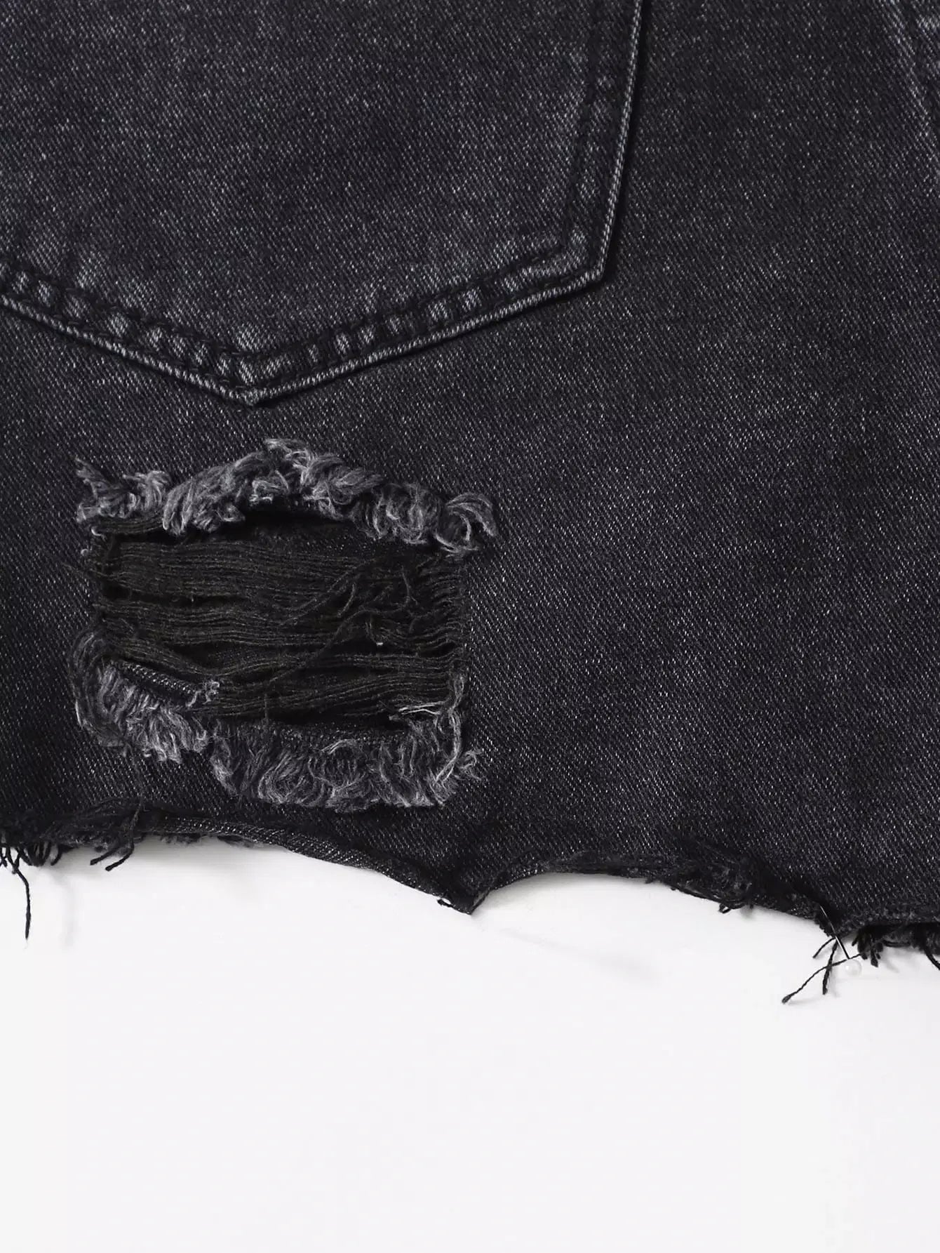 Buttoned Front Ripped Raw Hem Denim Shorts