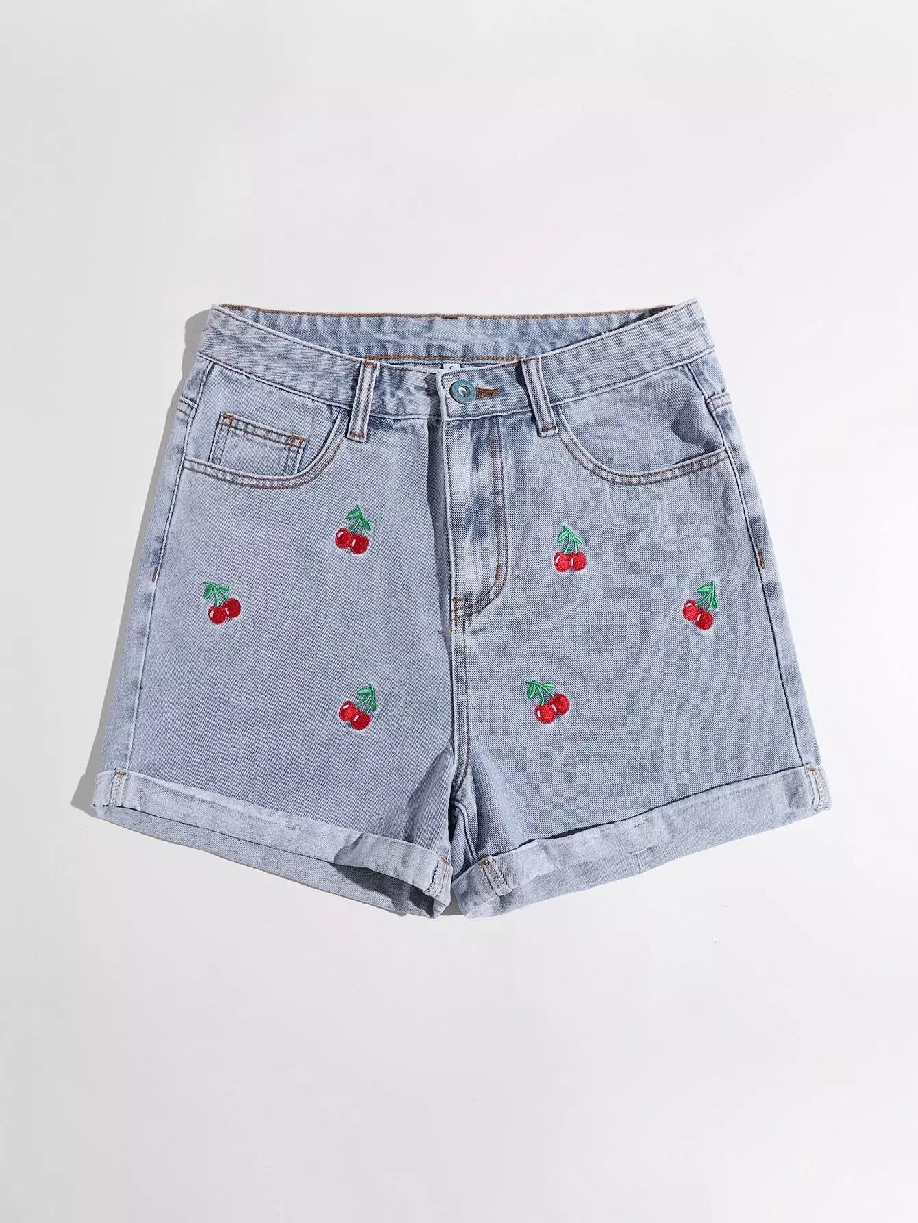 Cherry Embroidery Denim Shorts