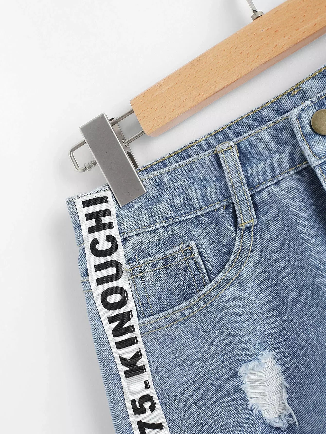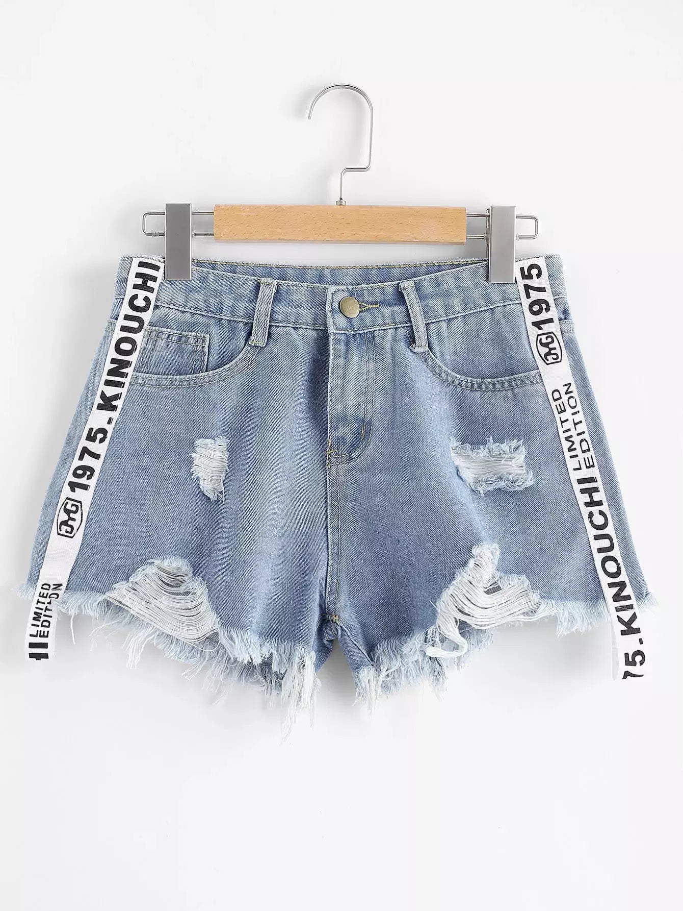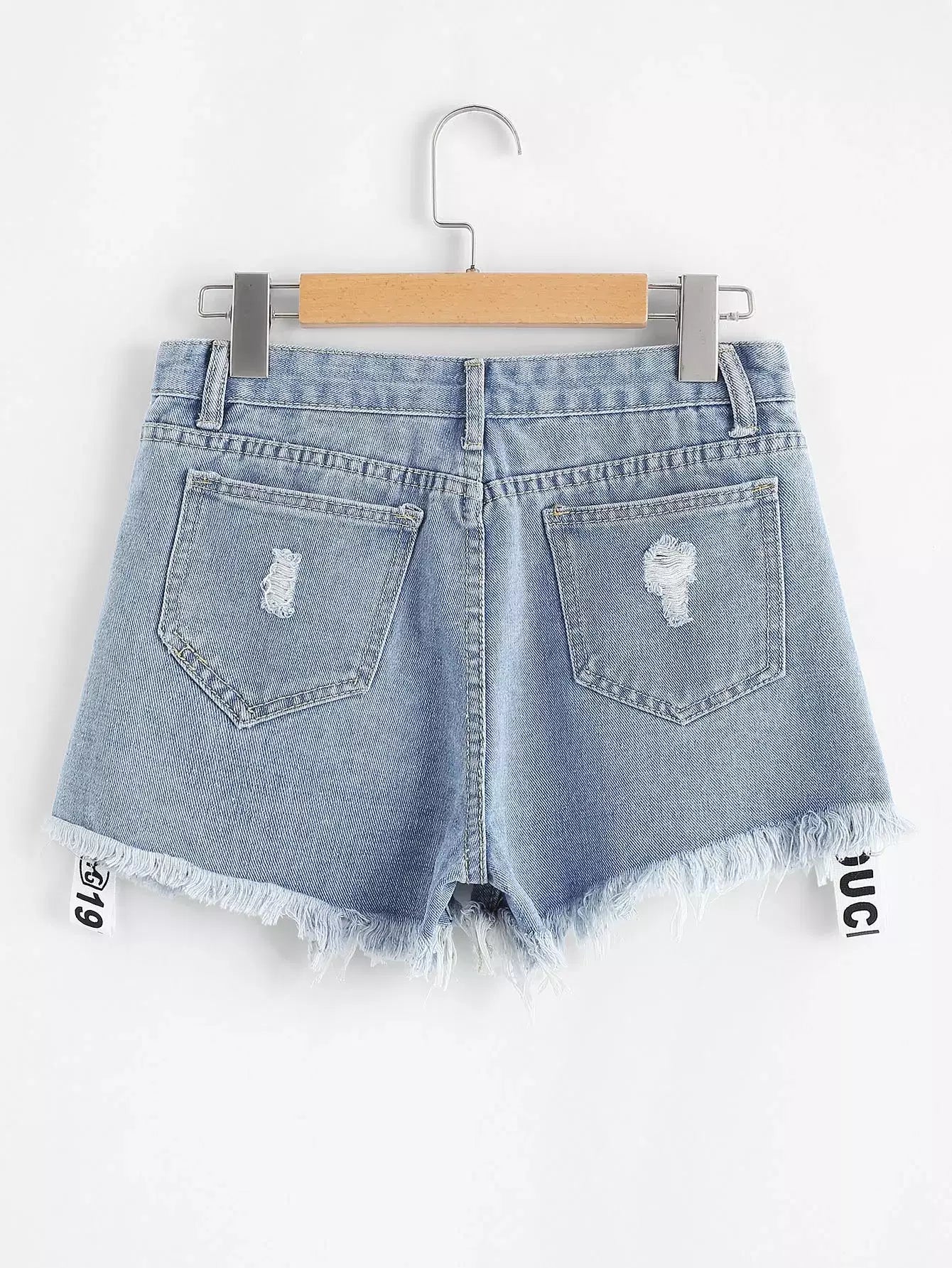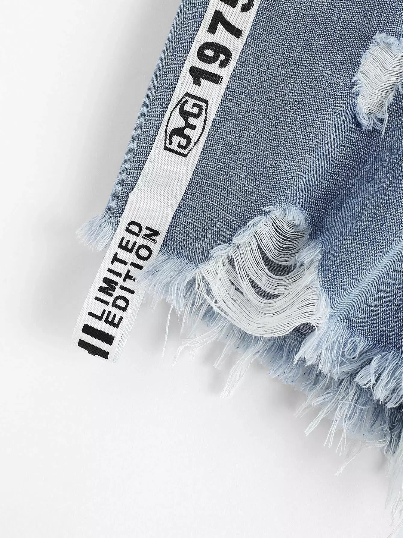 Distressed Letter Print Denim Shorts