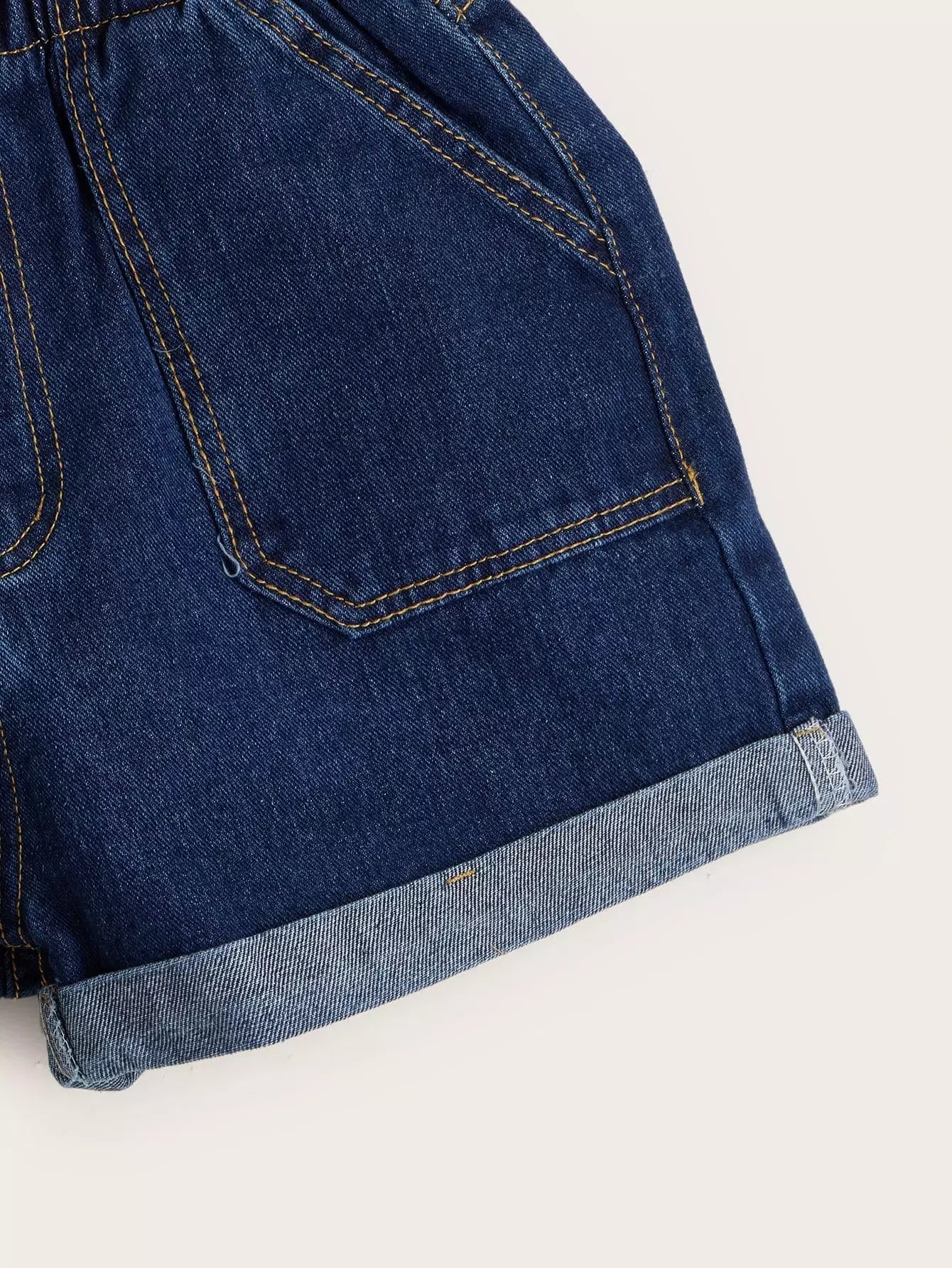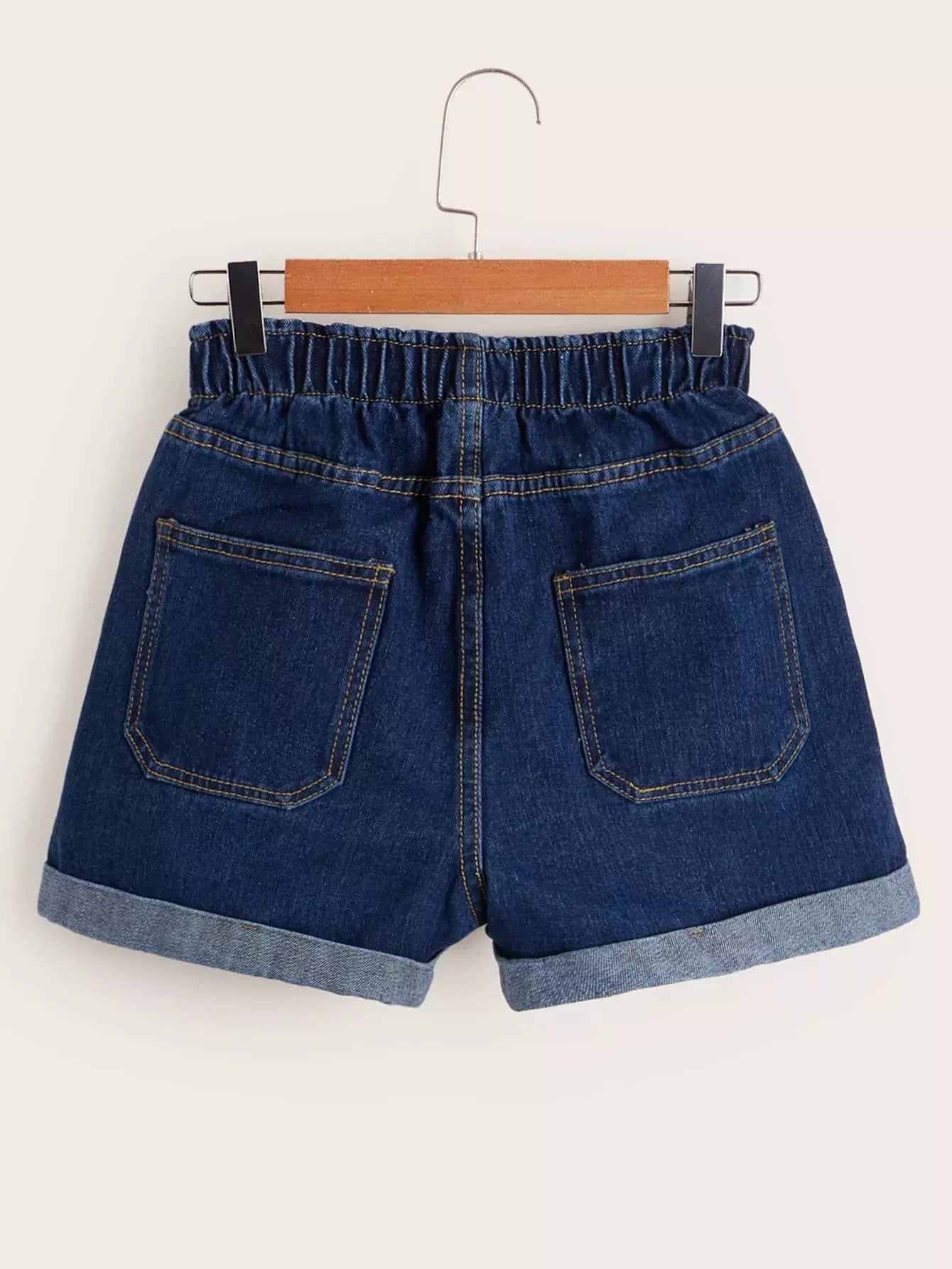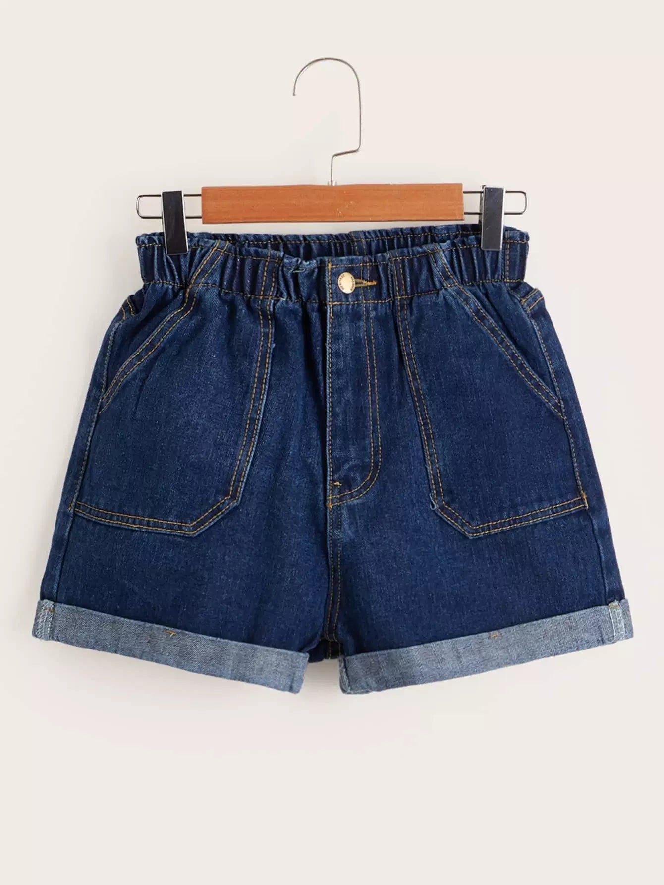 Elasticized High-Rise Denim Shorts