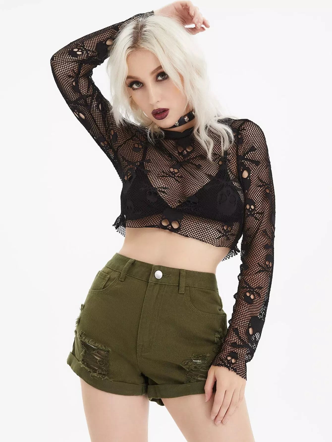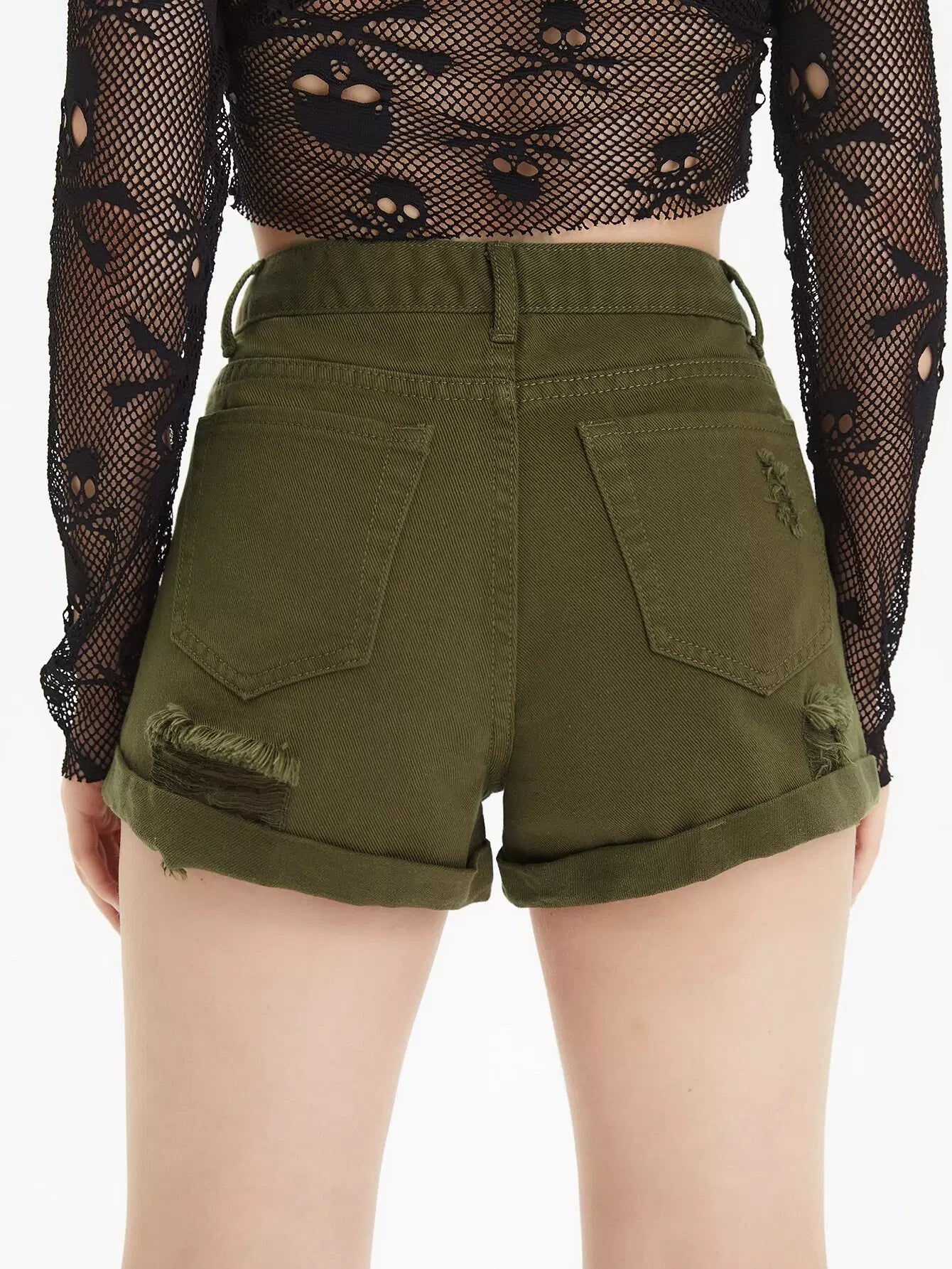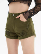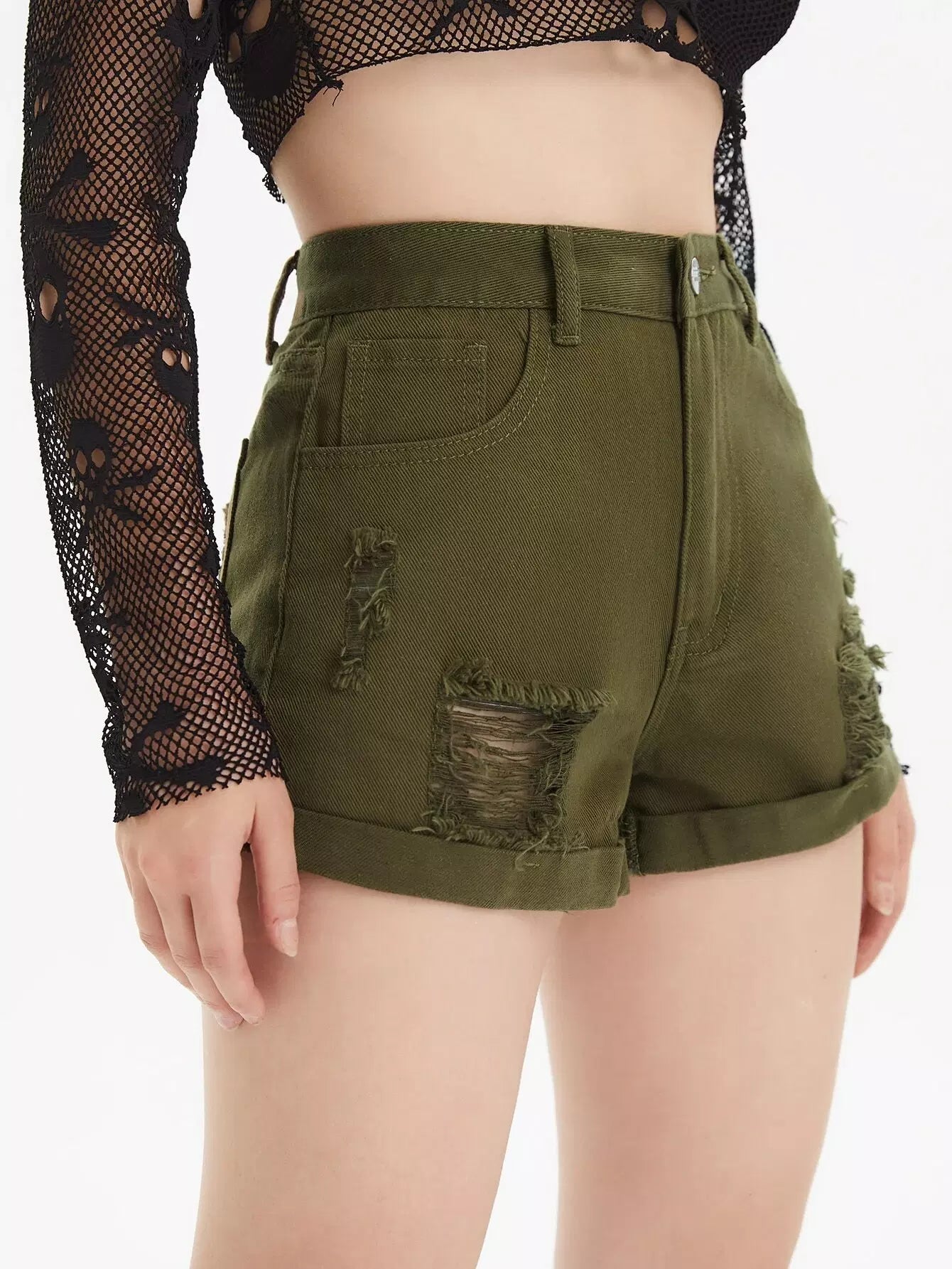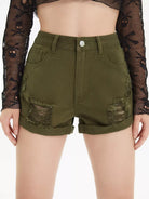 Flakes Ripped Rolled Hem Denim Shorts