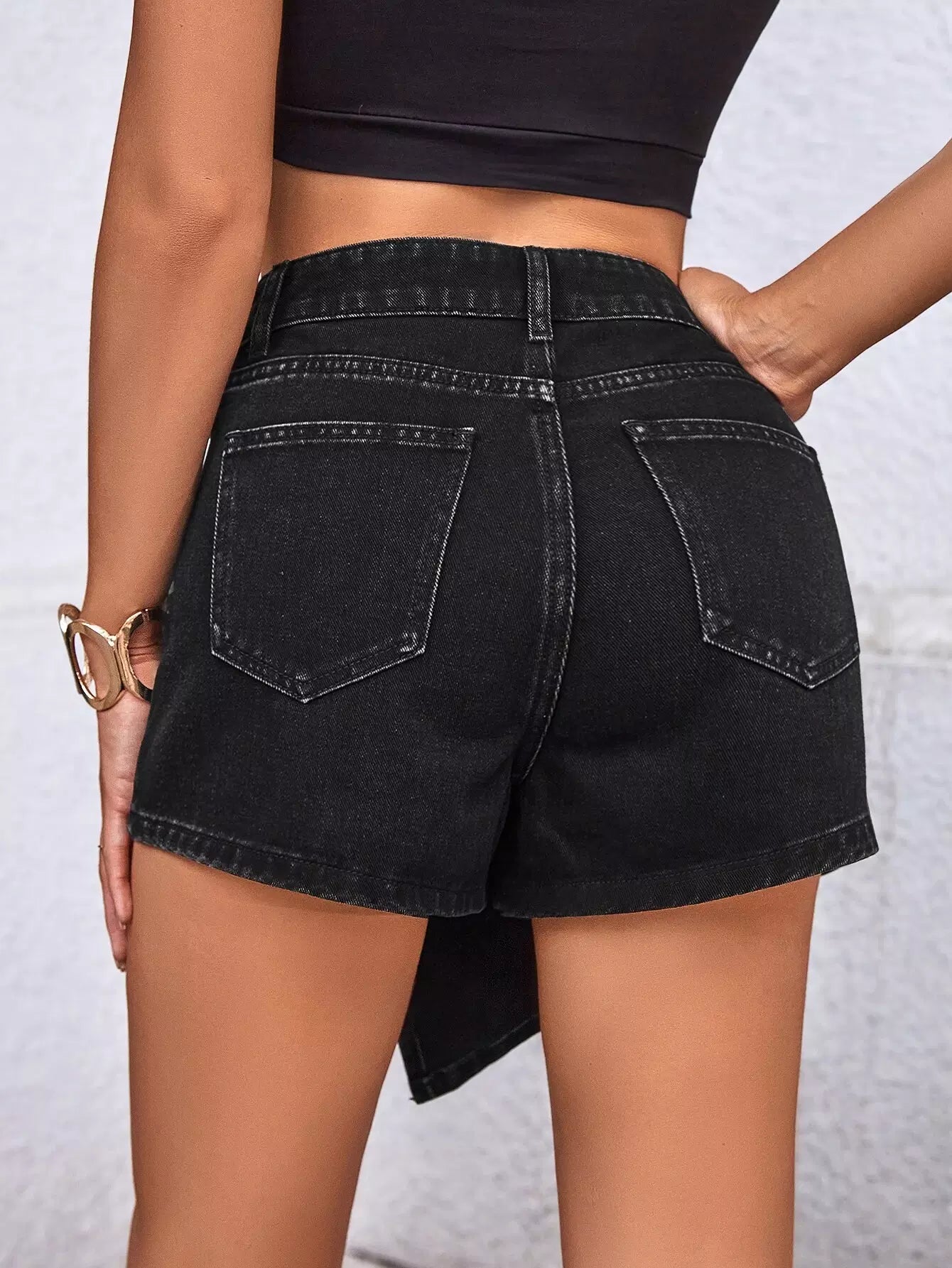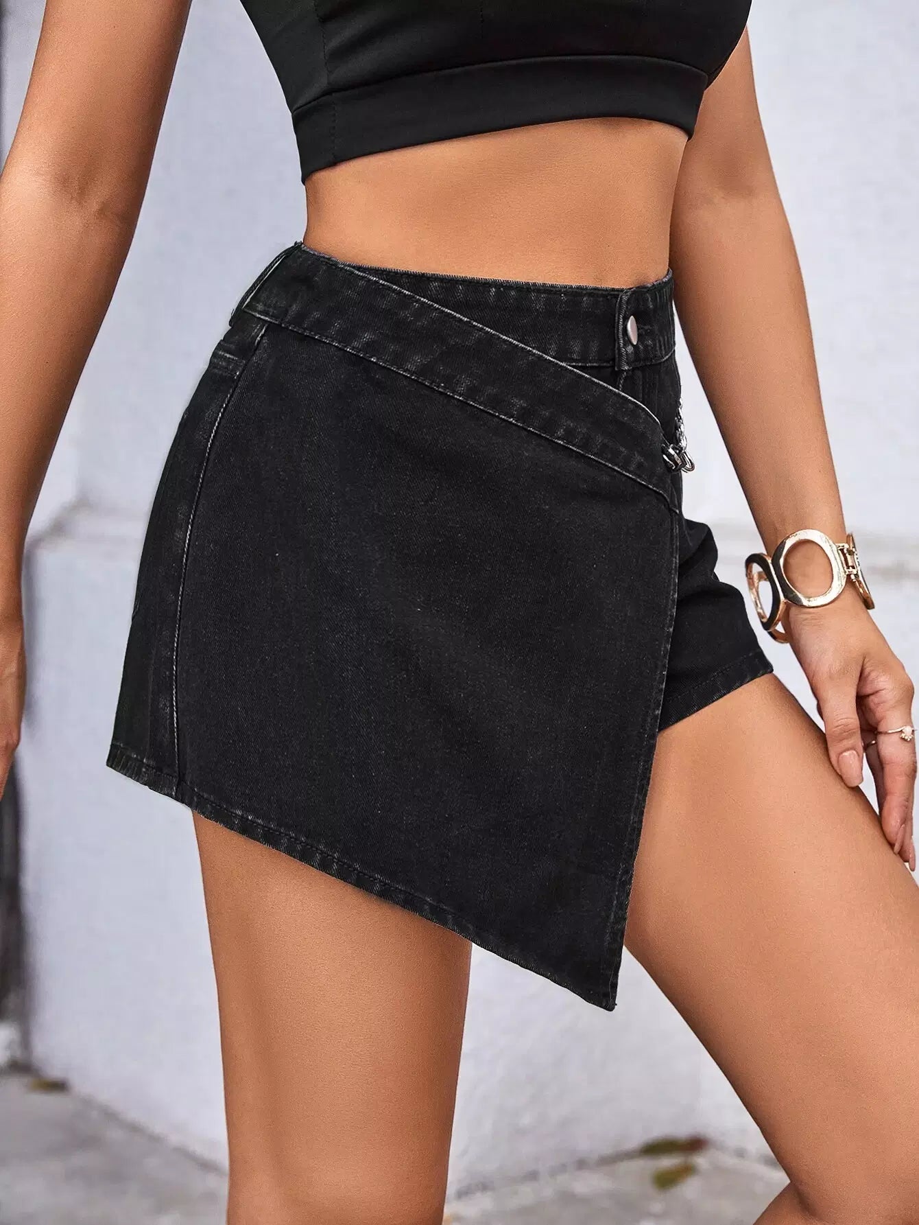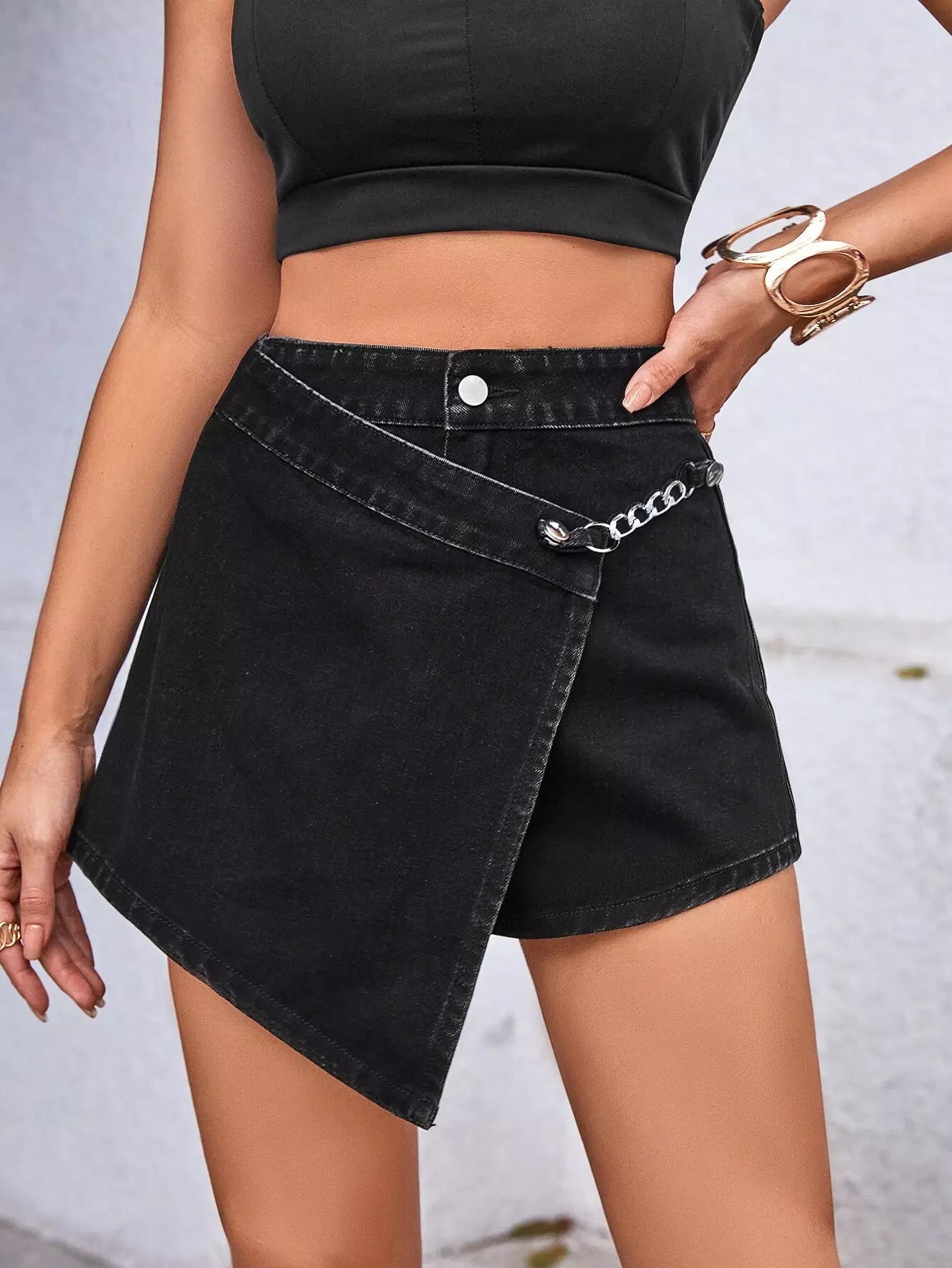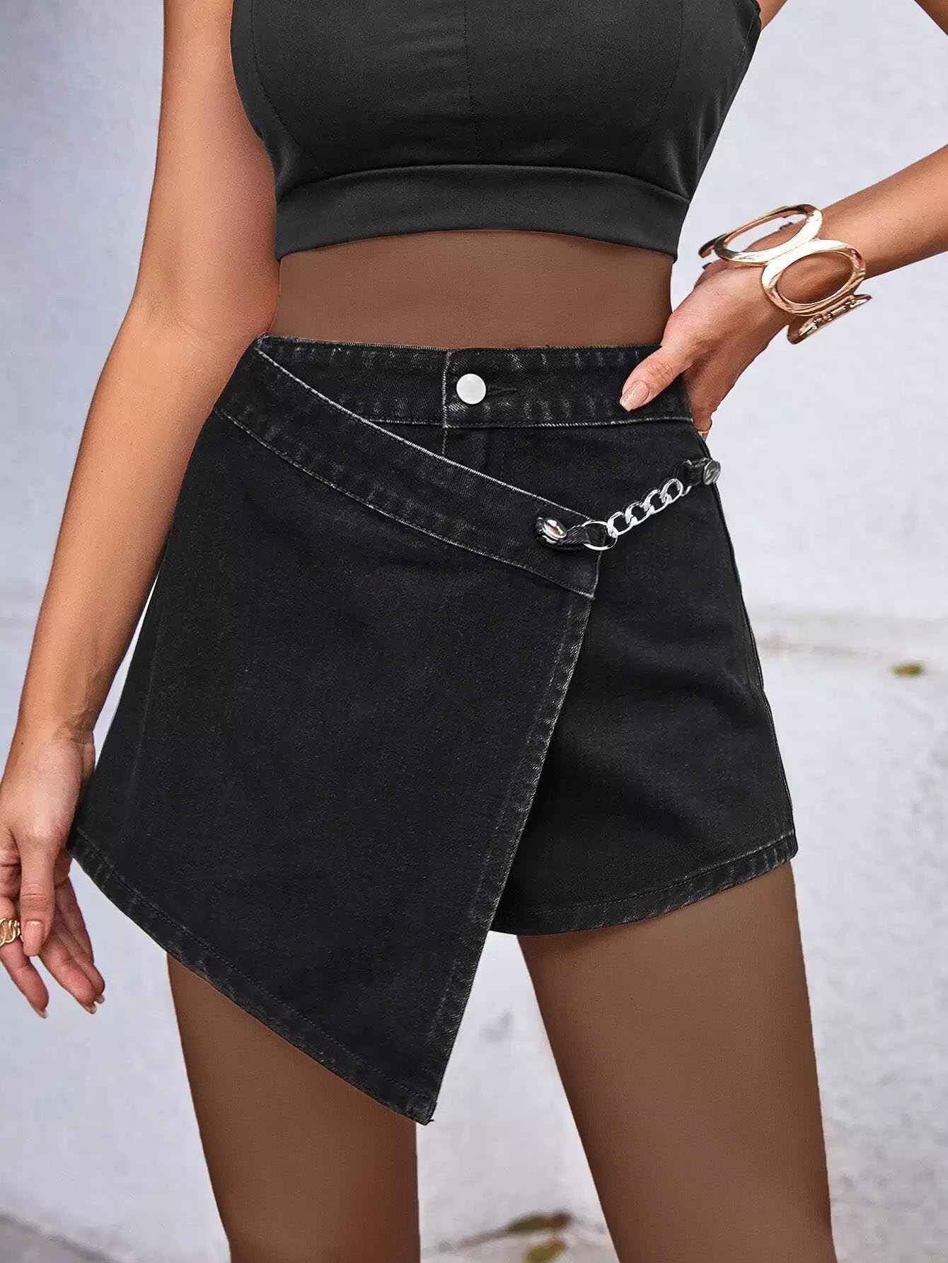 High Waist Chain Detail Denim Skort