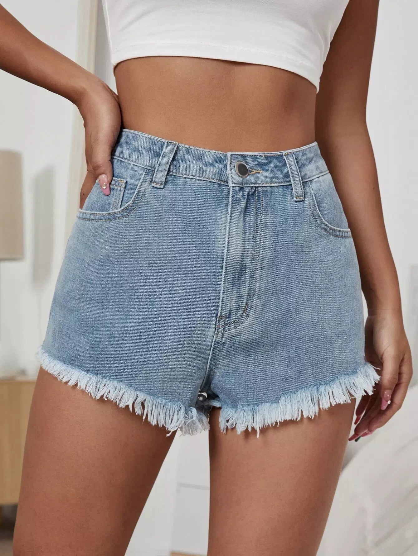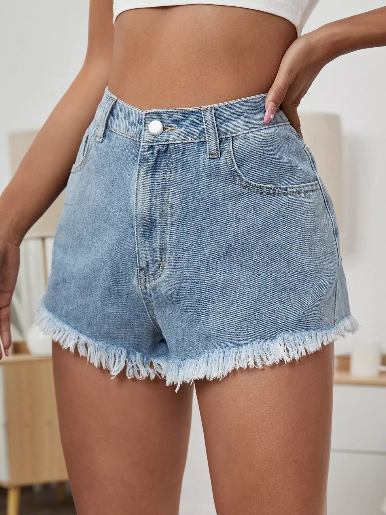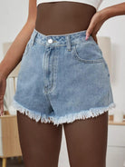 High Waist Raw Hem Denim Shorts