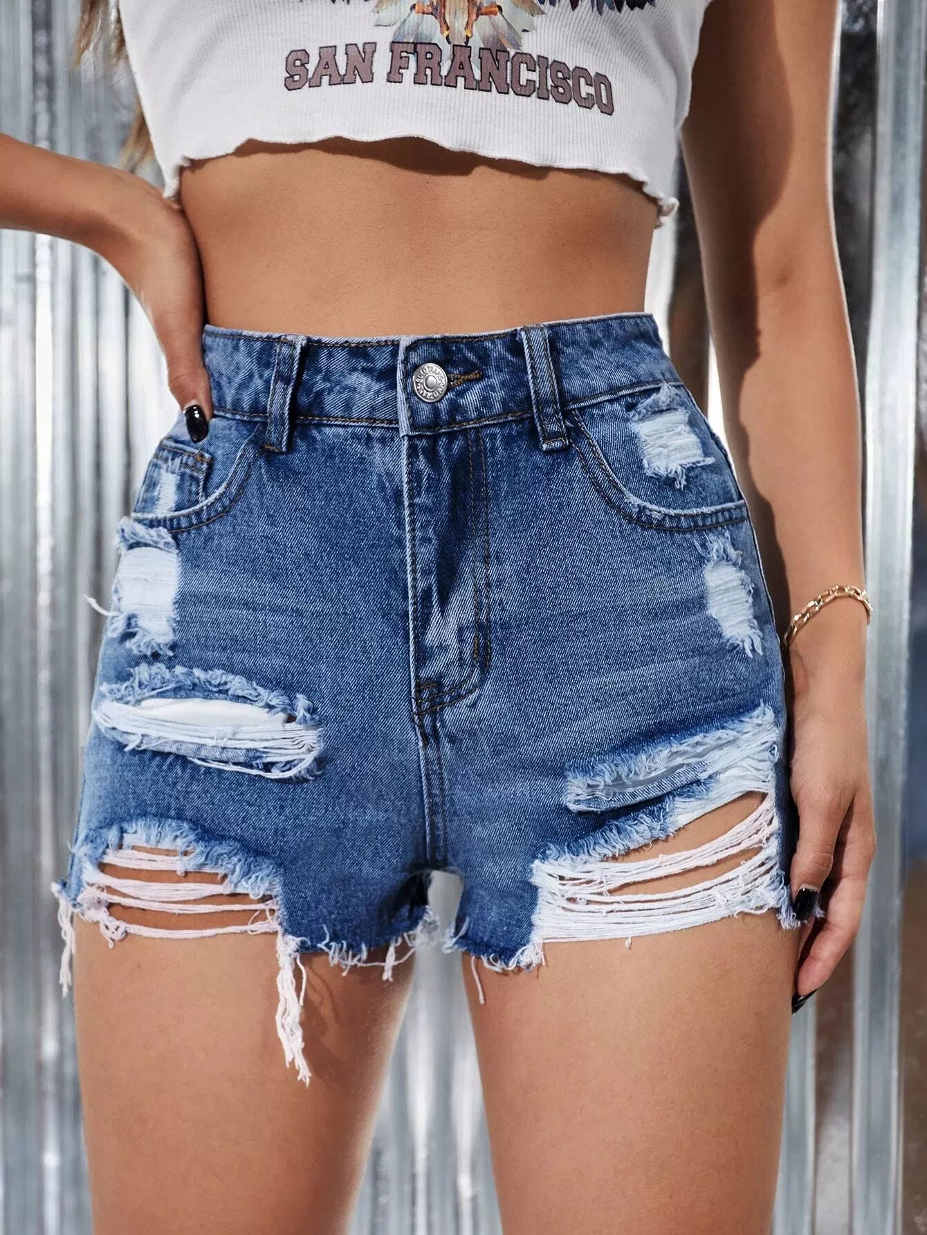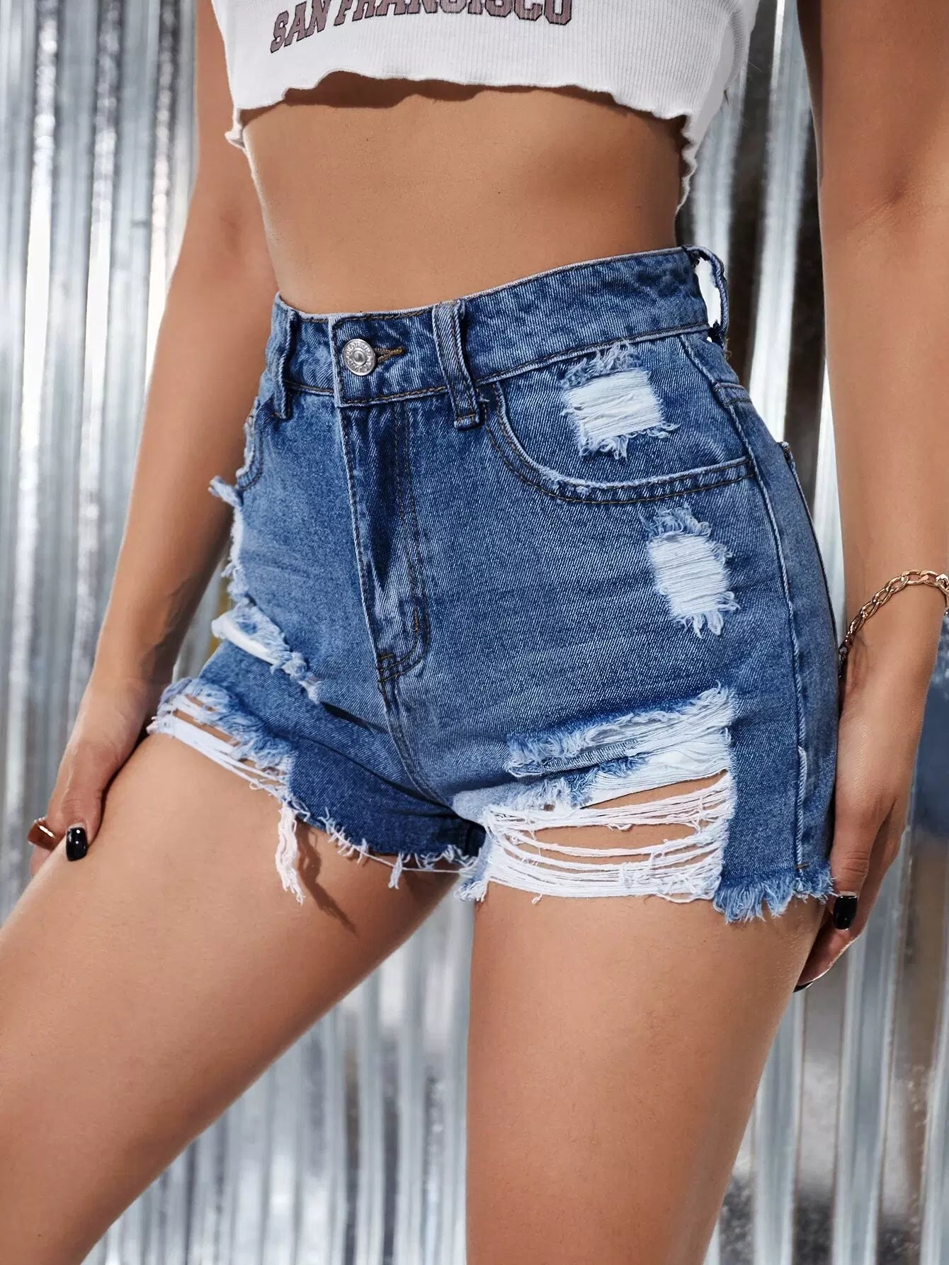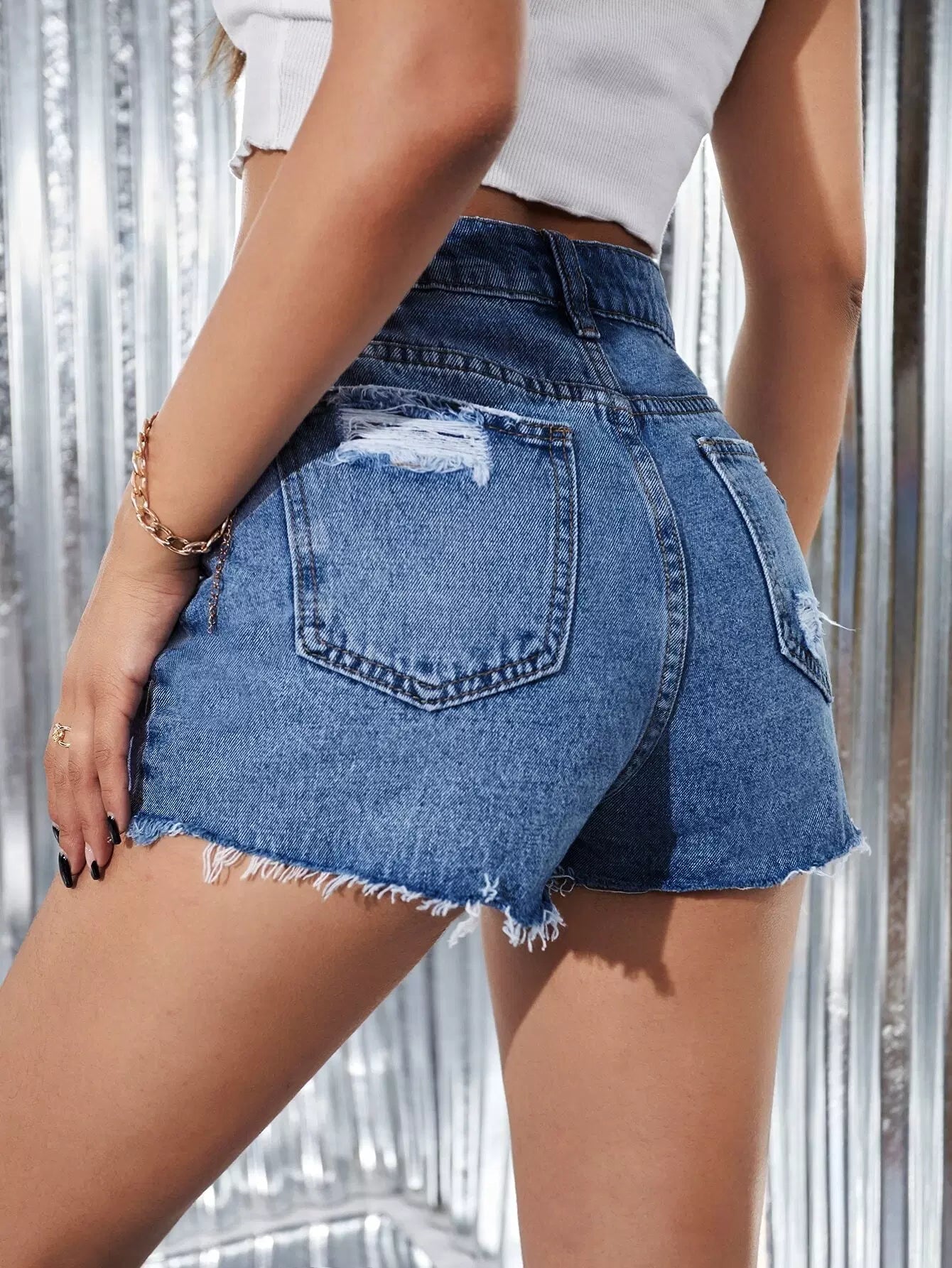 High Waist Ripped Denim Shorts