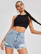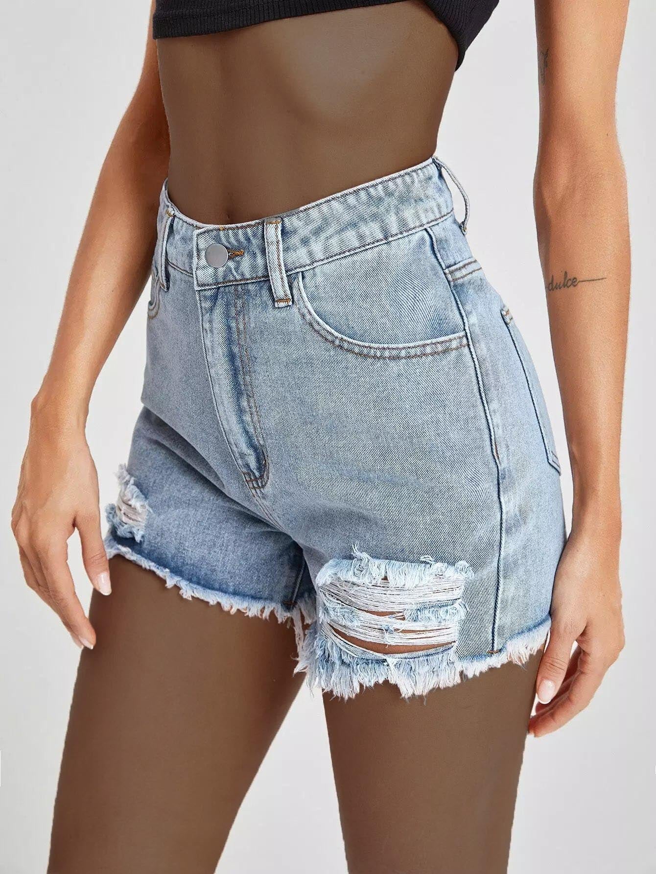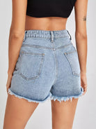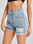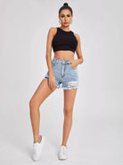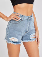 High Waist Ripped Raw Hem Denim Shorts