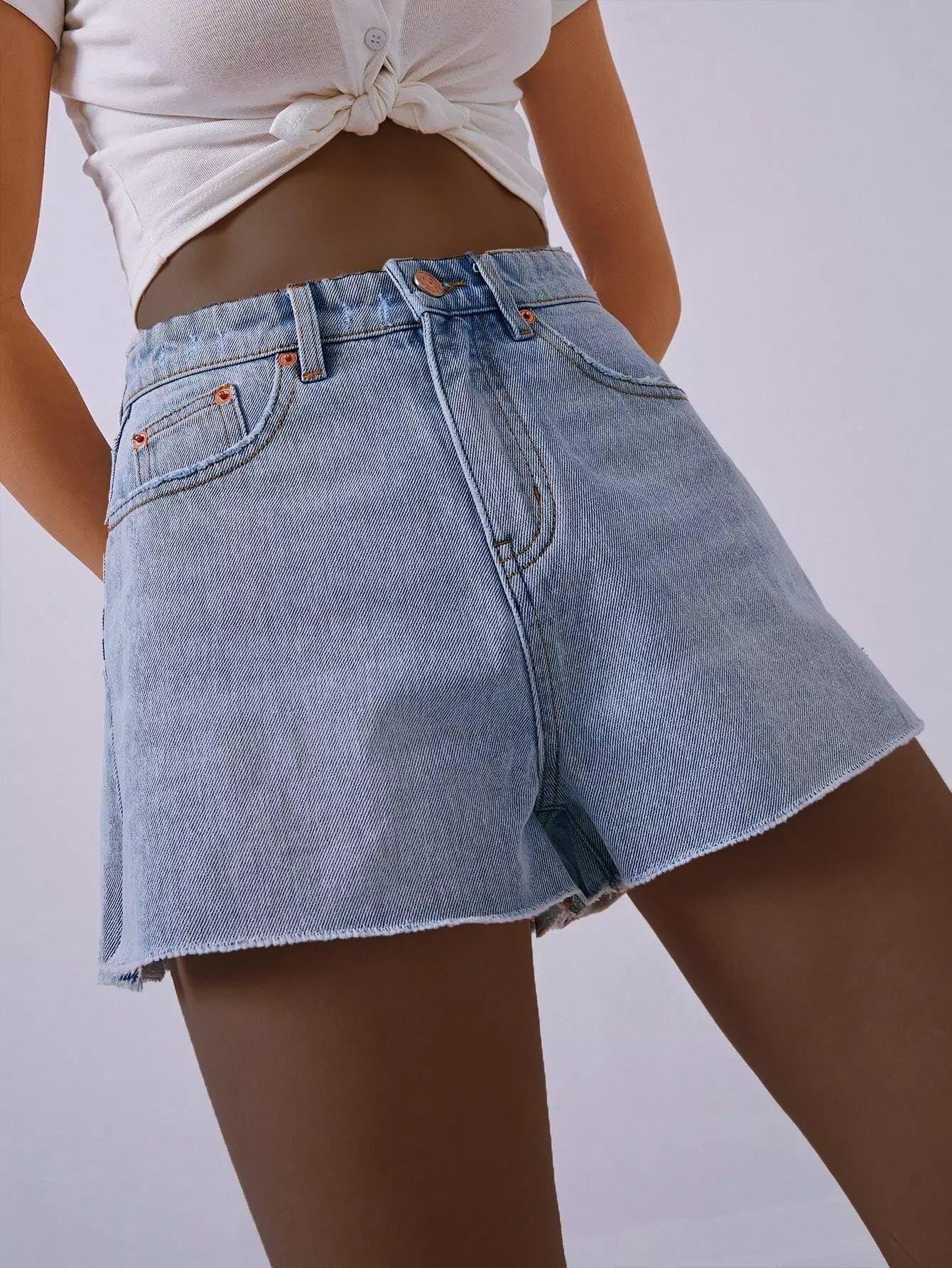 High Waist Split Detail Denim Shorts